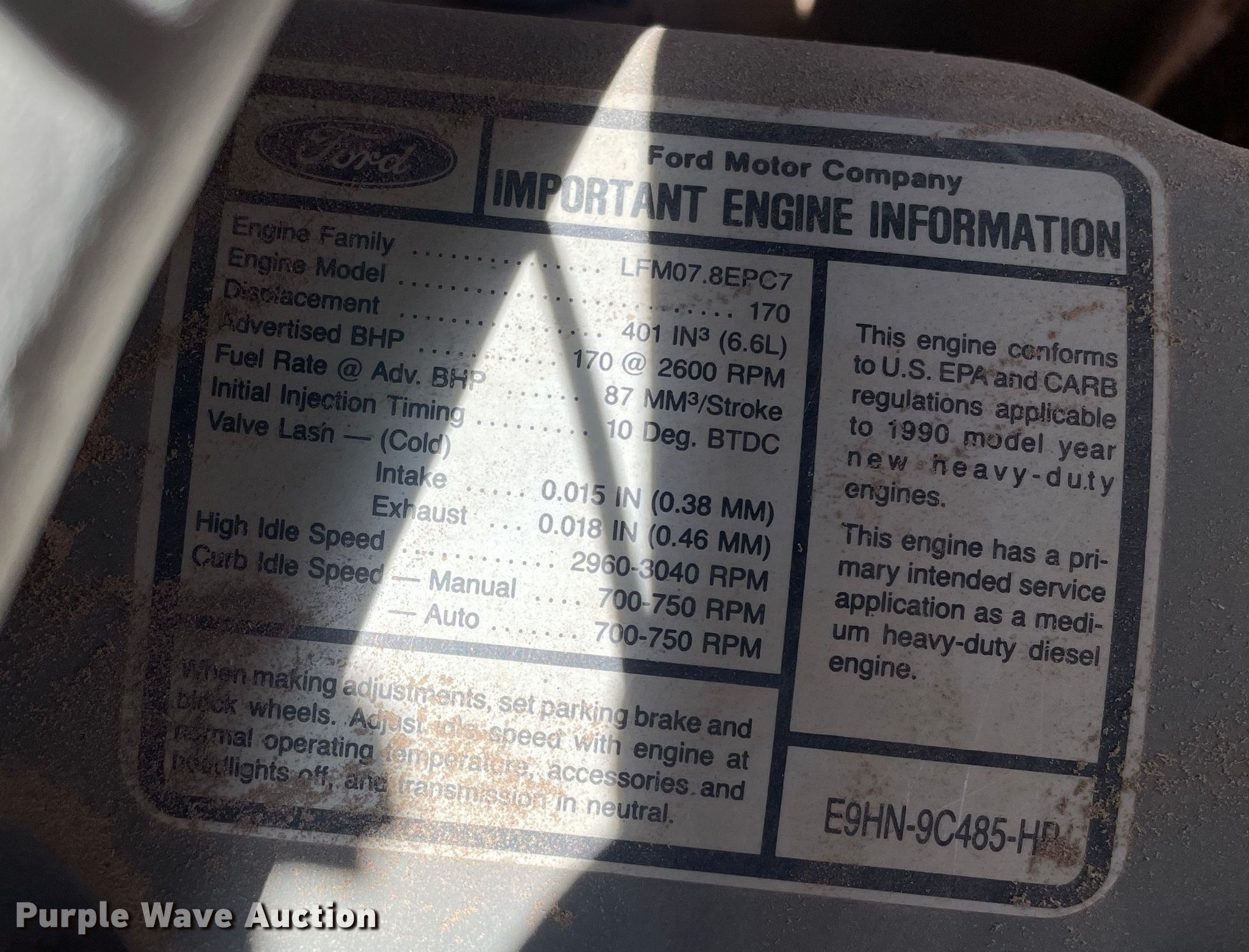 1990 Ford L7000 truck cab and chassis. Miles: 42,783 on odometer, VIN: 1FDNR72P8LVA48847. Engine Ford 170, Displacement: 6.6L, Cylinders: 6, Fuel type: Diesel, HP: 170. Transmission Manual, Speed: 5, plus 2. Chassis Axles: Single, Suspension: Spring, Brakes: Air, PTO, Truck chassis: 135", GVWR: 25,100 lbs FAWR: 9,000 lbs, RAWR: 16,160 lbs. Interior AC, Heat. Features Fuel tank: Single. Tires Size: 275/80R22.5. Notes Unknown operating condition. Texas title. Mileage has not been verified. Exempt will be written in the odometer disclosure on the title. Reinert Hay Company. 4120 County Rd Bb. Hereford, TX 79045