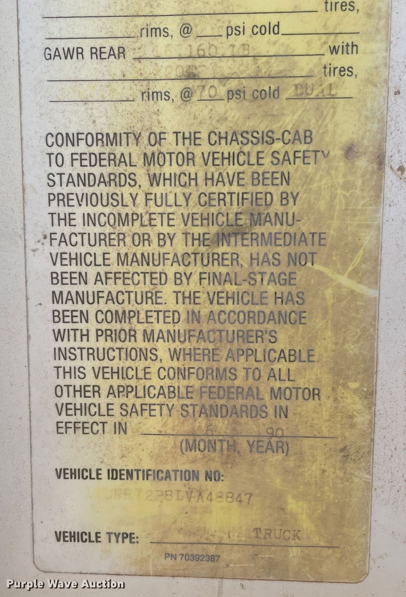 Purple Wave is selling a used Truck Tractor in Texas. This item is a 1990 Ford L7000 truck cab and chassis with the following: Miles: 42,783 on odometer, VIN: 1FDNR72P8LVA48847