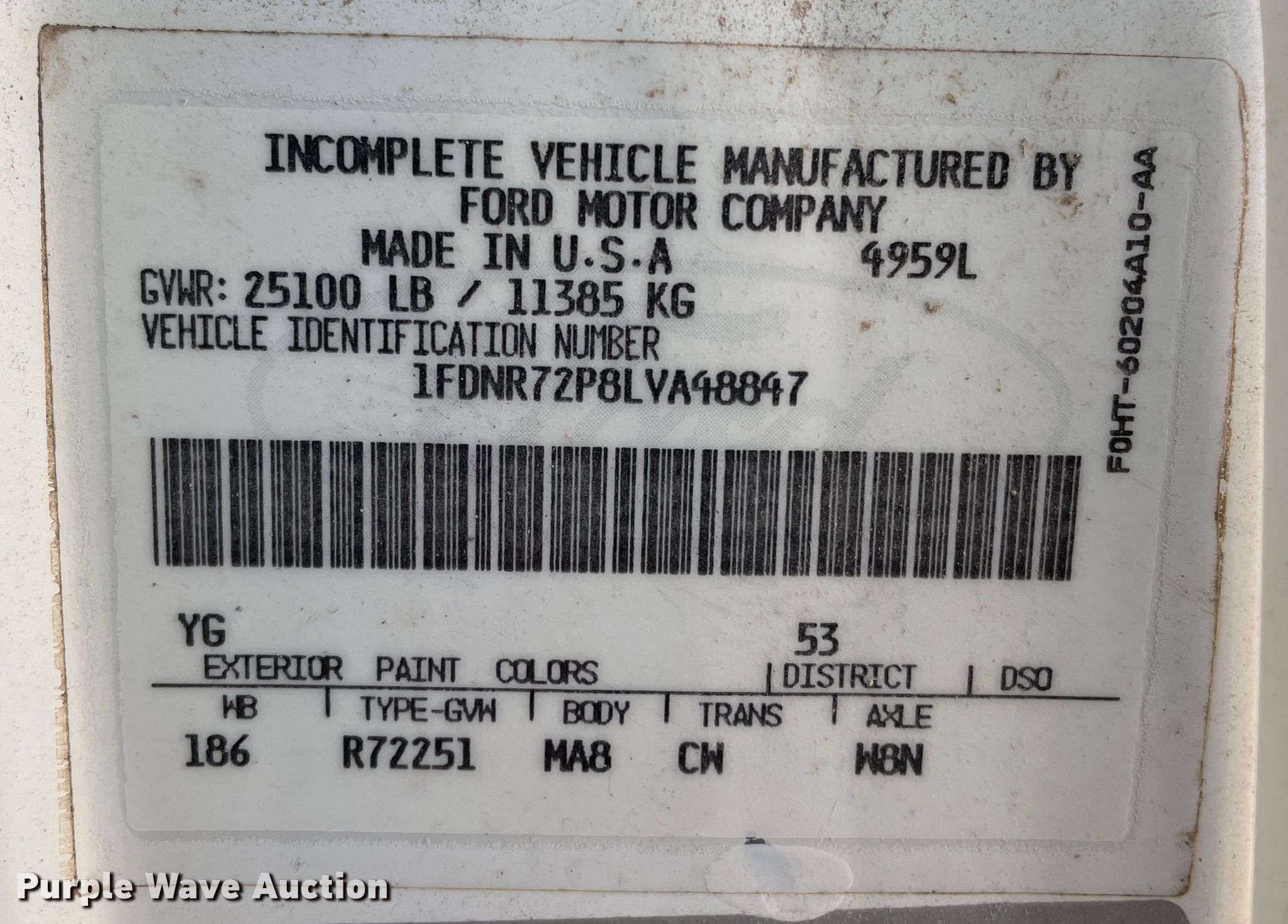 - VIN: 1FDNR72P8LVA48847