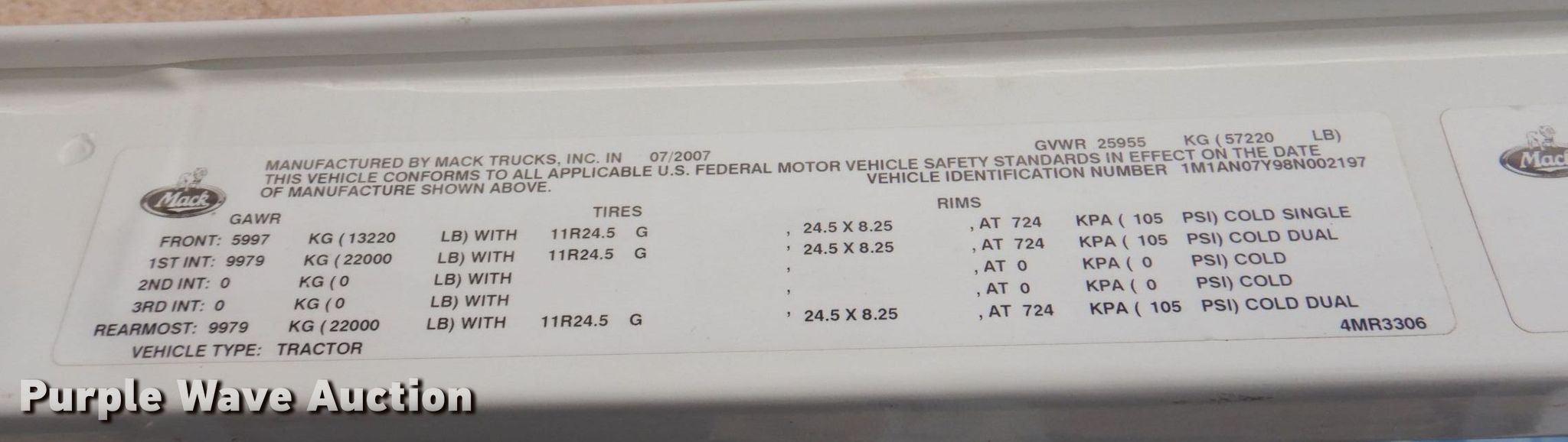 Purple Wave is selling a used Truck Tractor in Texas. This item is a 2008 Mack CHU613 semi truck with the following: Miles: 522,061 on odometer, Hours: 2,355 on meter, Miles or hours may vary, unit still in use, VIN: 1M1AN07Y98N002197