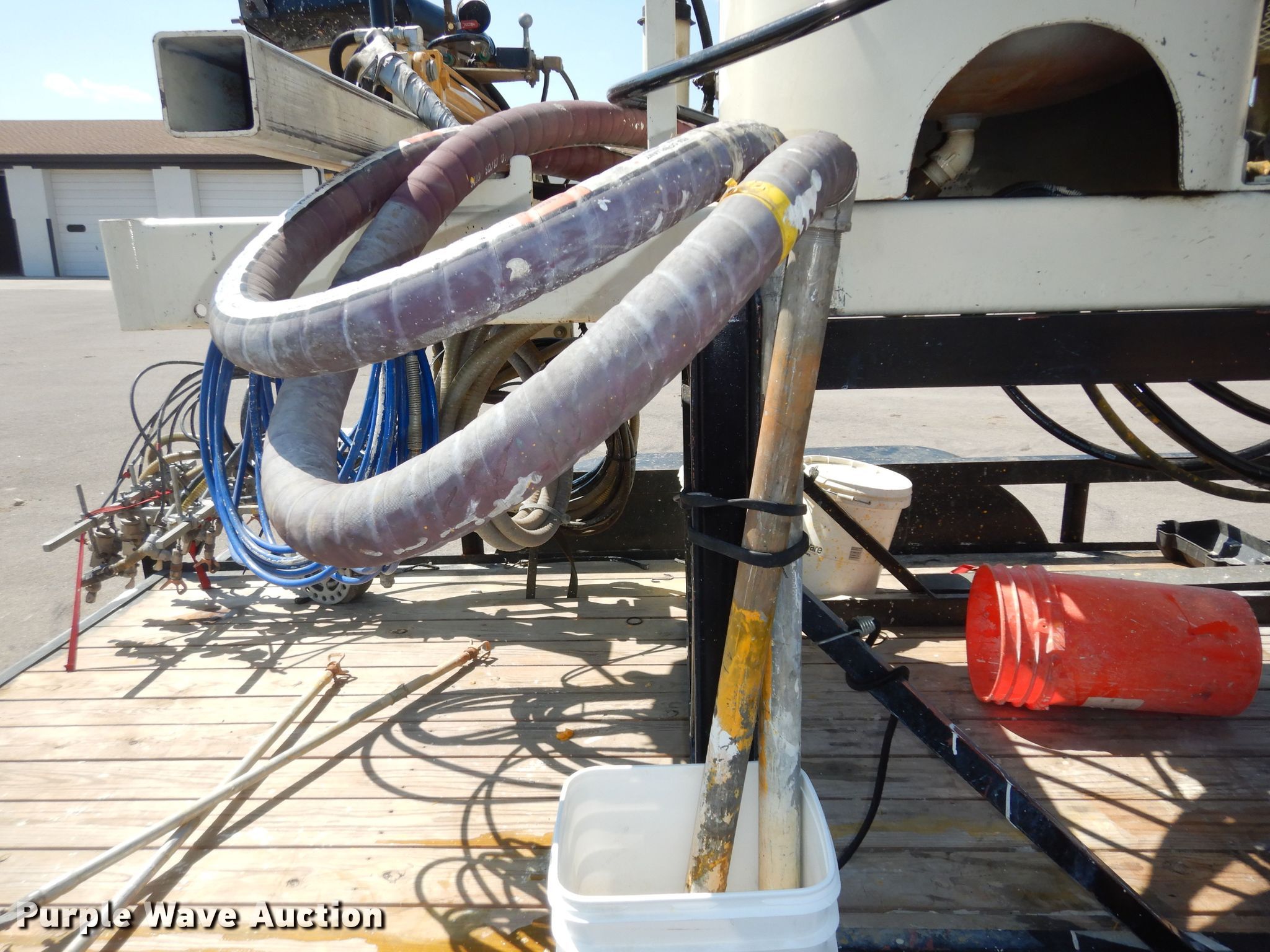 EZ-Liner AL-120 paint striper with Jim's utility trailer. Serial: 1C0S483P6, Unit #: 2390. Features Honda two cylinder gas engine, Hydraulic reservoir, Nozzles: 8, Bucket beads: 2, Wands: 2, Paint, Fluorescent beads. 2012 Jim's utility trailer VIN: 4YHSL1629CK003823, Dimensions: 16.5'L x 7'3"W, Deck type: Wood, Ball hitch size: 2", Suspension: Spring, Axles: Tandem, Tire size: 205/75D15. Kansas title. Kansas Turnpike Authority. 3939 Southwest Topeka Boulevard. Topeka, KS 66609