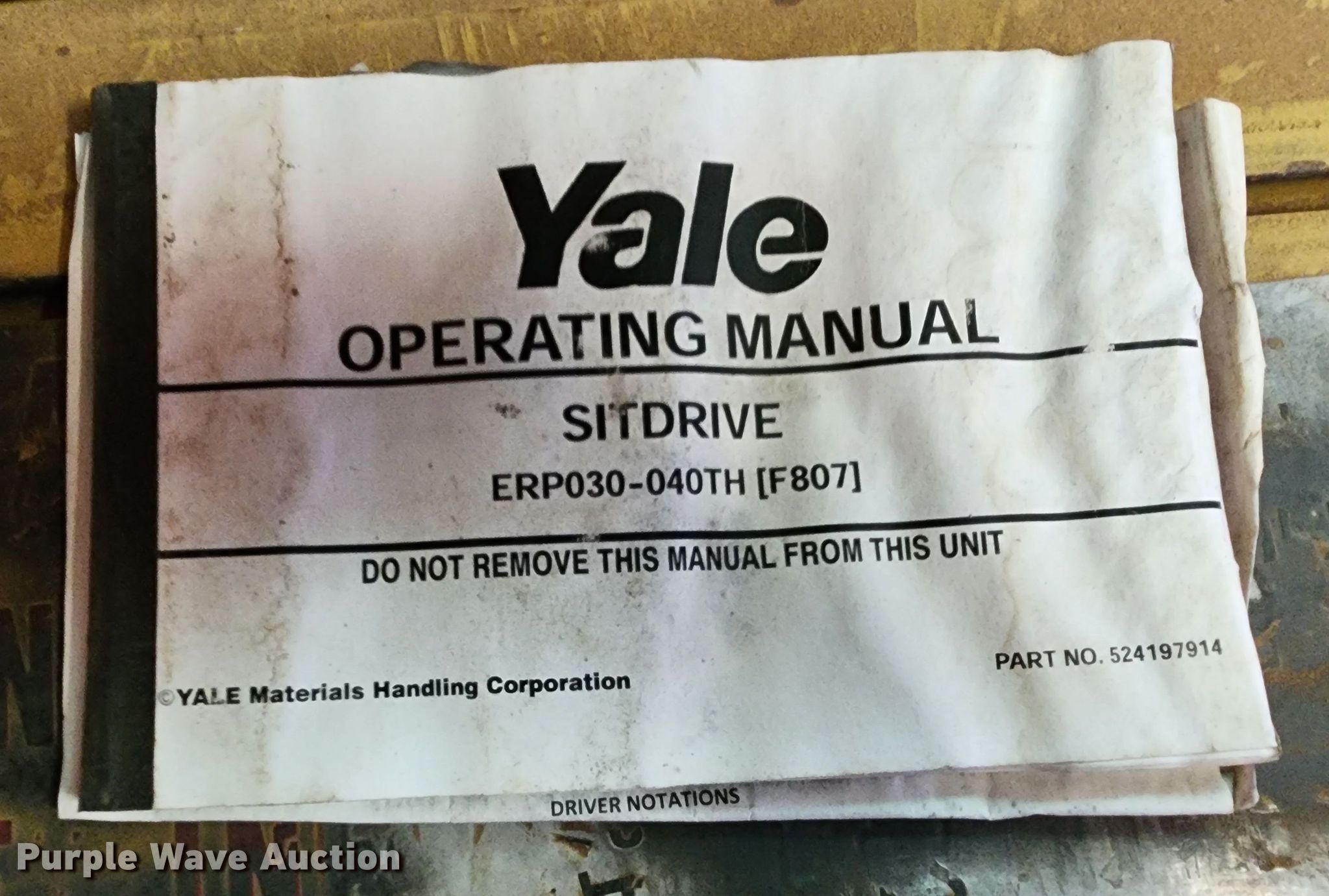 Purple Wave is selling a used Warehouse Forklift in Texas. This item is a 2008 Yale ERP030 forklift with the following: Hours: Unknown, Serial: F807N02539C