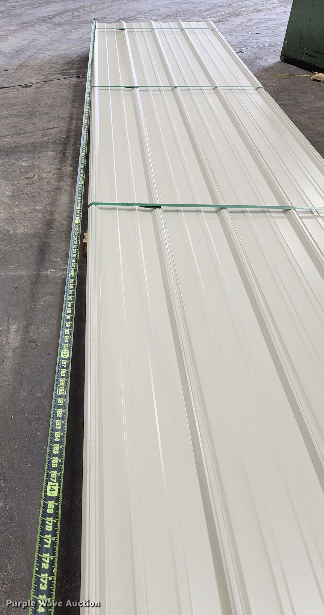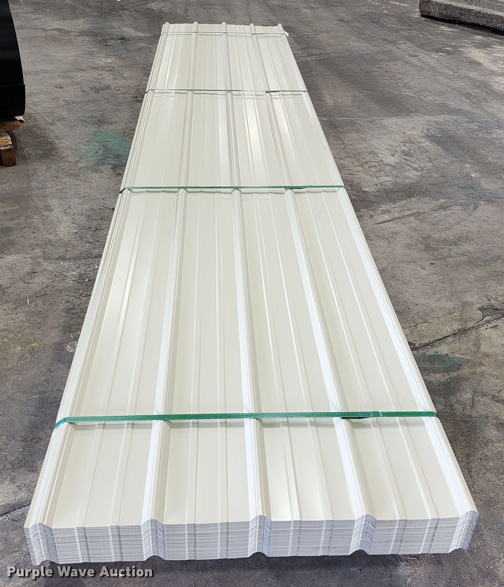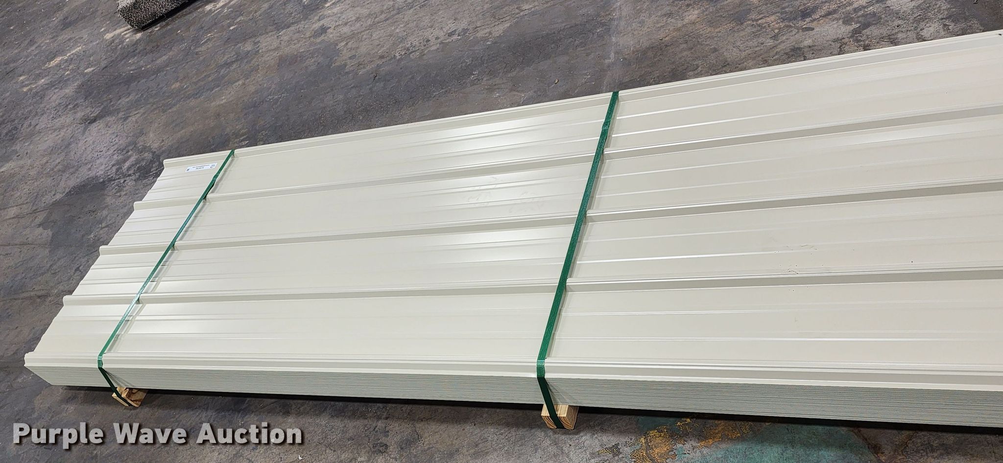 Purple Wave is selling a used Building Materials in Texas. This item is a (170) sheets of 2022 Doerksen Metal Components metal siding/roofing with the following: 16'L x 36"W overlap coverage, AG profile, 29 gauge, Color: Light stone, Possible blemishes