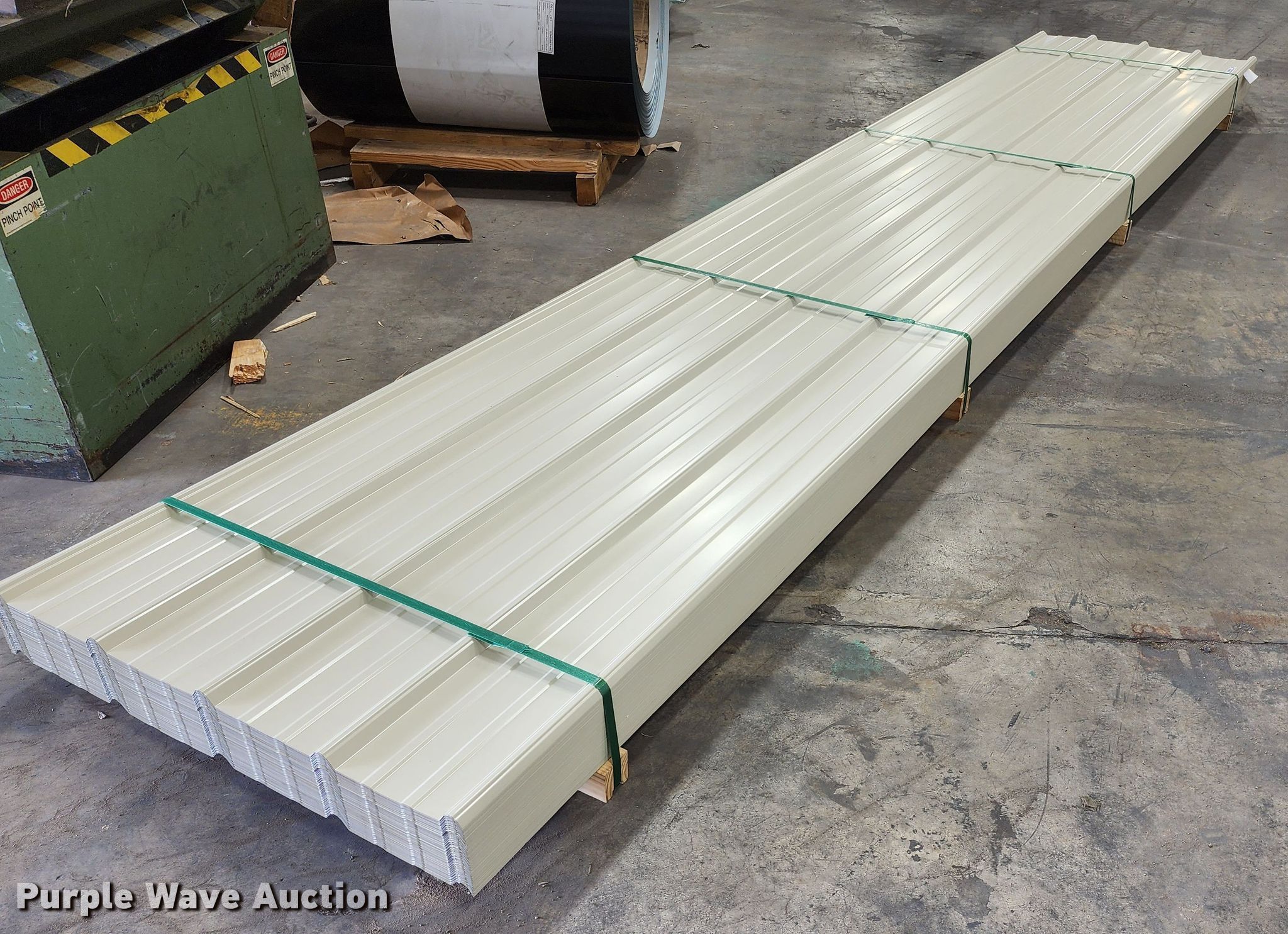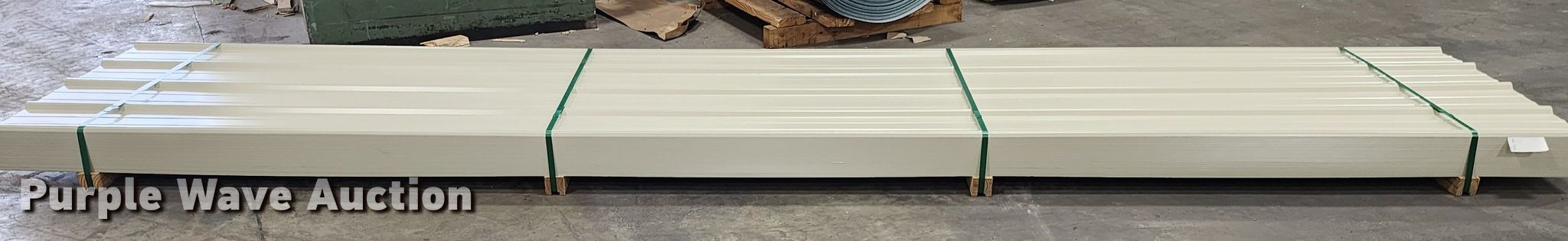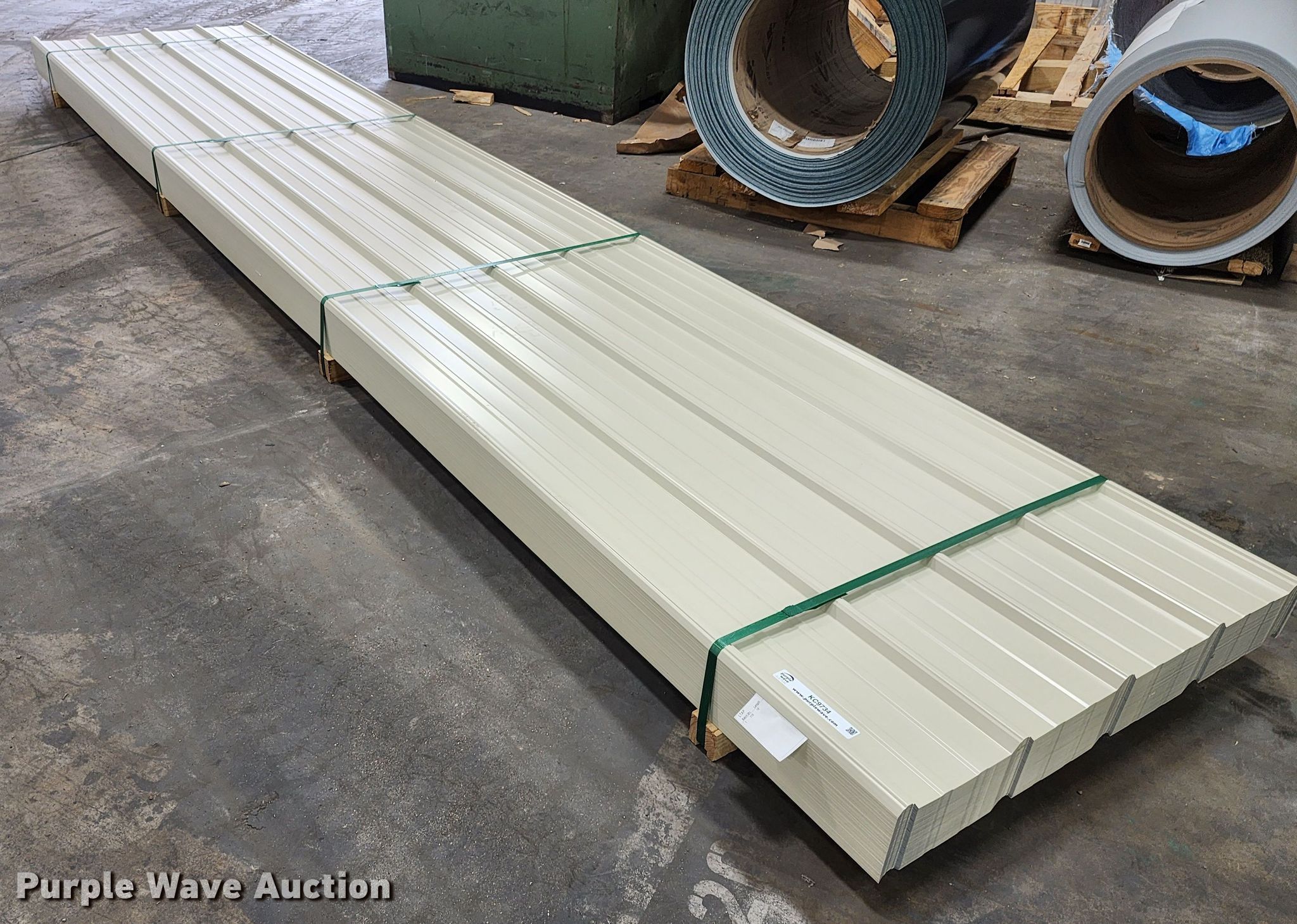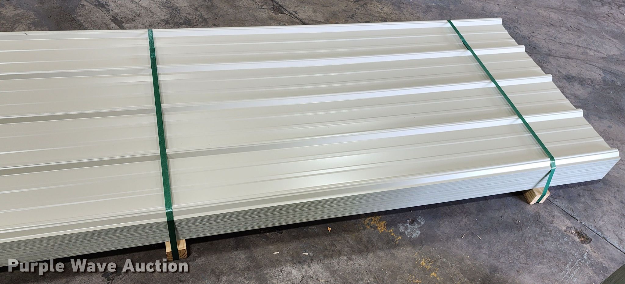 Purple Wave is selling a used Building Materials in Texas. This item is a (170) sheets of 2022 Doerksen Metal Components metal siding/roofing with the following: 16'L x 36"W overlap coverage, AG profile, 29 gauge, Color: Light stone, Possible blemishes