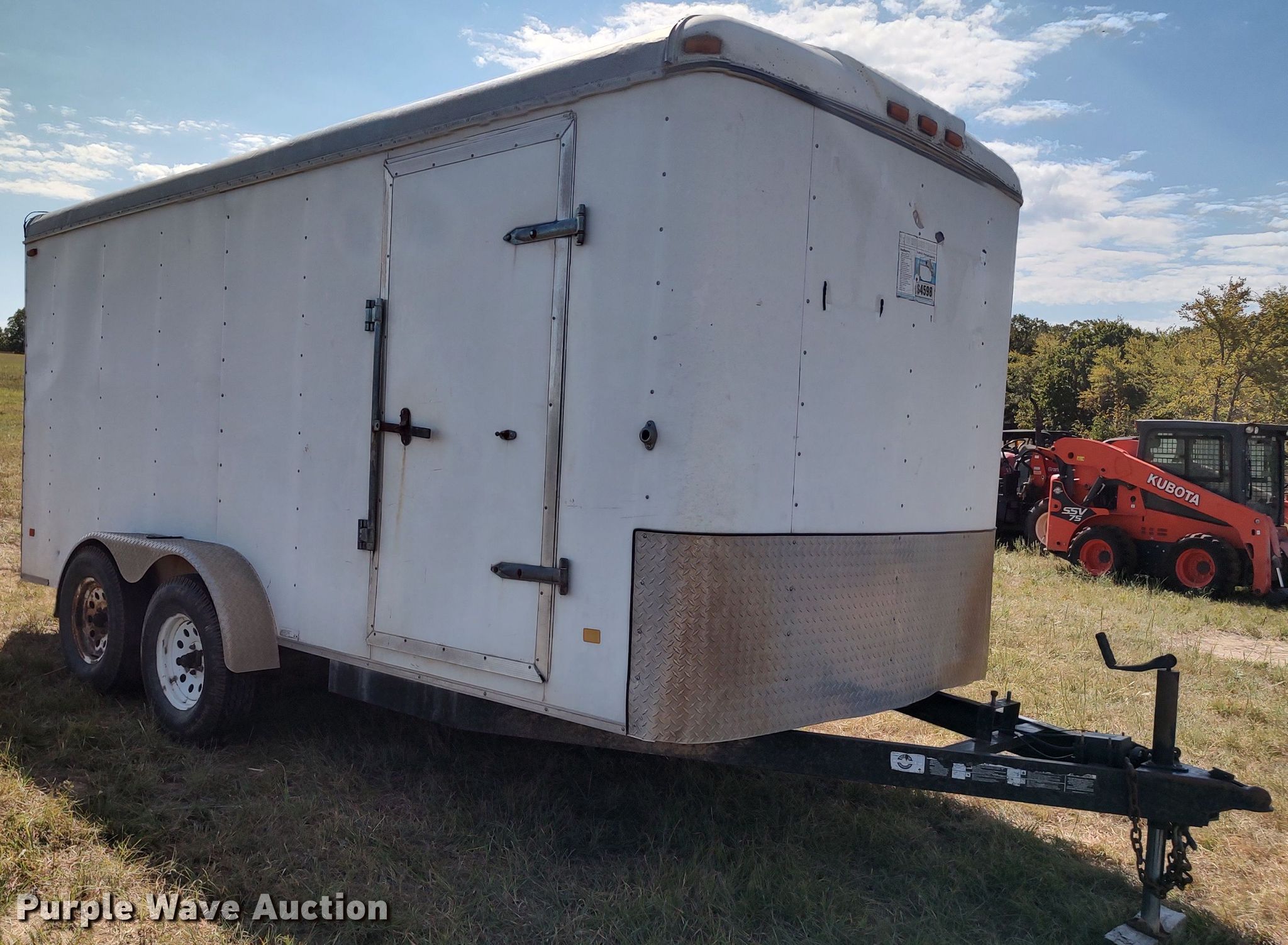 2006 Carry-On enclosed cargo trailer. VIN: 65CBX7732TK003844, Claim # 2-802161. Dimensions Overall: 20' L x 96" W, Body: 16' L x 84" W. Features Deck type: Steel. Chassis Ball hitch: 2", Landing gear: Single, Suspension: Spring, Axles: Tandem. Tires Steel wheels, Size: 205/90D15. Notes Collision damage. Insurance salvage unit. Oklahoma title. Oklahoma Farm Bureau Insurance. Seminole, OK 74868