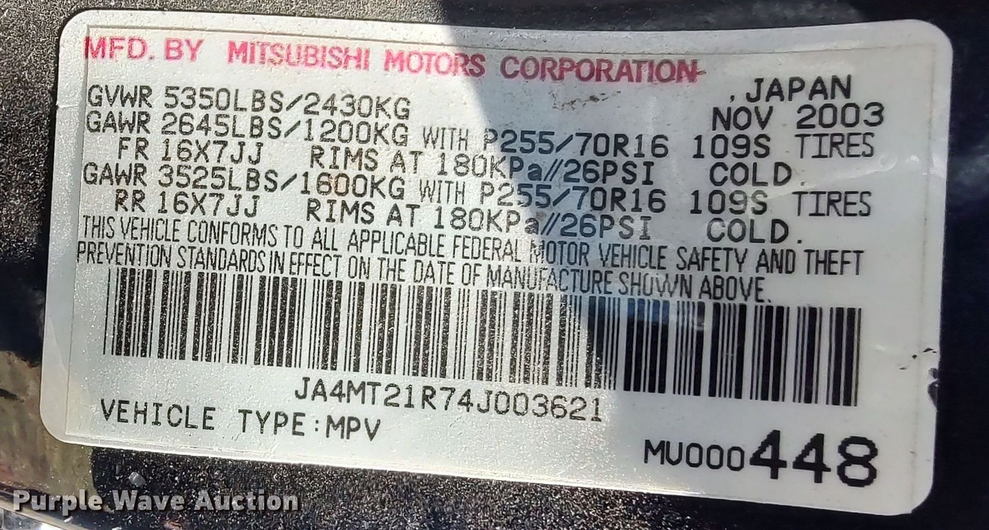 - VIN: JA4MT21R74J003621