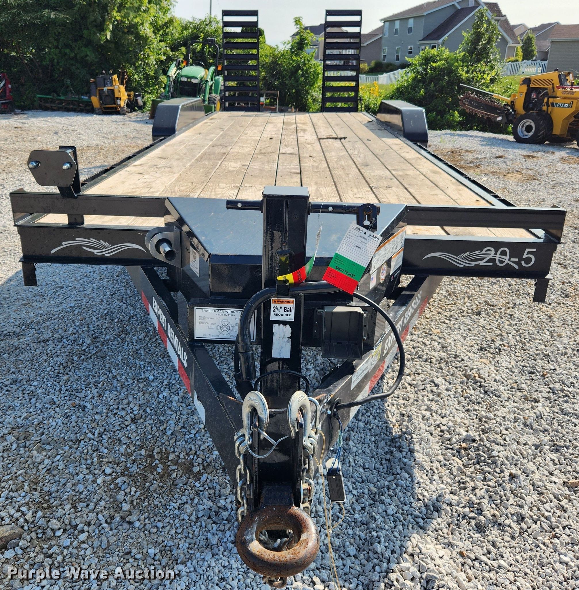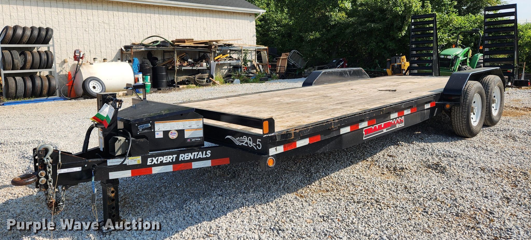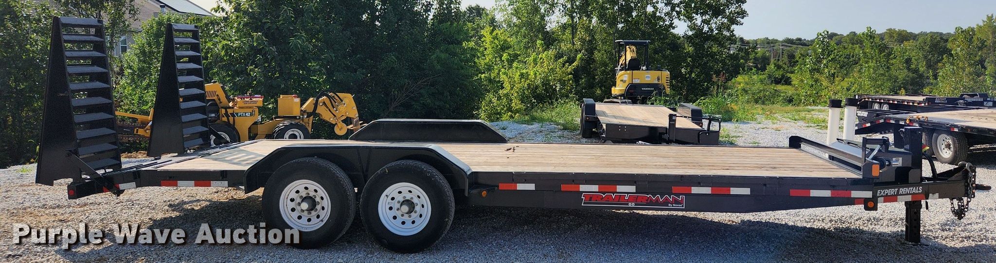 2021 Trailerman utility trailer. VIN: 5JWLB2228ML103229. Dimensions Overall: 26' L x 101" W, Deck: 20' L x 83" W, Tail length: 2', Ramps: Manual Length: 5'. Features Deck type: Wood. Chassis Hitch: Pintle, Landing gear: Single, Suspension: Spring, Brakes: Electric, Axles: Tandem, GVWR: 14,000 lbs, GAWR: 7,000 lbs. Tires Steel wheels, Size: 235/80R16. Notes Tongue bent. Missouri title. Expert Rentals. 8126 Veterans Memorial Pkwy. Saint Peters, MO 63376