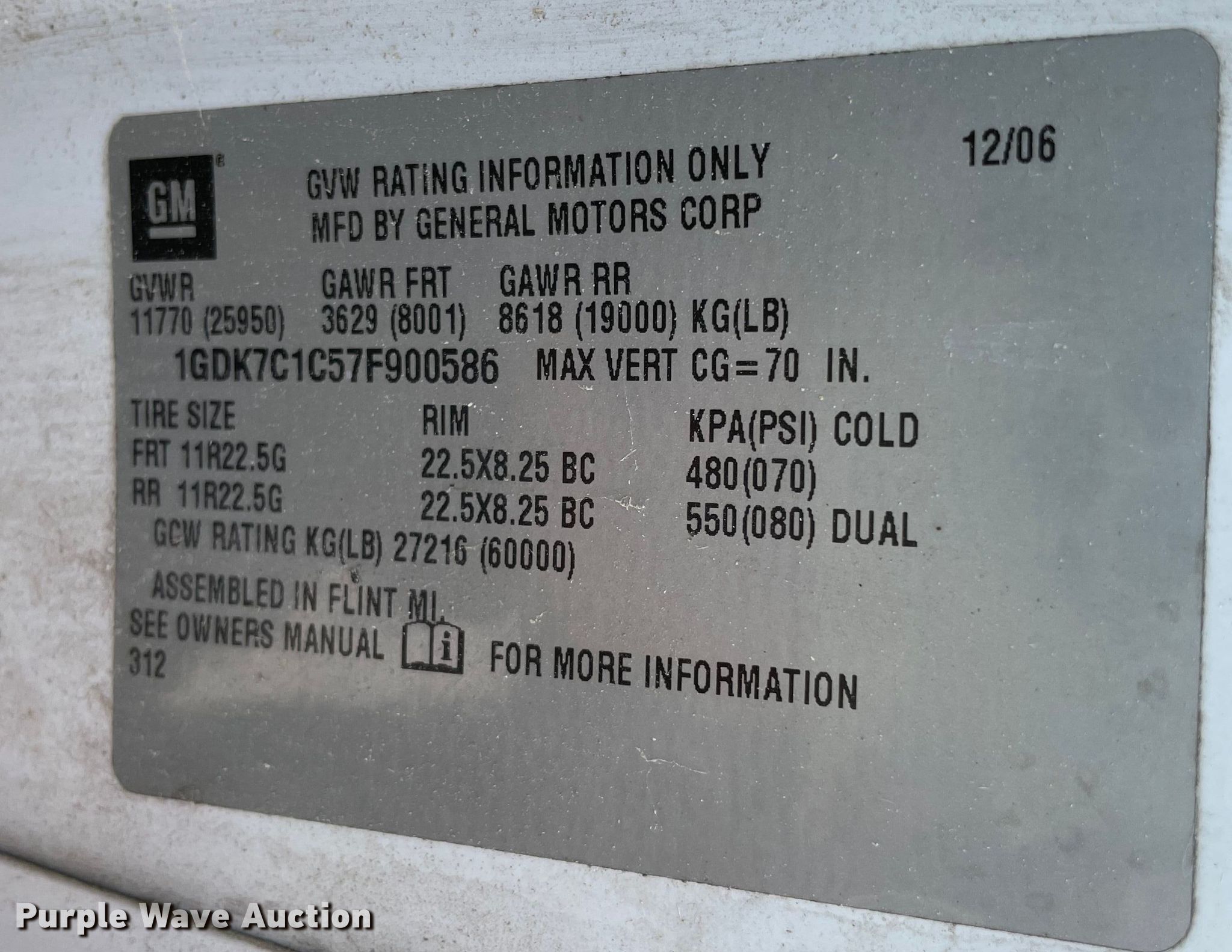 Purple Wave is selling a used Box Truck in Oklahoma. This item is a 2007 GMC C7500 box truck with the following: Miles: 218,468 on odometer, VIN: 1GDK7C1C57F900586