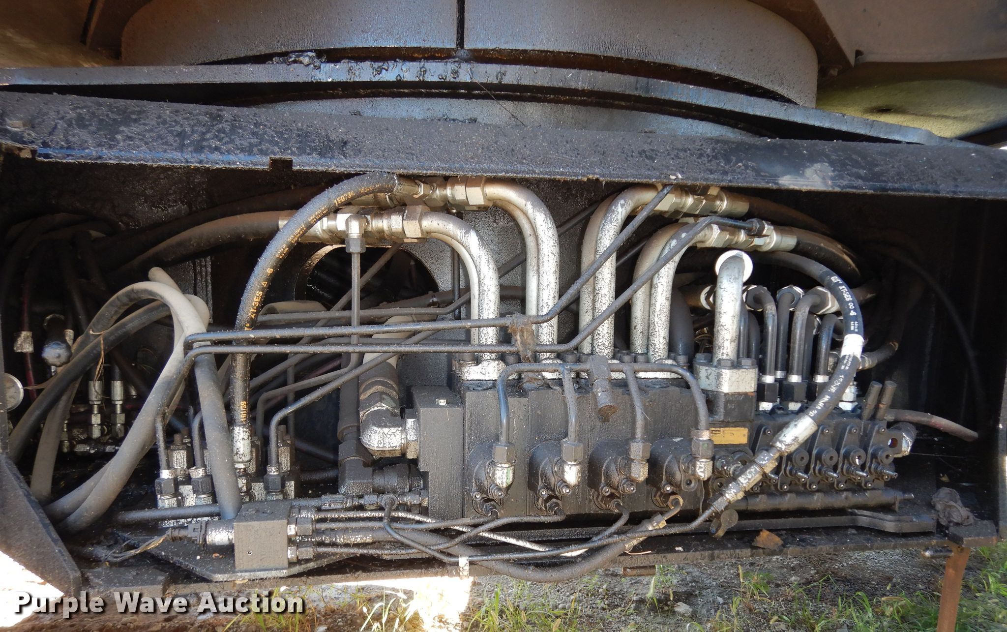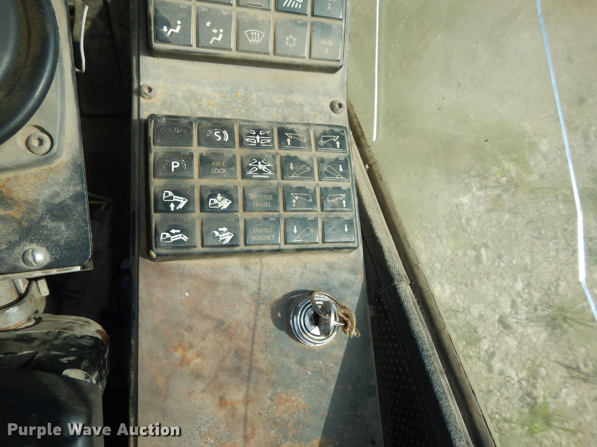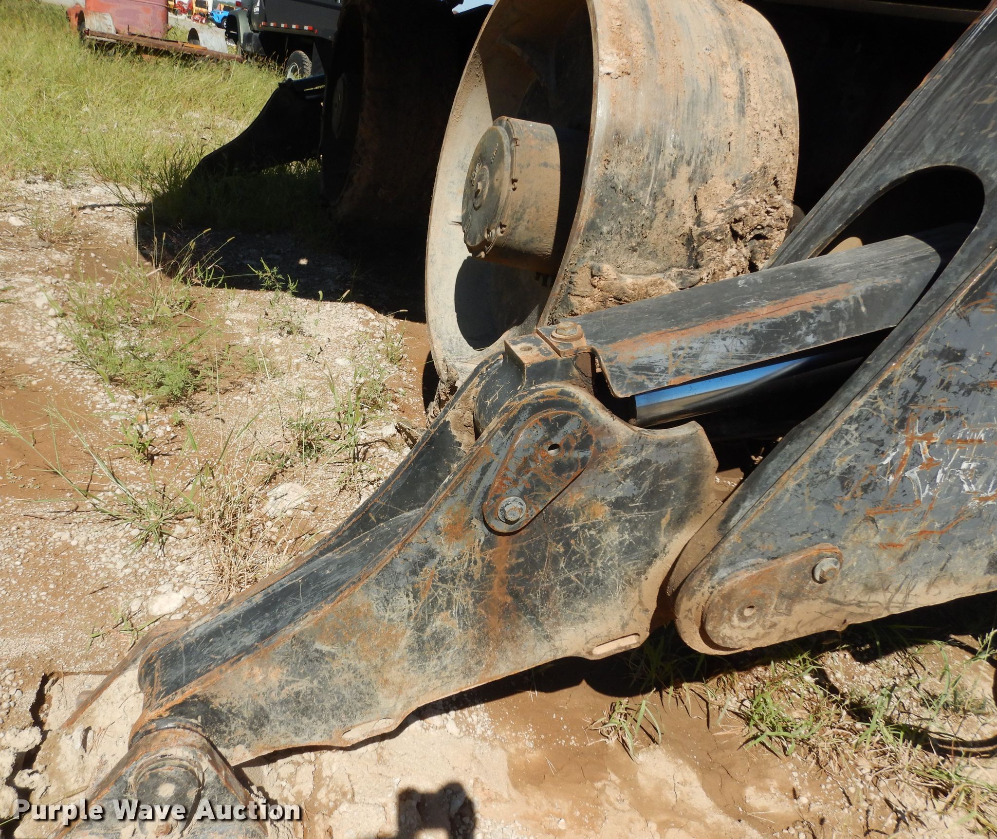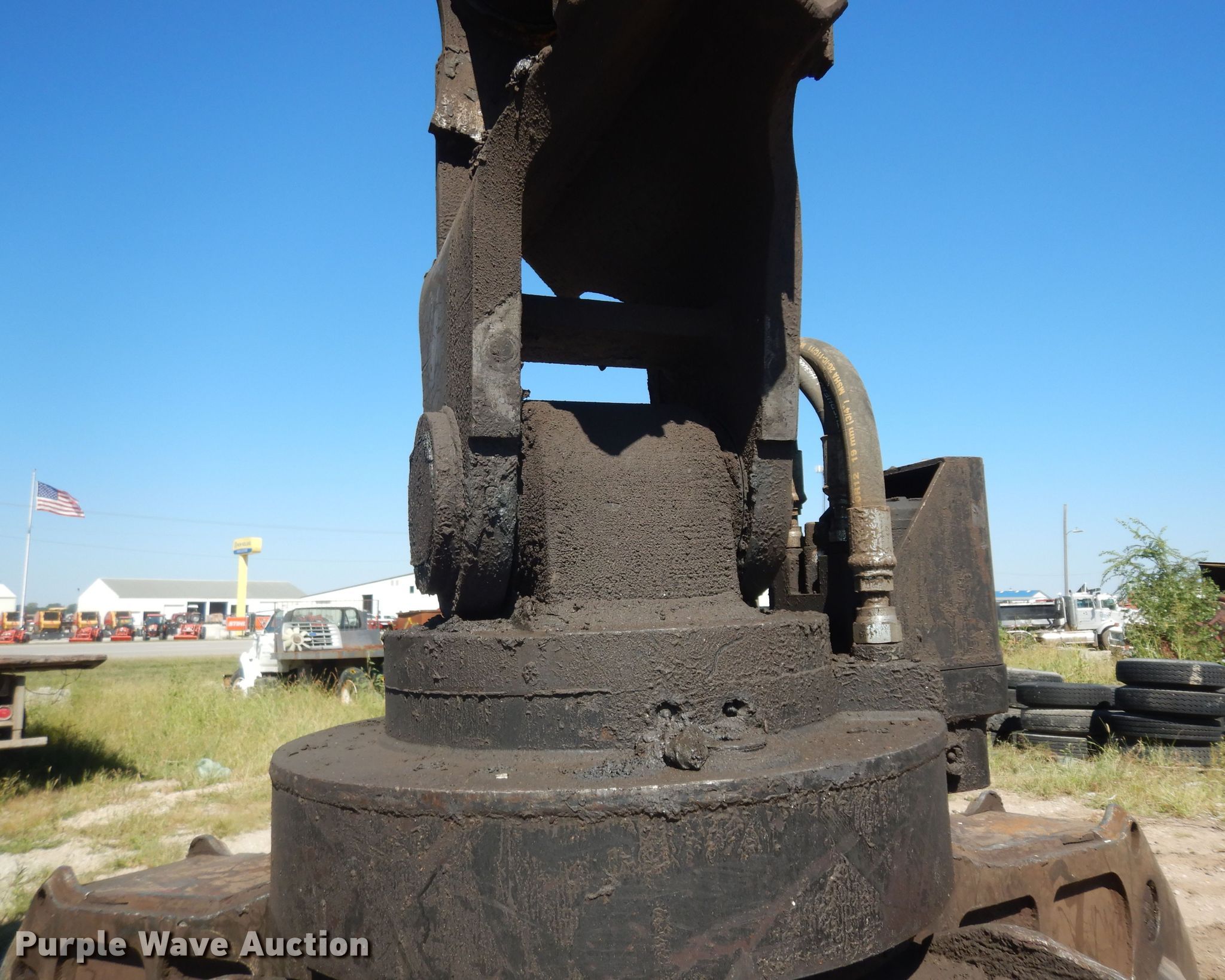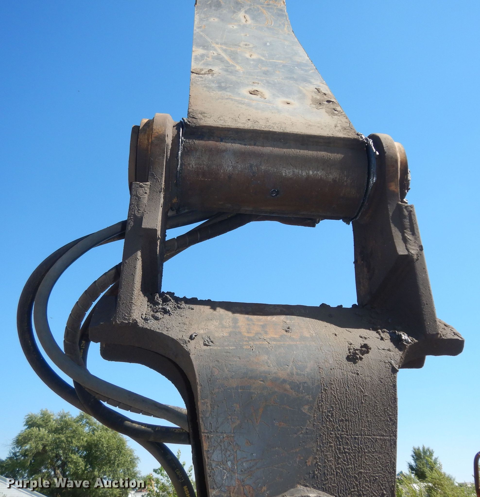 2013 Exodus MX447HDR long reach wheeled excavator. Hours: 11,287 on meter, Serial: 44713105. Engine Caterpillar C9, Cylinders: 6, Fuel type: Diesel. Transmission Hydrostatic. Operators station Enclosed cab, AC, Heat. Features Counter weights, Removable, Boom Standard, Stick Stick length: 26'3", Long reach Max reach: 64', Grapple Caterpillar, Stabilizers. Tires Size: 40.5x59, Brand: Exodus, Solid. Notes Glass cracked, Non-operational AC. Wamego Recycling. 18070 Hwy 24. Wamego, KS 66547
