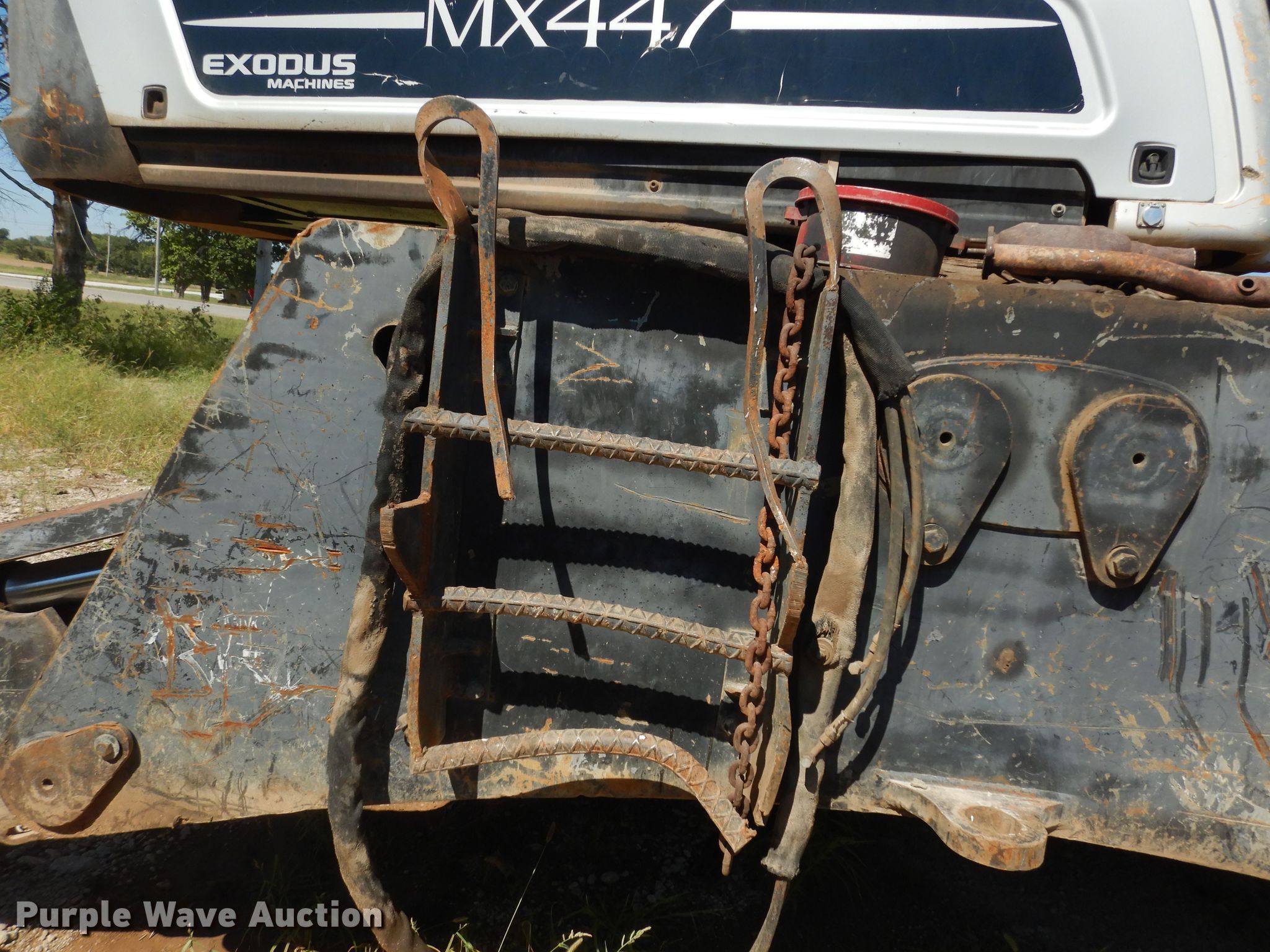 Purple Wave is selling a used Wheeled Excavator in Kansas. This item is a 2013 Exodus MX447HDR long reach wheeled excavator with the following: Hours: 11,287 on meter, Serial: 44713105