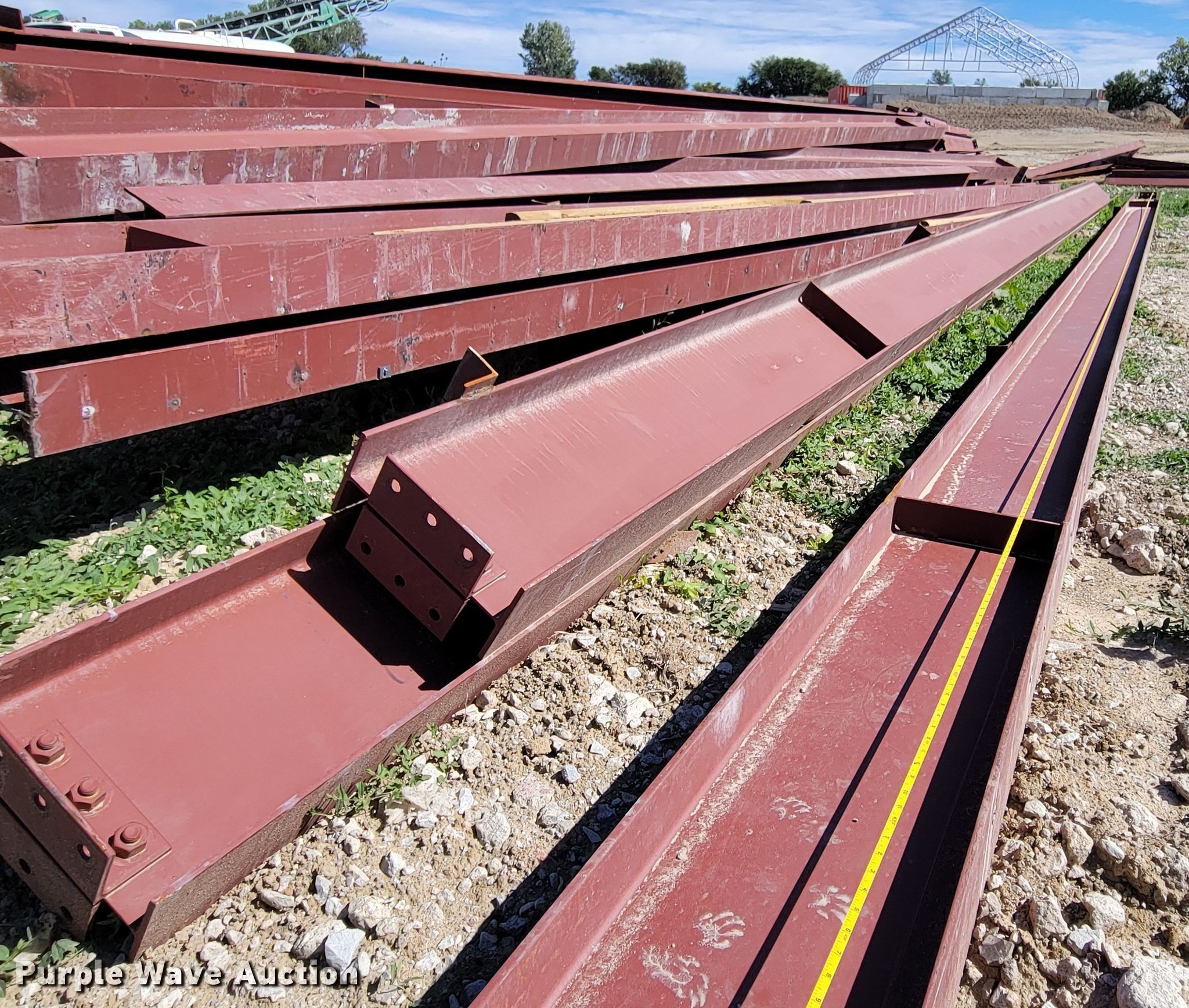 Purple Wave is selling a used Building Materials in Nebraska. This item is a I-beams with the following: Approx. 43, 22 ' L x 14" H, Approx. 32, 29' L to 46' L x 14" H and more