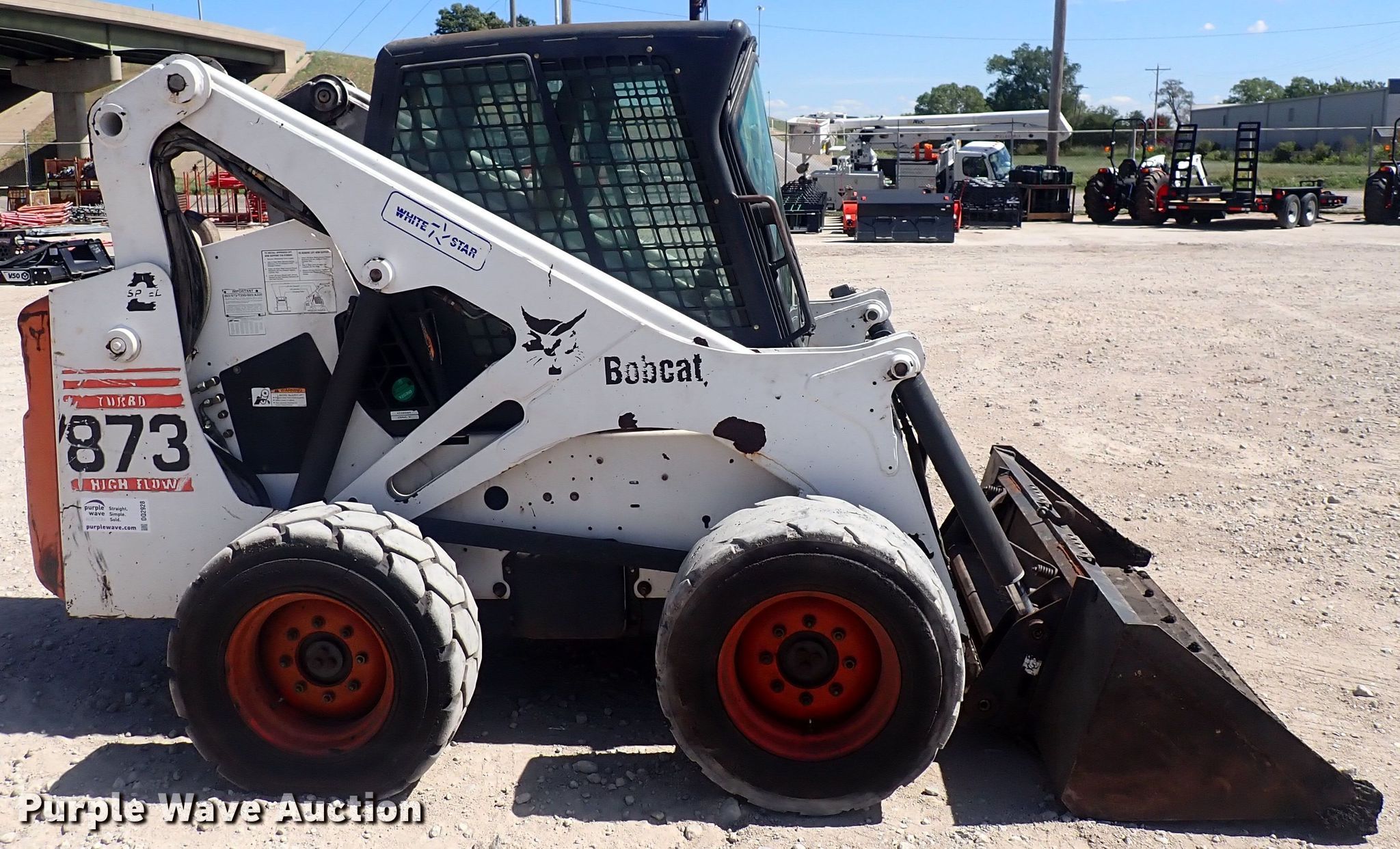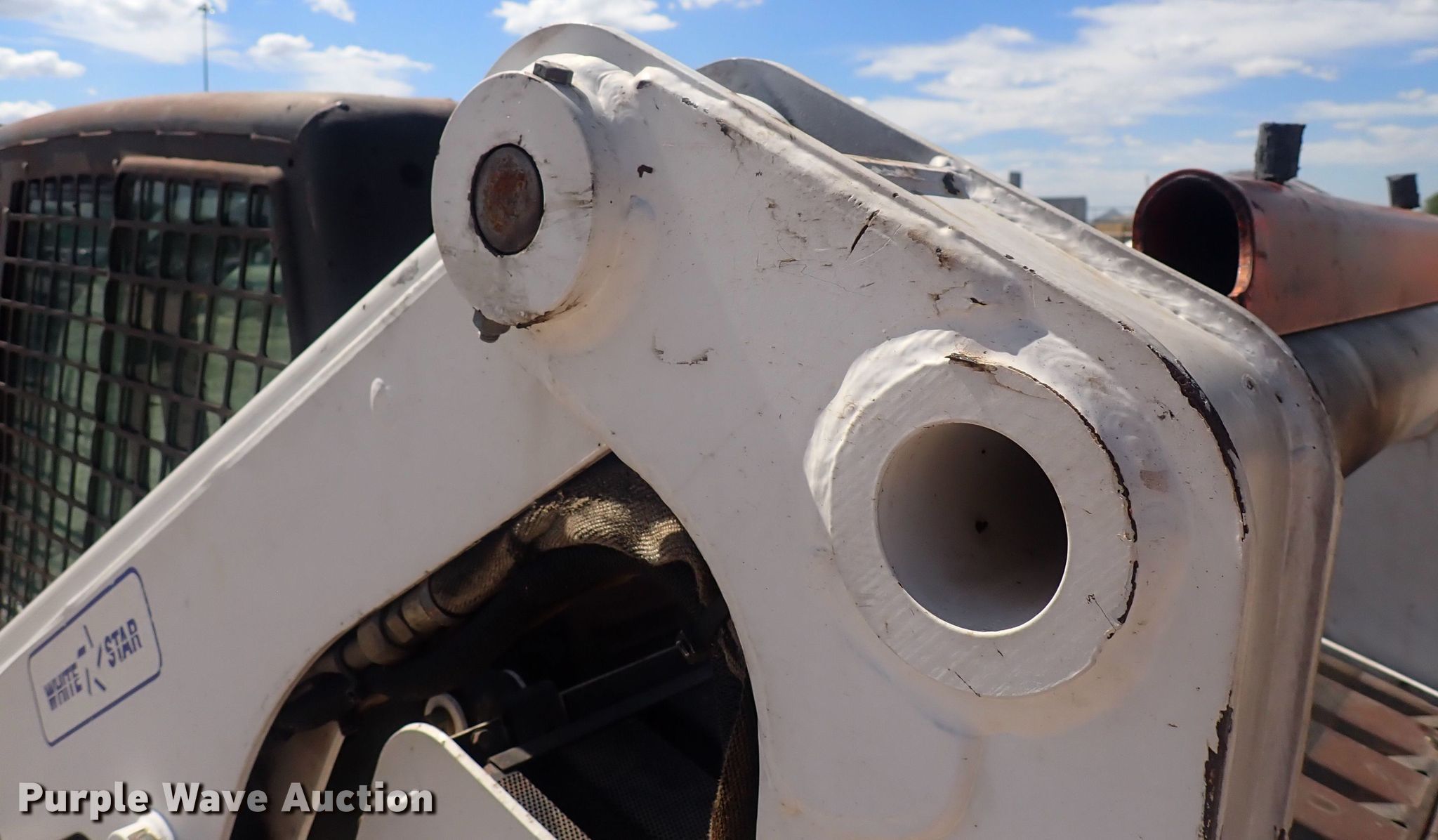 2001 Bobcat 873 skid steer loader. Hours: 5,694 on meter, Serial: 514149335. Engine Cylinders: 4, Fuel type: Diesel. Transmission Hydrostatic, Two speed travel. Operators station Enclosed cab, Heat, Bucket control: Hand. Features Auxiliary hydraulics, Auxiliary electrical outlet, Quick coupler: Manual, Bucket Width: 72", Cutting edge: Bolt-on. Tires Size: 12-16.5. White Star Machinery. 3223 North Hydraulic Avenue. Wichita, KS 67219