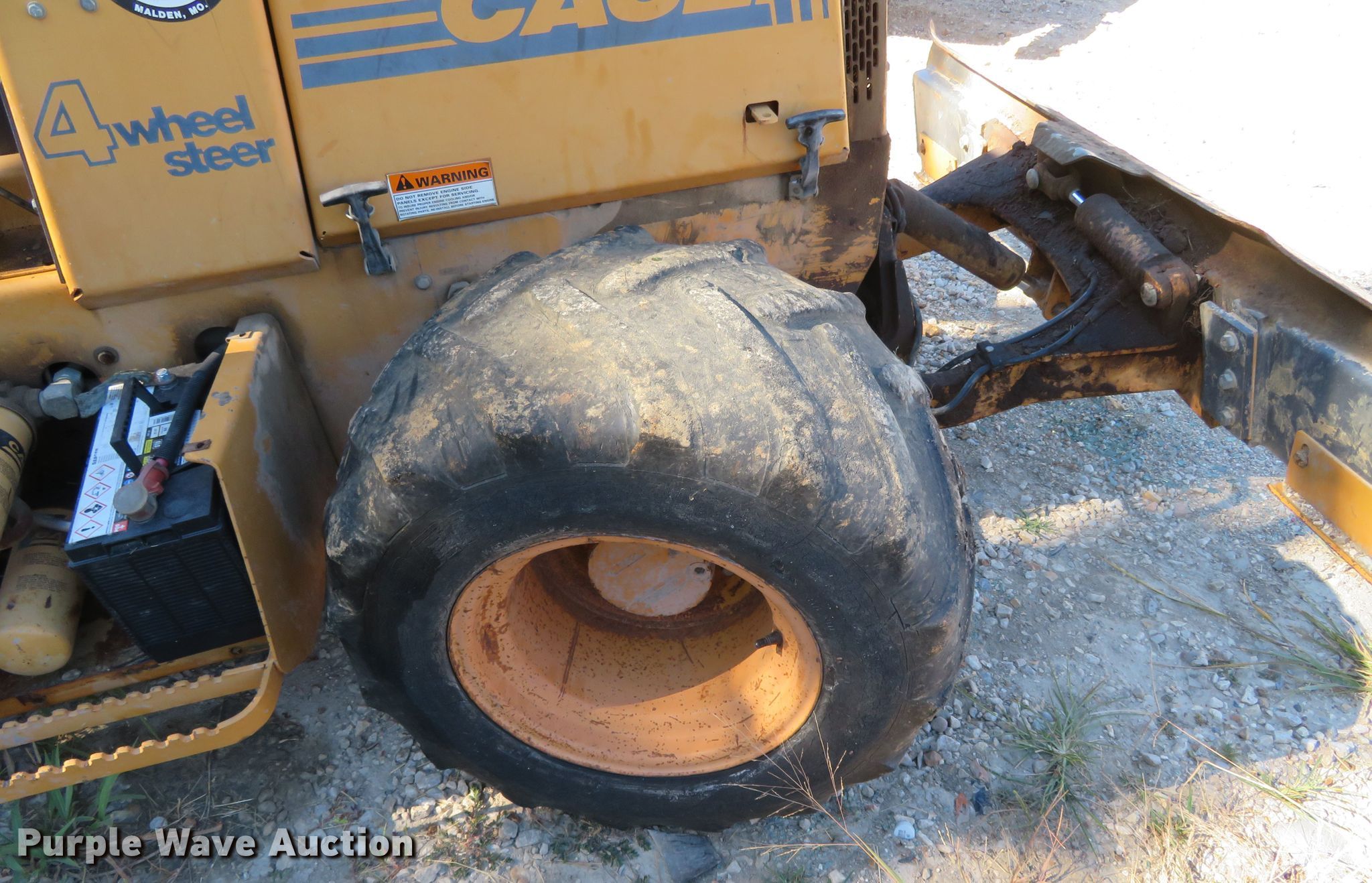 1998 Case 560 trencher. Hours: 331 on meter, Serial: JAF0225833. Engine Kubota V2203-DI, Cylinders: 4, Fuel type: Diesel. Transmission Hydrostatic, Two speed travel, Four wheel steer. Features Trencher Model: H939307, Serial: JAF0177686, Estimated dig depth: 60", Cutting width: 4", Teeth: Dirt, Backfill blade Width: 72". Tires Size: 31x15.5-15. Notes Flat tire. Land Escapes Nursery & Landscaping. 998 North High Street. Jackson, MO 63755