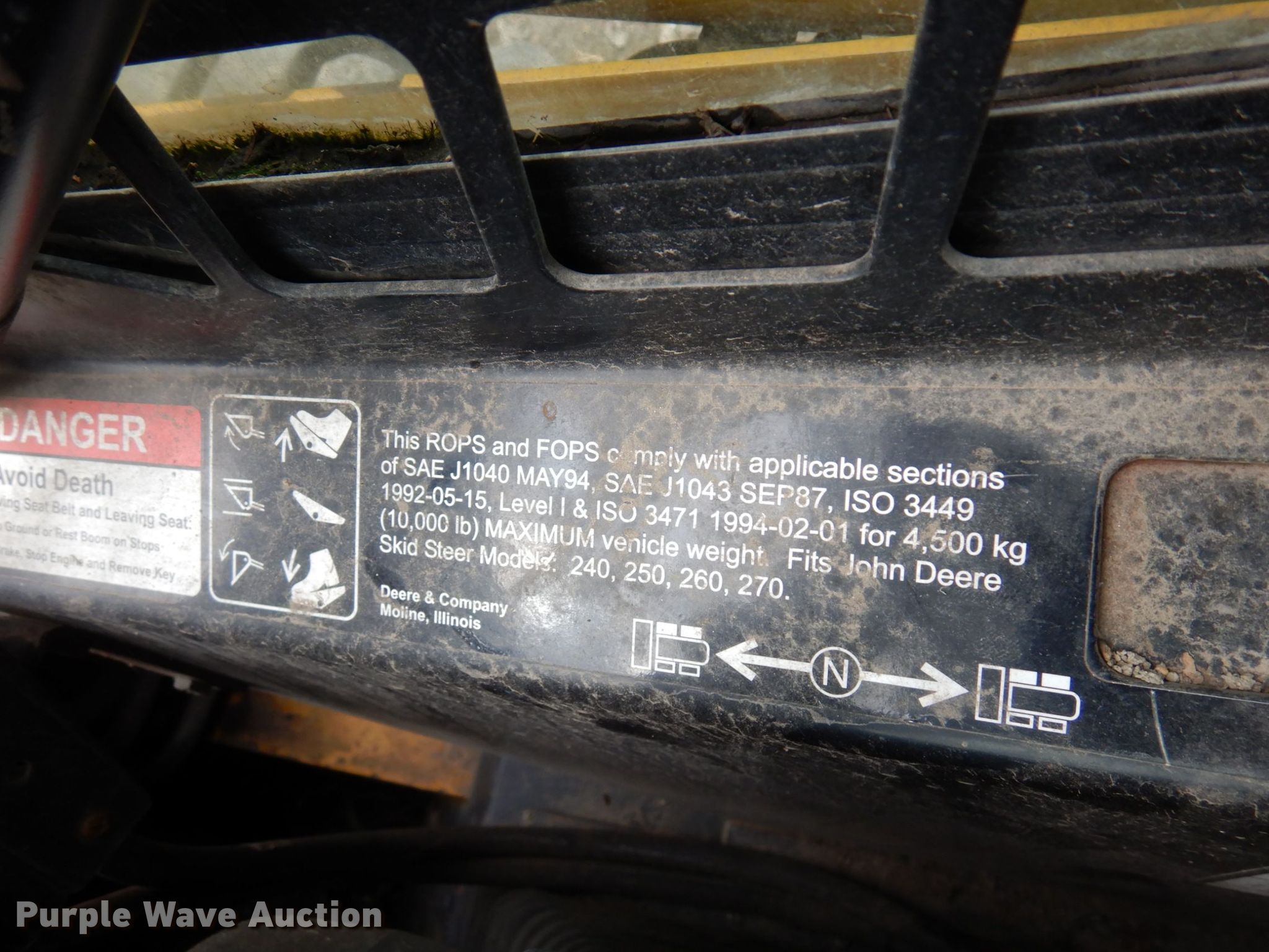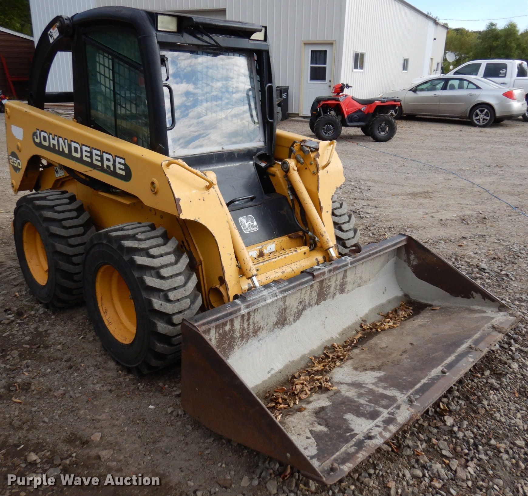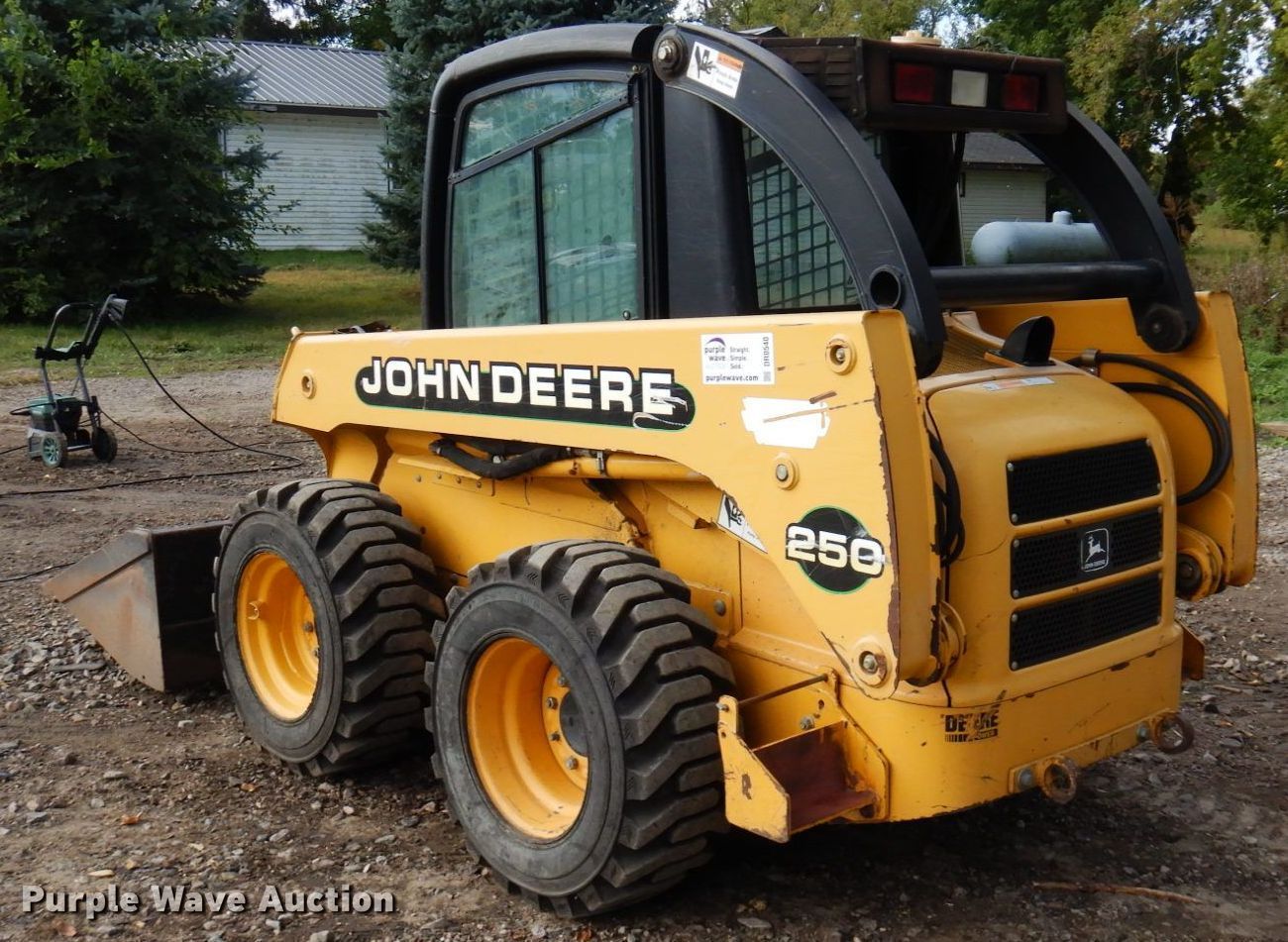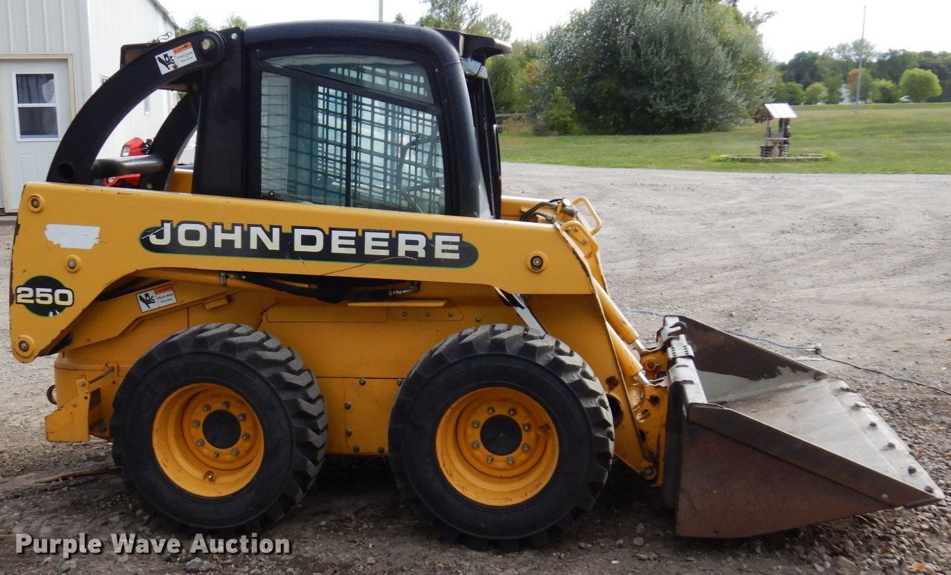 Purple Wave is selling a used Skid Steer Loader in Minnesota. This item is a 2000 John Deere 250 skid steer loader with the following: Hours: 1,589 on meter, Serial: KV0250A252955