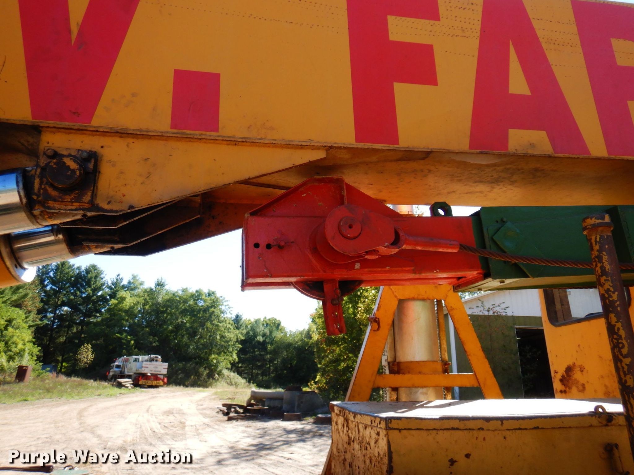 1977 Bucyrus 30-XC crane. Miles: 75,182 on odometer, Hours: 6,611 on meter, Miles or hours may vary, unit still in use, Serial: 20172297. Engine Cummins, Displacement: 555 C.I.D., Cylinders: 8, Fuel type: Diesel. Upper engine Make: Cummins, Cylinders: 6, Engine hours: 8,445, Fuel type: Diesel. Transmission Eaton Fuller Roadranger RT613, Manual, Speed: 13. Chassis Axles: Tandem, Suspension: Spring over walking beam, Brakes: Air, Propulsion: Mechanical, Controls: Mechanical actuated. Operators station Enclosed cab, Heat, Crane controls: Stick. Features Boom Telescopic, Maximum boom length: 80', Jib: 30', Sections: 3, Maximum lift capacity: 60,000 lbs, Stabilizers: 4, Boom controls In-cab, Winches: 2, Crane block Sheaves: 4, Crane ball & hook, Certification valid through: 08/23, Manuals, Lift chart. Tires Front: 65R22.5, Rear: 11R22.5. Wisconsin title. Mileage has not been verified. Exempt will be written in the odometer disclosure on the title. Title distribution may be delayed up to 14 days from verification of funds. Paul V. Farmer, Inc. 2800 Short Road. Eau Claire, WI 54701