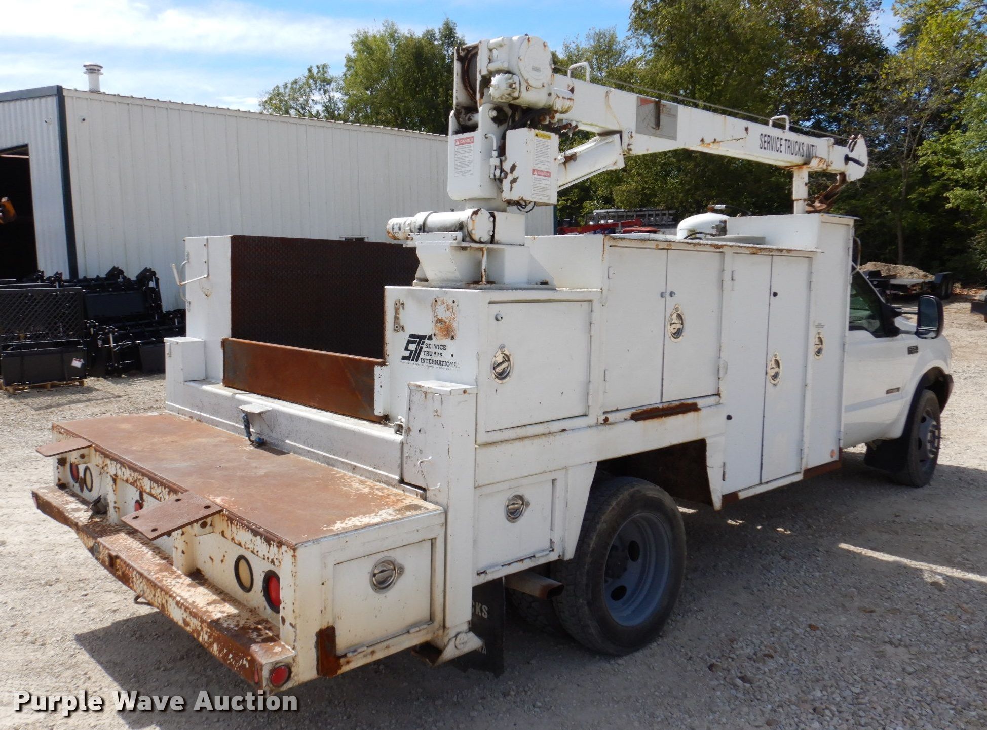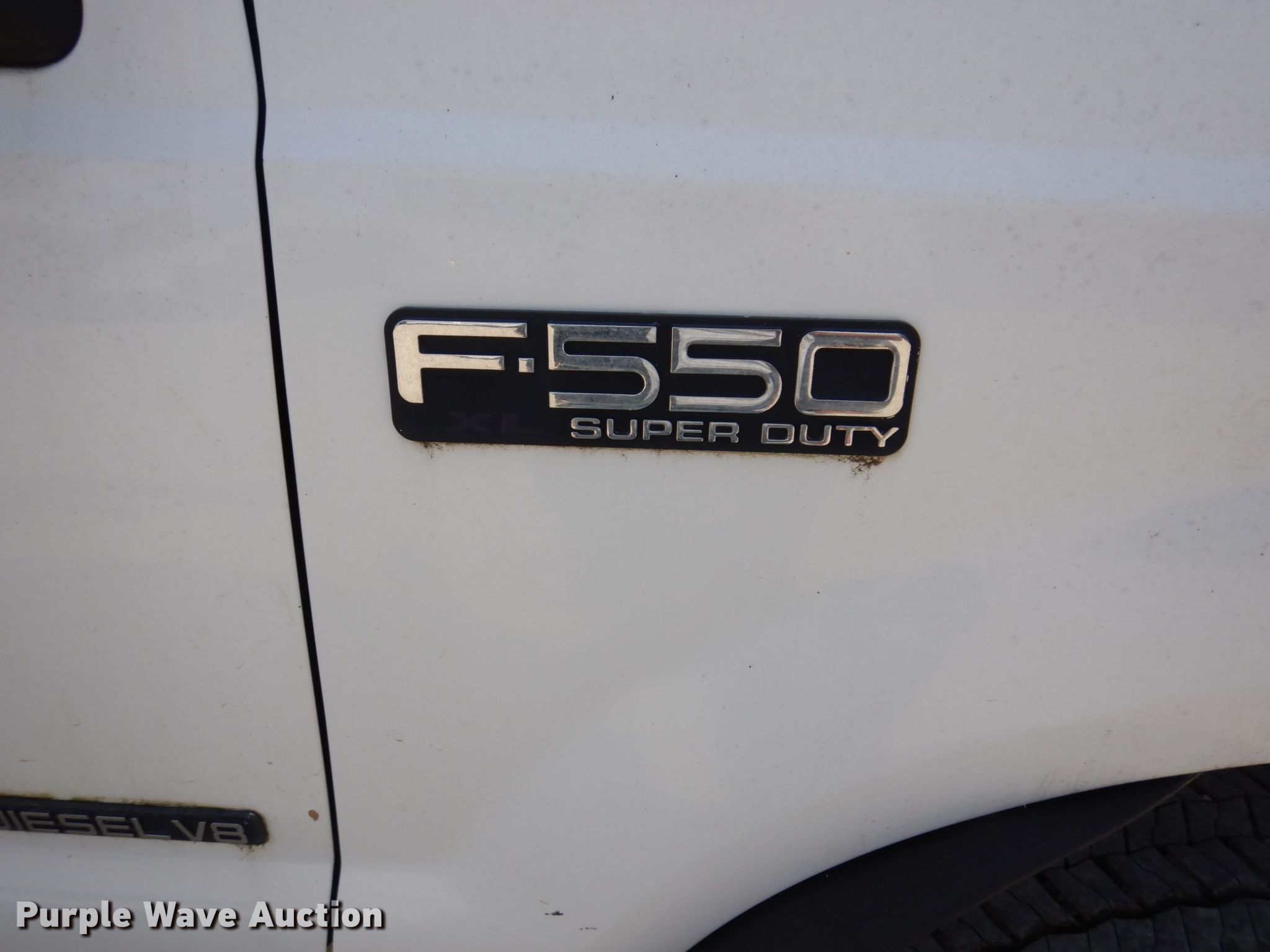 2000 Ford F550 Super Duty XL utility / service truck. Miles: 212,682 on odometer, VIN: 1FDAF56F4YED72608. Engine Displacement: 7.3L V8 OHV, Cylinders: 8, Fuel type: Diesel. Transmission Manual, Speed: 6. Chassis Axles: Single, Suspension: Spring, Brakes: Hydraulic, PTO, GVWR: 19,000 lbs, Wheelbase: 165". Interior AC, Heat. Features Bed Service Trucks International, 12' 8" L x 96" W, Air compressor American Eagle V480, Crane Service Truck International, Boom length: 18', Maximum lift capacity: 6,000 lbs. Tires Size: 225/70R19.5. Notes Unknown operating condition of crane. Illinois title. Seller is a Missouri licensed motor vehicle dealer. Title will be assigned and distributed by the dealer. Please contact the seller for distribution questions. CSR Truck and Equipment Sales. Marthasville, MO 63357