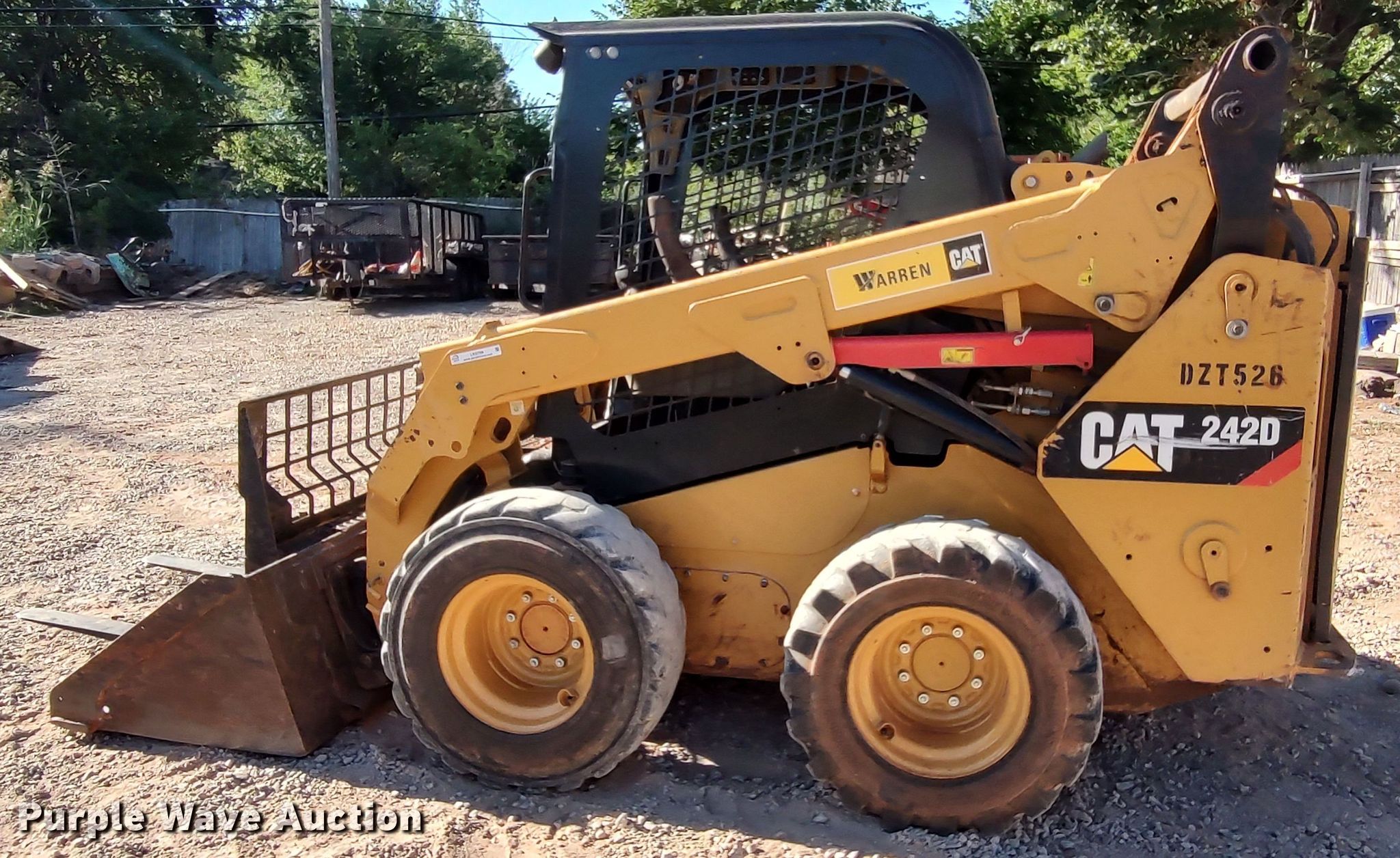Purple Wave is selling a used Skid Steer Loader in Oklahoma. This item is a 2014 Caterpillar 242D skid steer loader with the following: Hours: 3,729 on meter, Serial: CAT0242DPDZT00526