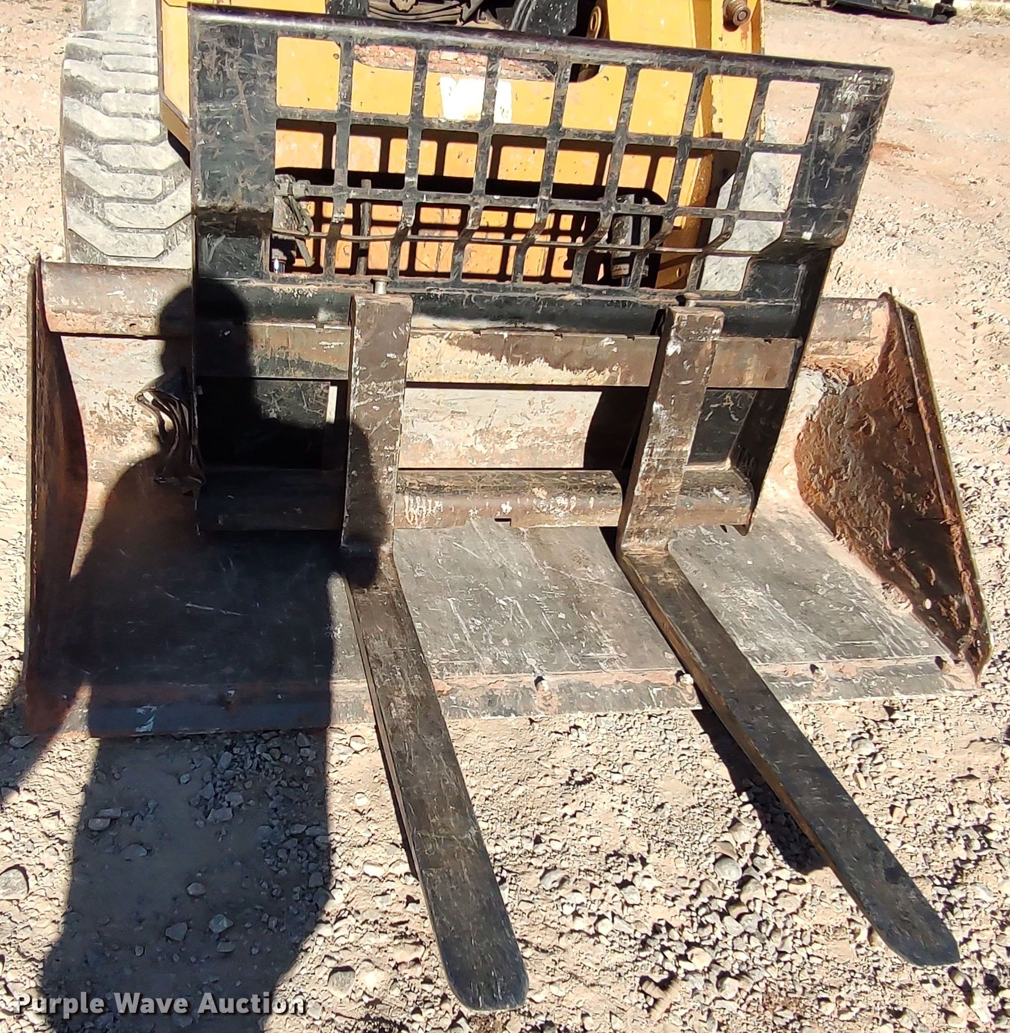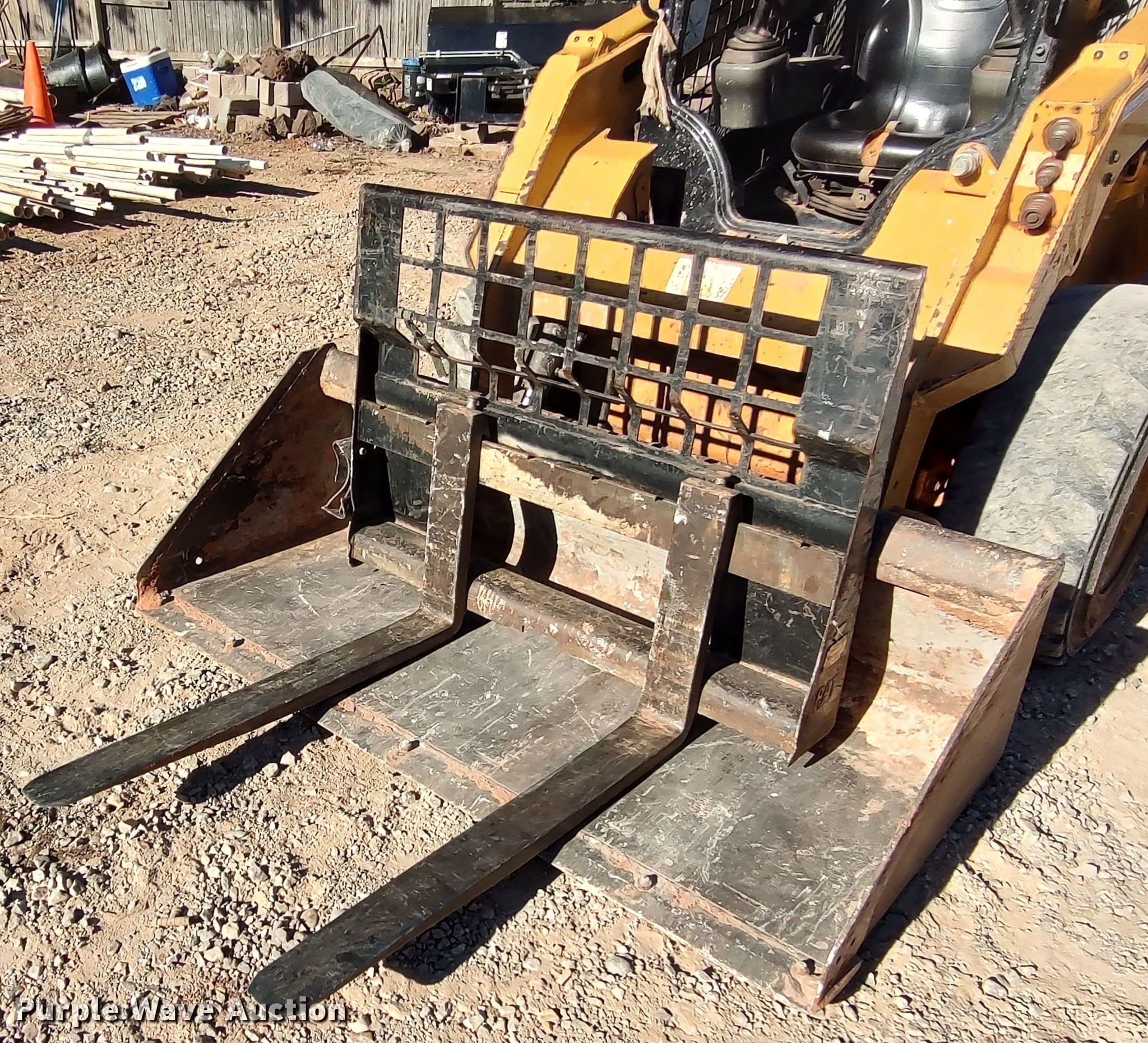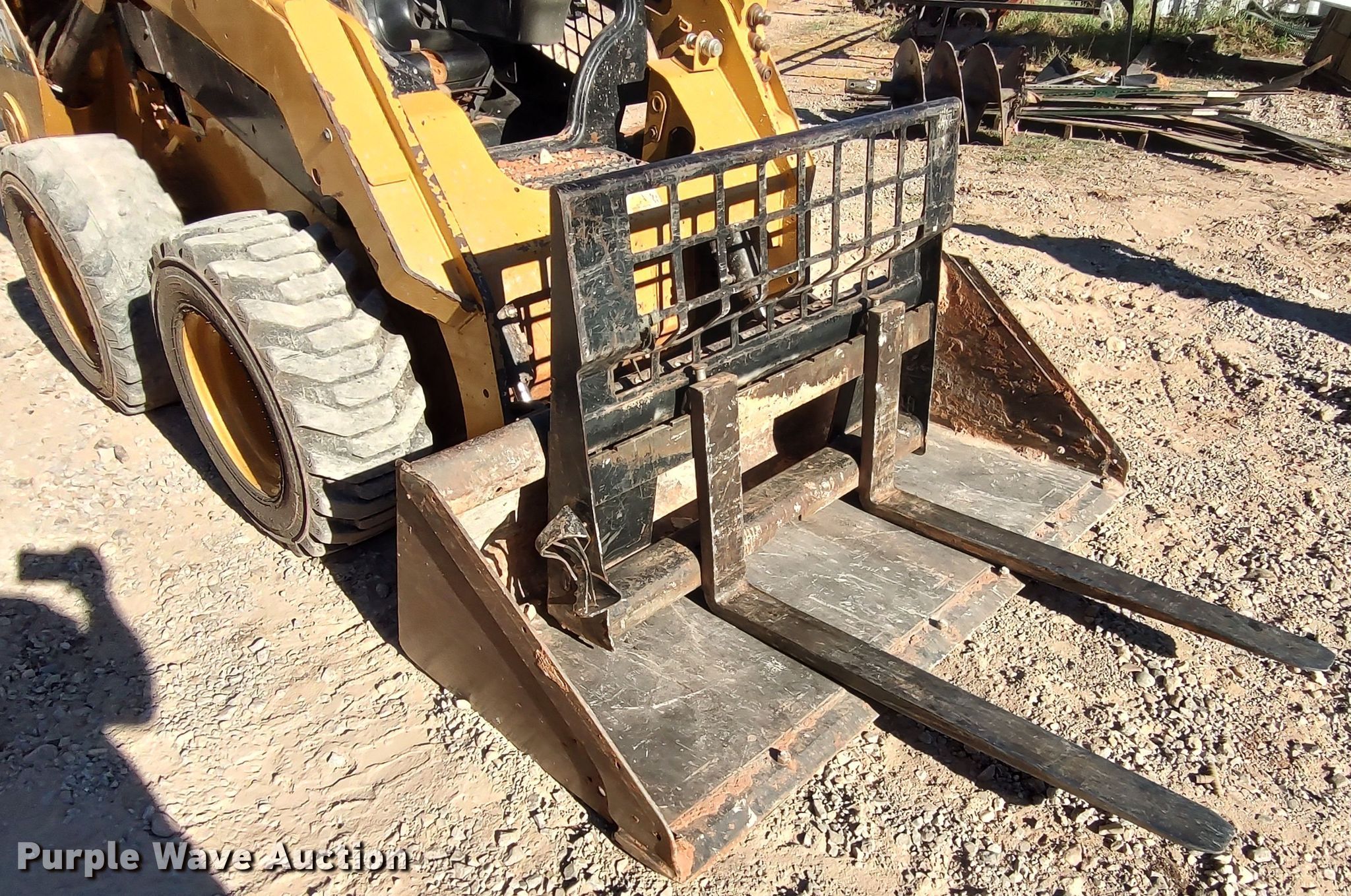 2014 Caterpillar 242D skid steer loader. Hours: 3,729 on meter, Serial: CAT0242DPDZT00526. Engine Caterpillar C3.3B-CR-T-EF04, Serial: DKBXL03.3EKD, Displacement: 3.3L, Cylinders: 4, Fuel type: Diesel, HP: 54. Transmission Hydrostatic, Two speed travel. Operators station Bucket control: Hand. Features Auxiliary hydraulics, Quick coupler: Manual, Bucket Width: 67", Cutting edge: Bolt-on, Forks Length: 42". Tires Size: 12-16.5 NHS. Rain Dance Sprinkler Company. 724 West Britton Road. Oklahoma City, OK 73114