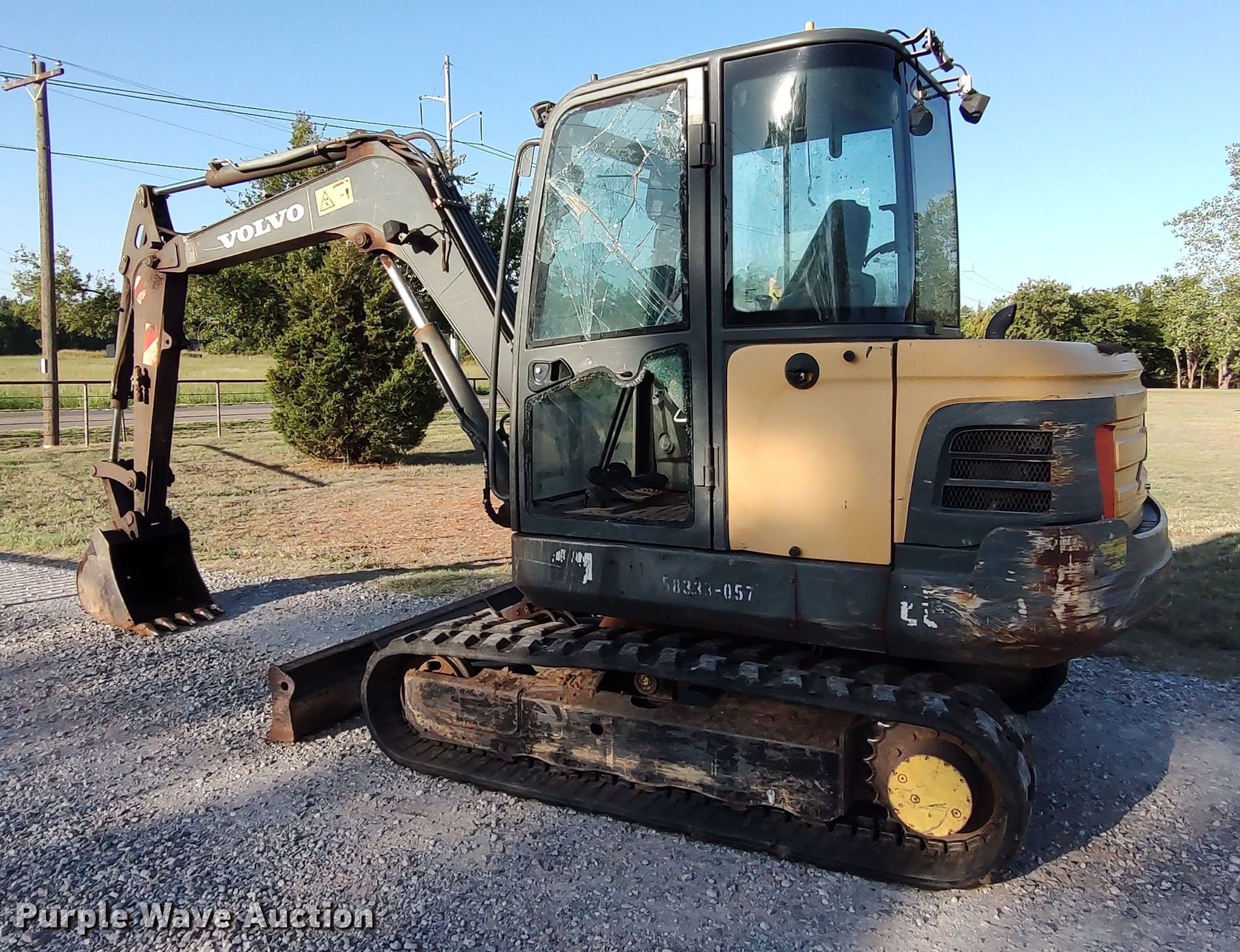 Purple Wave is selling a used Mini Excavator in Oklahoma. This item is a 2012 Volvo EC55C mini excavator with the following: Hours: 5,566 on meter, Serial: VCEE55CH00112241