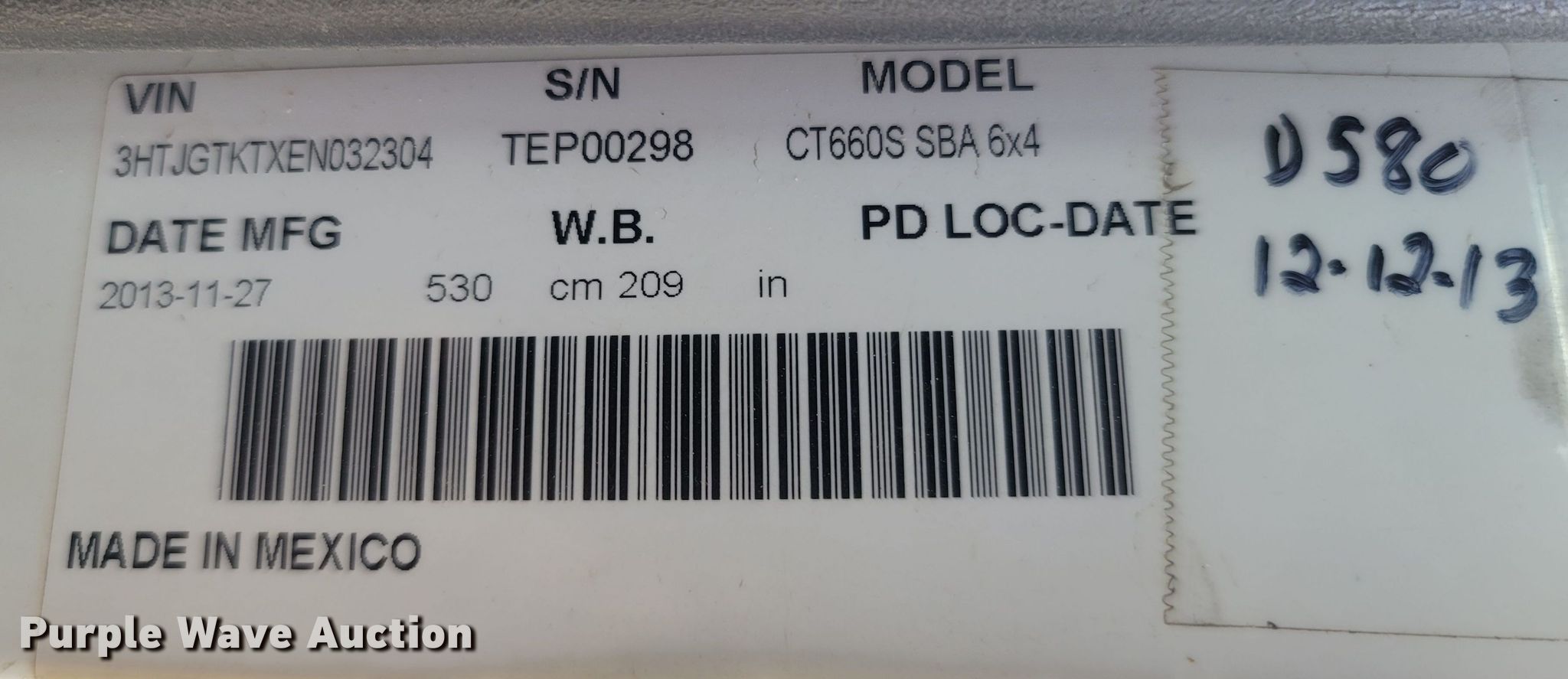Purple Wave is selling a used Construction Dump Truck in Arkansas. This item is a 2014 Caterpillar CT660 dump truck with the following: Miles: 217,560 on odometer, Hours: 9,676 on meter, Miles or hours may vary, unit still in use, VIN: 3HTJGTKTXEN032304
