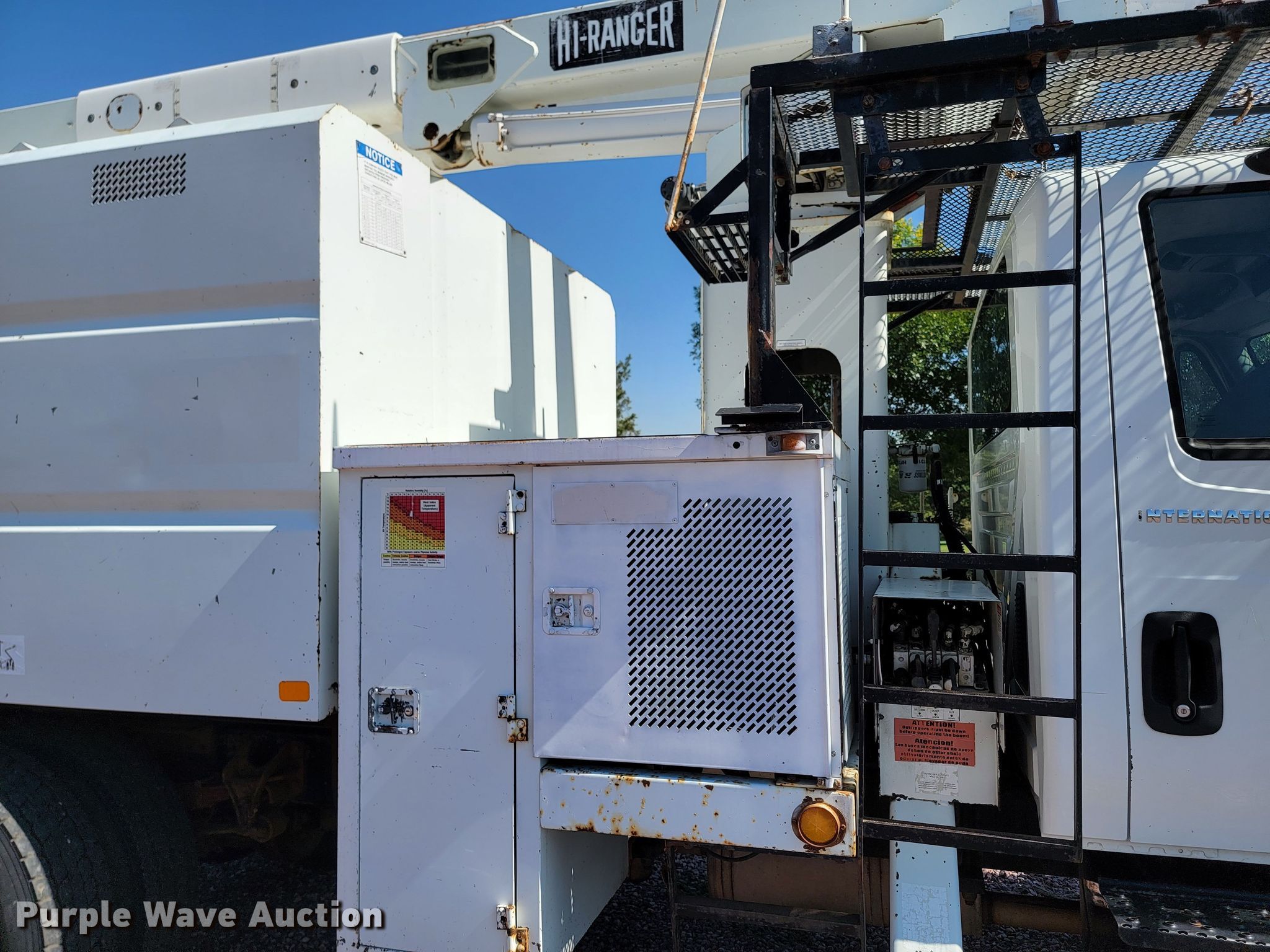 2004 International 4300 forestry bucket truck. Miles: 88,707 on odometer, Hours: 11,106 on meter, VIN: 1HTMMAAP54H678177. Engine International DT466, Displacement: 7.6L, Cylinders: 6, Fuel type: Diesel. Transmission Manual, Speed: 10. Chassis Axles: Single, Suspension: Spring, Brakes: Hydraulic, PTO. Interior Heat, Cruise control. Features Chip bed 15' 2" L x 96" W, Ram: Single, Engine Cylinders: 3, Fuel: Diesel, Hours: 2,141, Boom Hi Ranger XT 55, Maximum lift capacity: 350 lbs, Maximum lift height: 55', Boom type: Articulating, Insulated, Man basket, Boom controls Ground, Platform/ basket.. Tires Size: 11R22.5. Notes Receiver hitch not included, Dash warning indicator: ABS. South Dakota title. Andy's Tree Service. Brandon, SD 57005