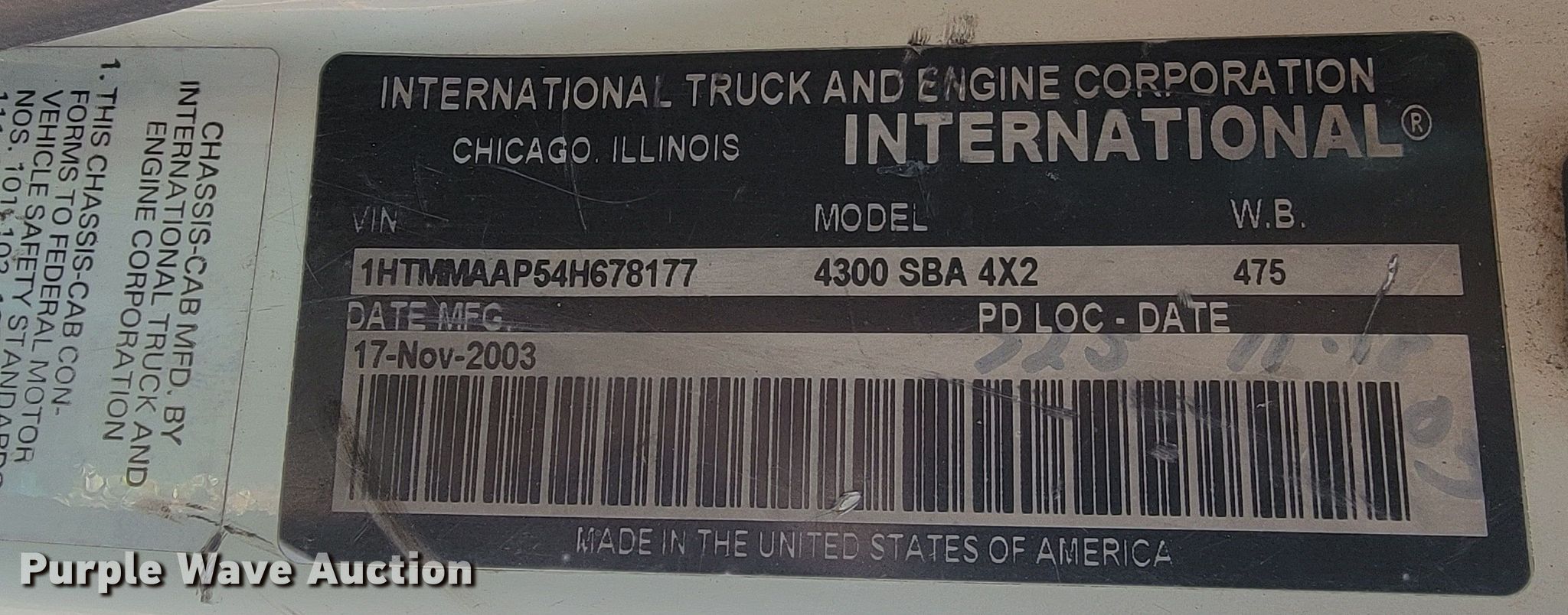 Take a look at this used 2004 International 4300 forestry bucket truck being sold on October 20th, 2022 in the SOLD! October 20 Construction Equipment Auction made by International. Take a look at all of the item information below or take a look at similar auctions for Construction Trucks.