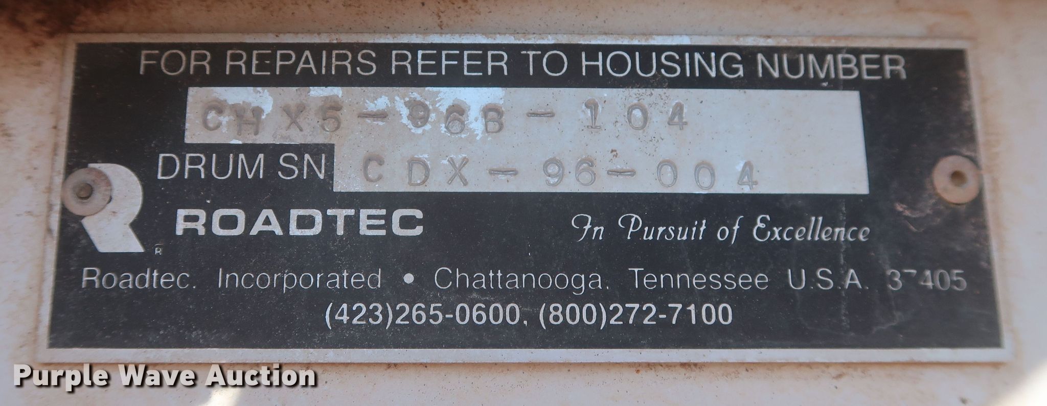 Purple Wave is selling a used Reclaimer or Stabilizer in Oklahoma. This item is a 2019 Roadtec SX-5E reclaimer with the following: Hours: 1,282 on meter, Cutter hours: 791 on meter, Serial: 4004