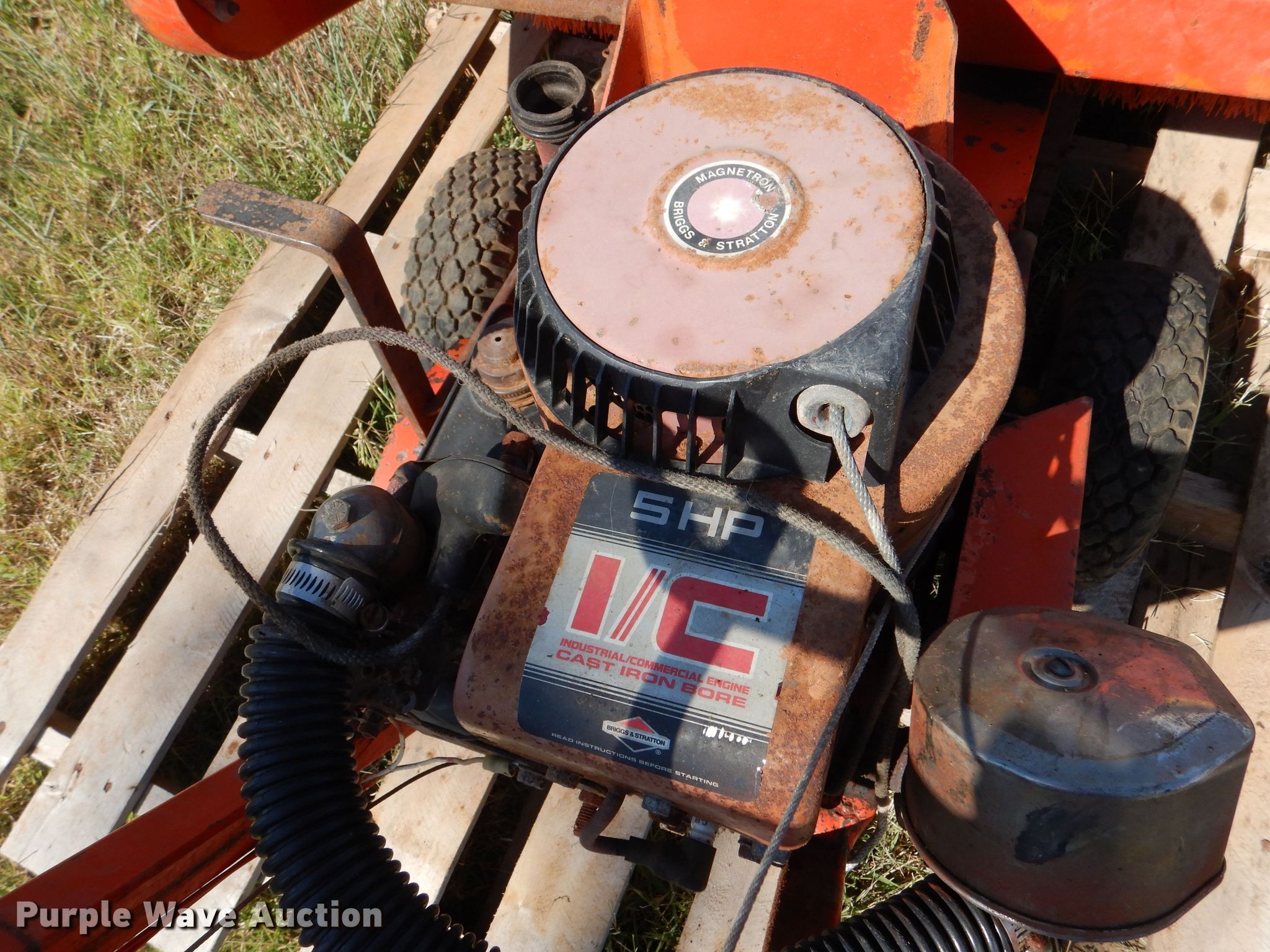 (2) brooms. Engine. Cylinders: 1, Fuel type: Gas. Transmission Hydrostatic. Features Broom Width: 38". Tires Size: 4.10-3.50. Notes Flat tires, Unknown operating condition. Cobalt Construction Inc.. 833 Airpark Rd. Woodward, OK 73802