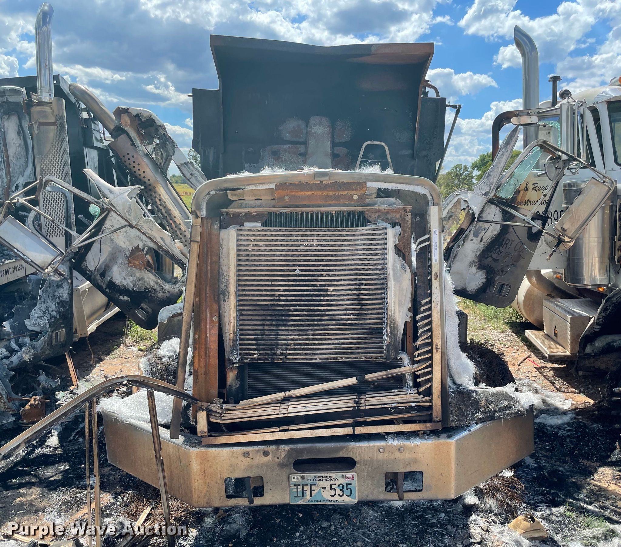 1988 Freightliner FLC dump truck. Miles: Unknown, VIN: 1FUY2RYB0JP336160, Claim #: 2-810249. Engine Cylinders: 6, Fuel type: Diesel. Transmission Manual. Chassis Axles: Tandem, Suspension: Spring, Brakes: Air, PTO. Features Dump bed 15' L x 8' W, Side height: 39", Side board height: 6", Bed type: Steel, Roll tarp. Tires Size: 11R24.5. Notes Fire damage, Non-operational unit. Insurance salvage unit. Oklahoma classic title. Mileage has not been verified. Exempt will be written in the odometer disclosure on the title. Oklahoma Farm Bureau Insurance. 103005 N 3670 rd. Boley, OK 74829