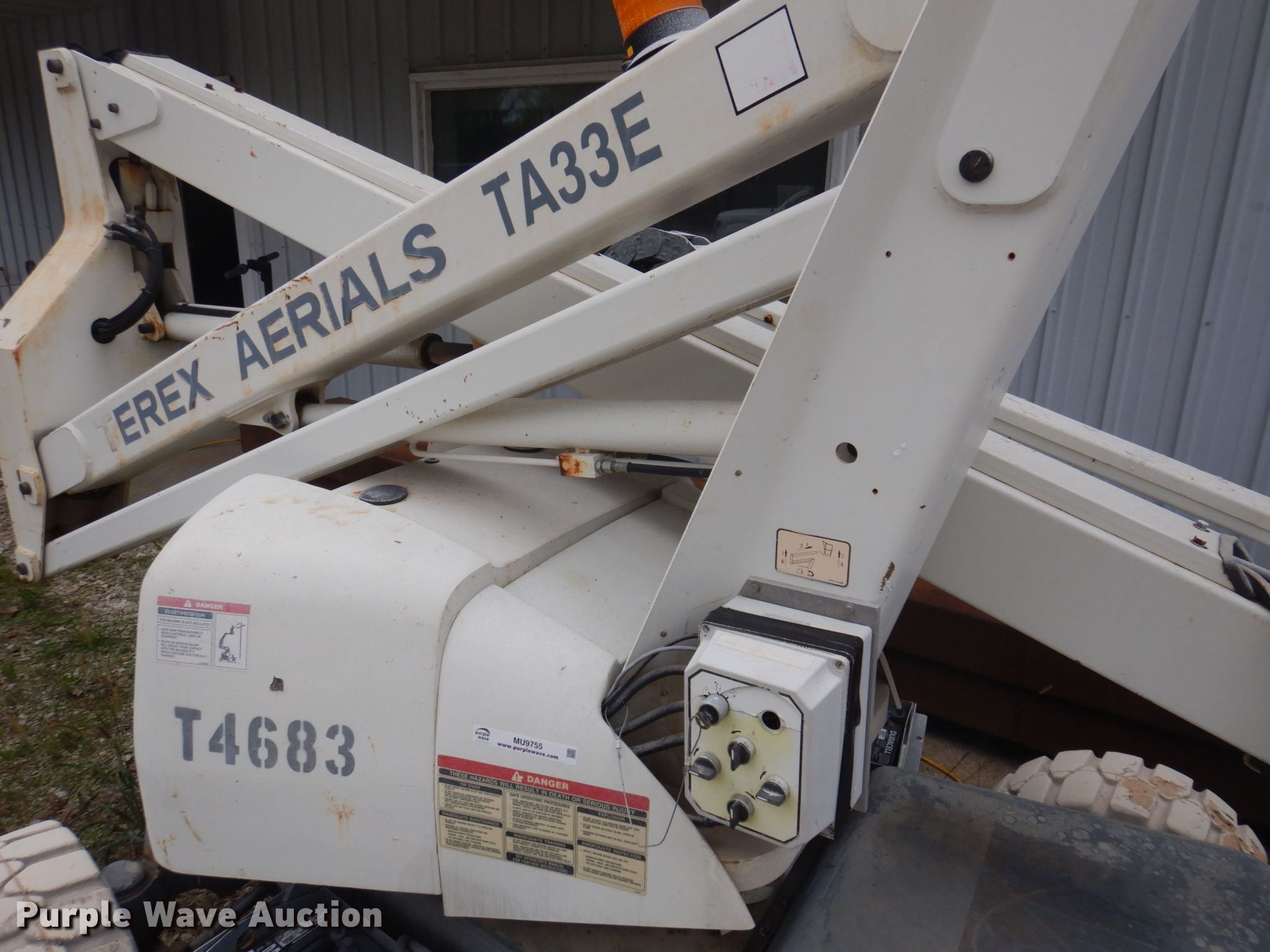 Purple Wave is selling a used Boom Lift in Illinois. This item is a 1998 Terex TA33E boom lift with the following: Hours: 544 on meter, Serial: 14683