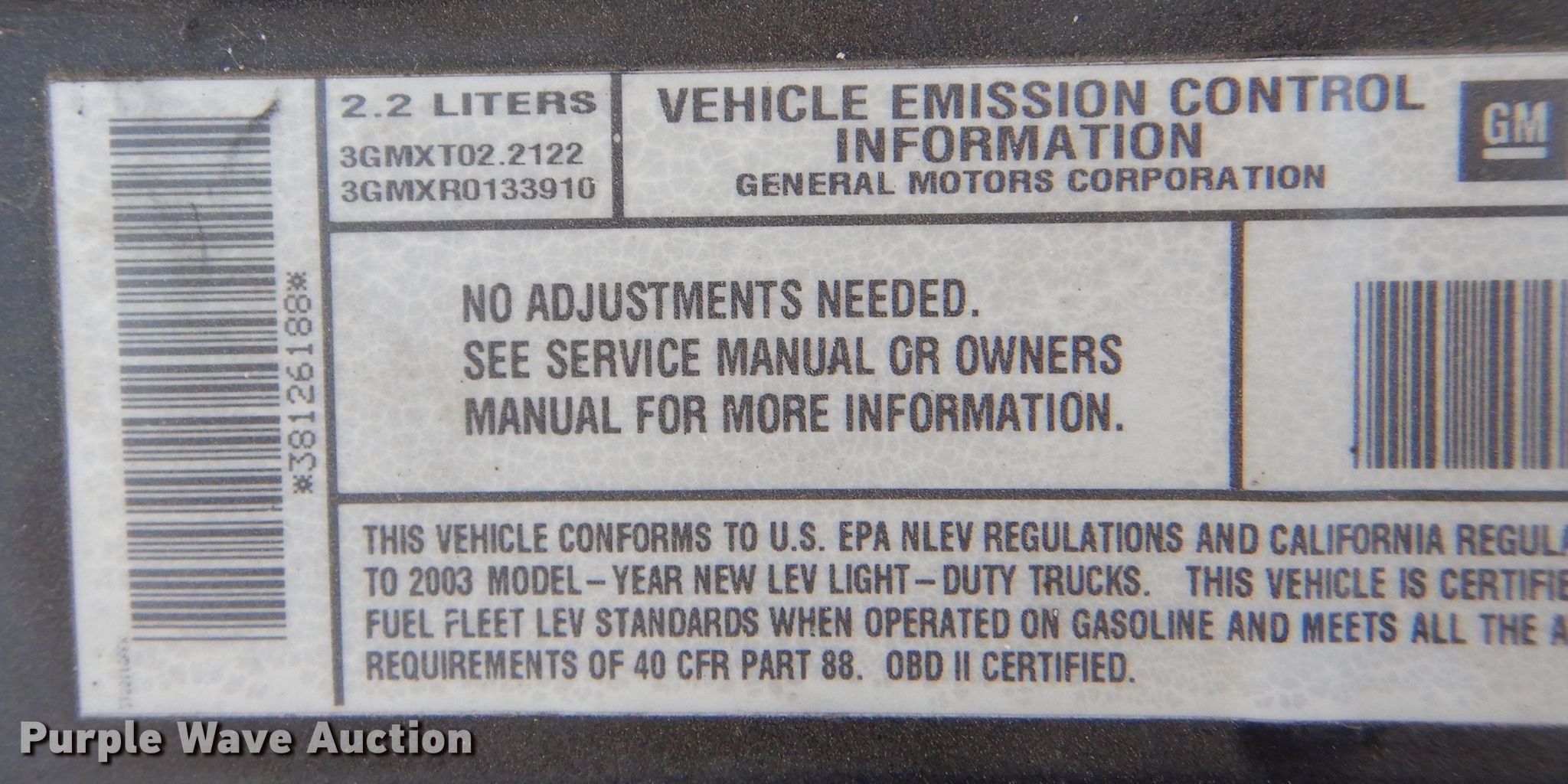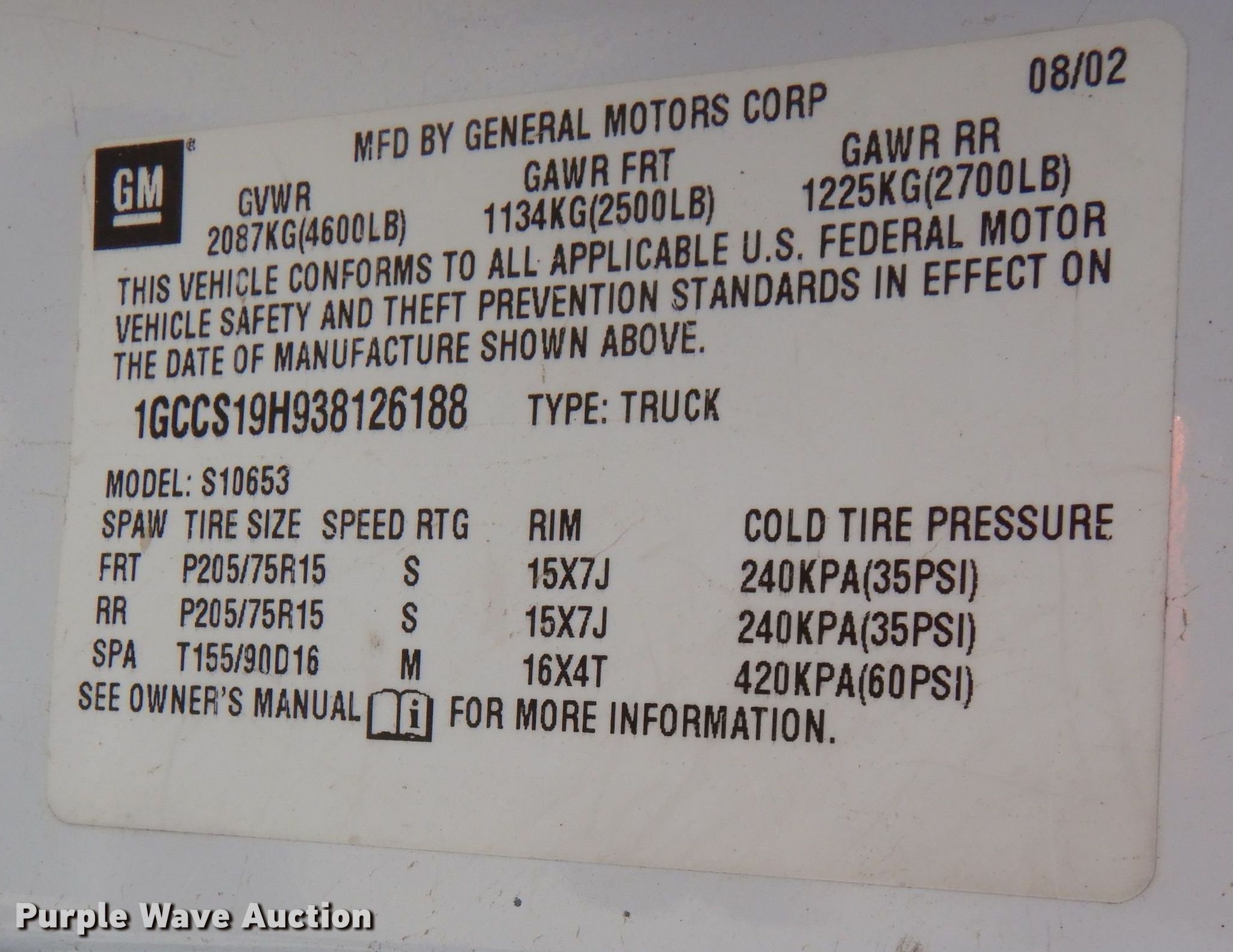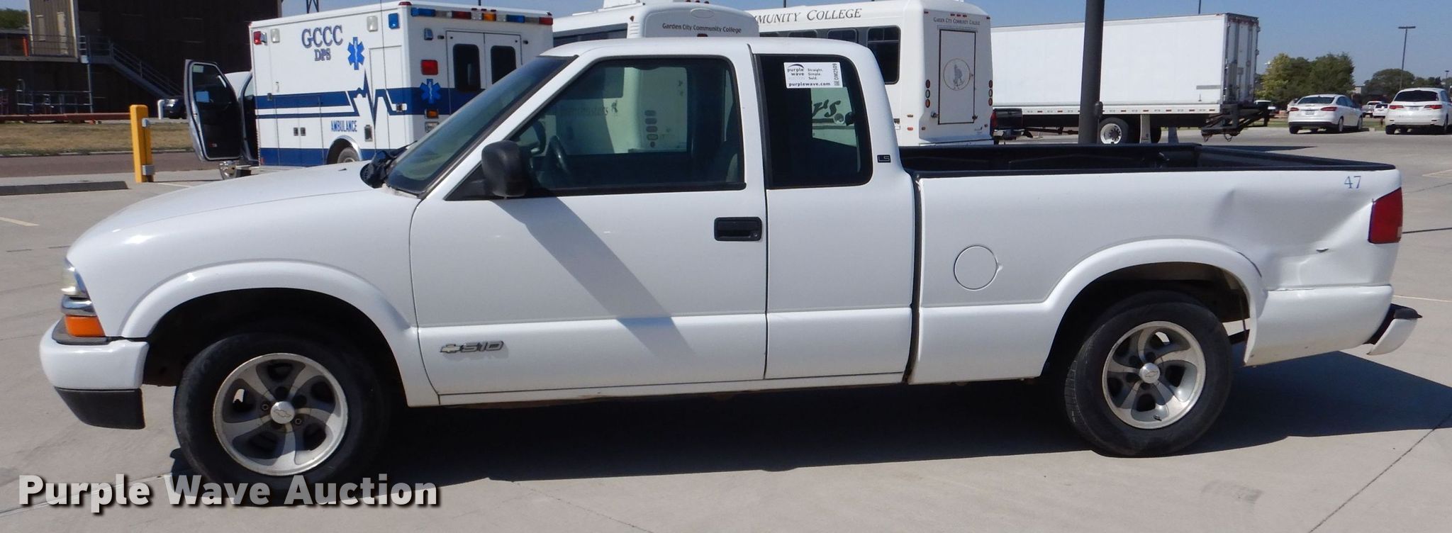 Purple Wave is selling a used Compact Pickup or Van in Kansas. This item is a 2003 Chevrolet S10 Ext. Cab pickup truck with the following: Miles: 80,759 on odometer, VIN: 1GCCS19H938126188, Unit #: 47