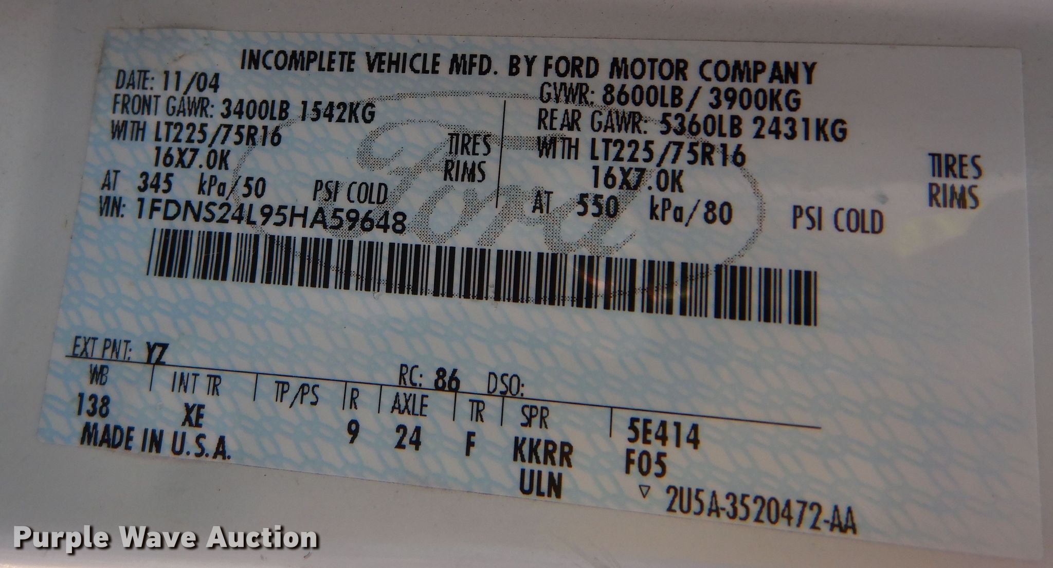 • VIN: 1FDNS24L95HA59648