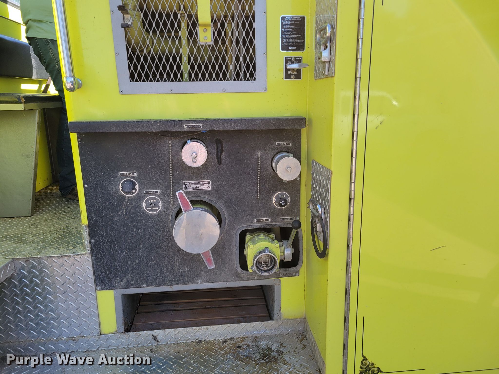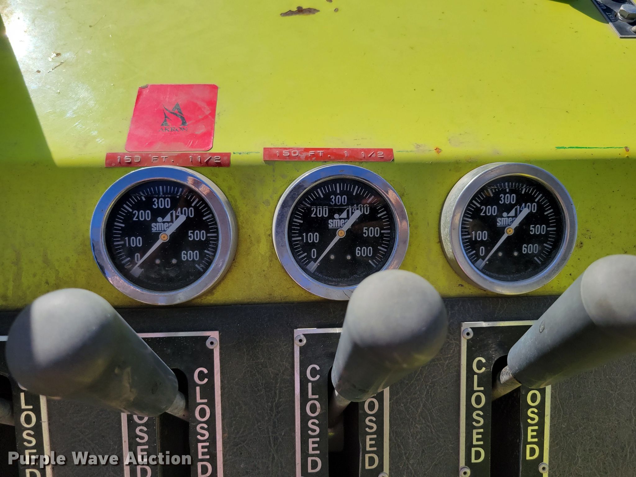 1979 Ford F700 pumper fire truck. Miles: 4,334 on odometer, VIN: N70CVFE5989. Engine Ford, Displacement: 429 C.I.D., Cylinders: 8, Fuel type: Gas. Transmission Manual, Speed: 5, plus 2. Chassis Axles: Single, Suspension: Spring, Brakes: Hydraulic, GVWR: 27,500 lbs, Wheelbase: 185". Interior Heat. Features Fire truck body Smeal V-801, Elevated deck gun, Pump, Hose Hose length: 150', PA/ siren controls, (2) hose reels Diameter: 1.5" , Approximately 150' L, Light bar. Tires Size: 10.00-20. Nebraska title. Brock-Julian Fire Board. 705 Main St. Brock, NE 68320