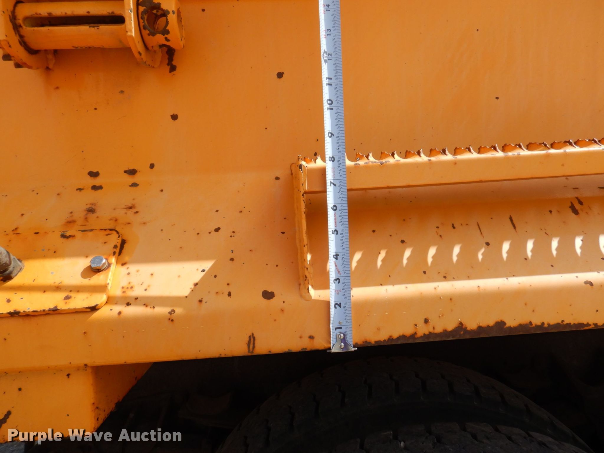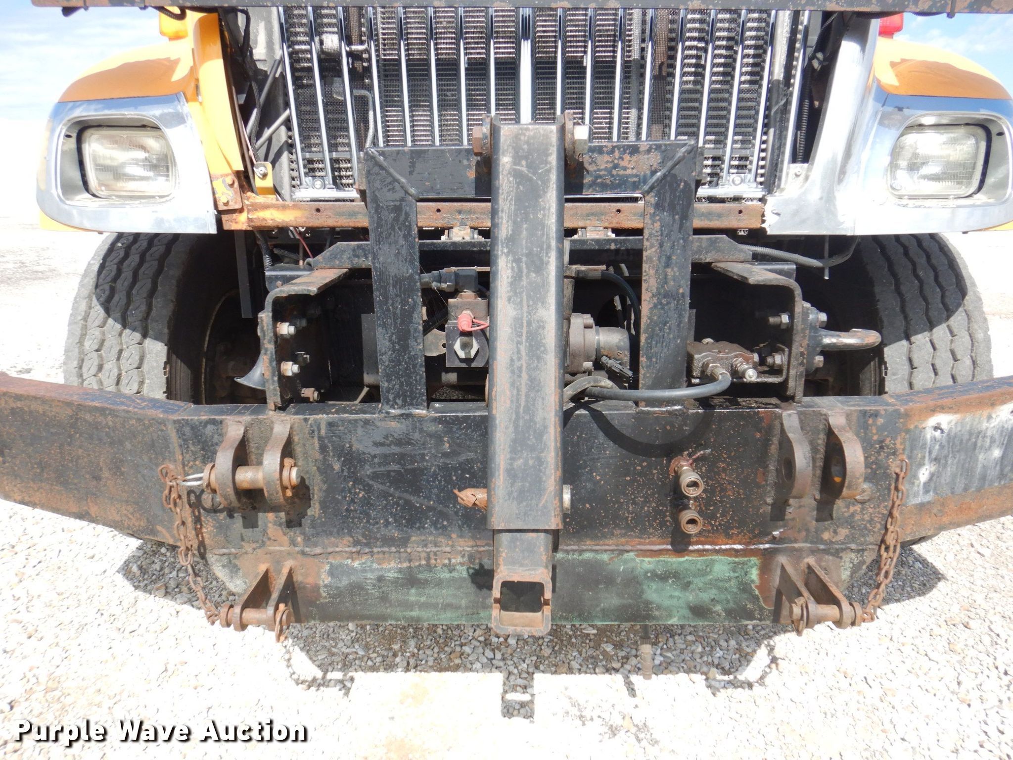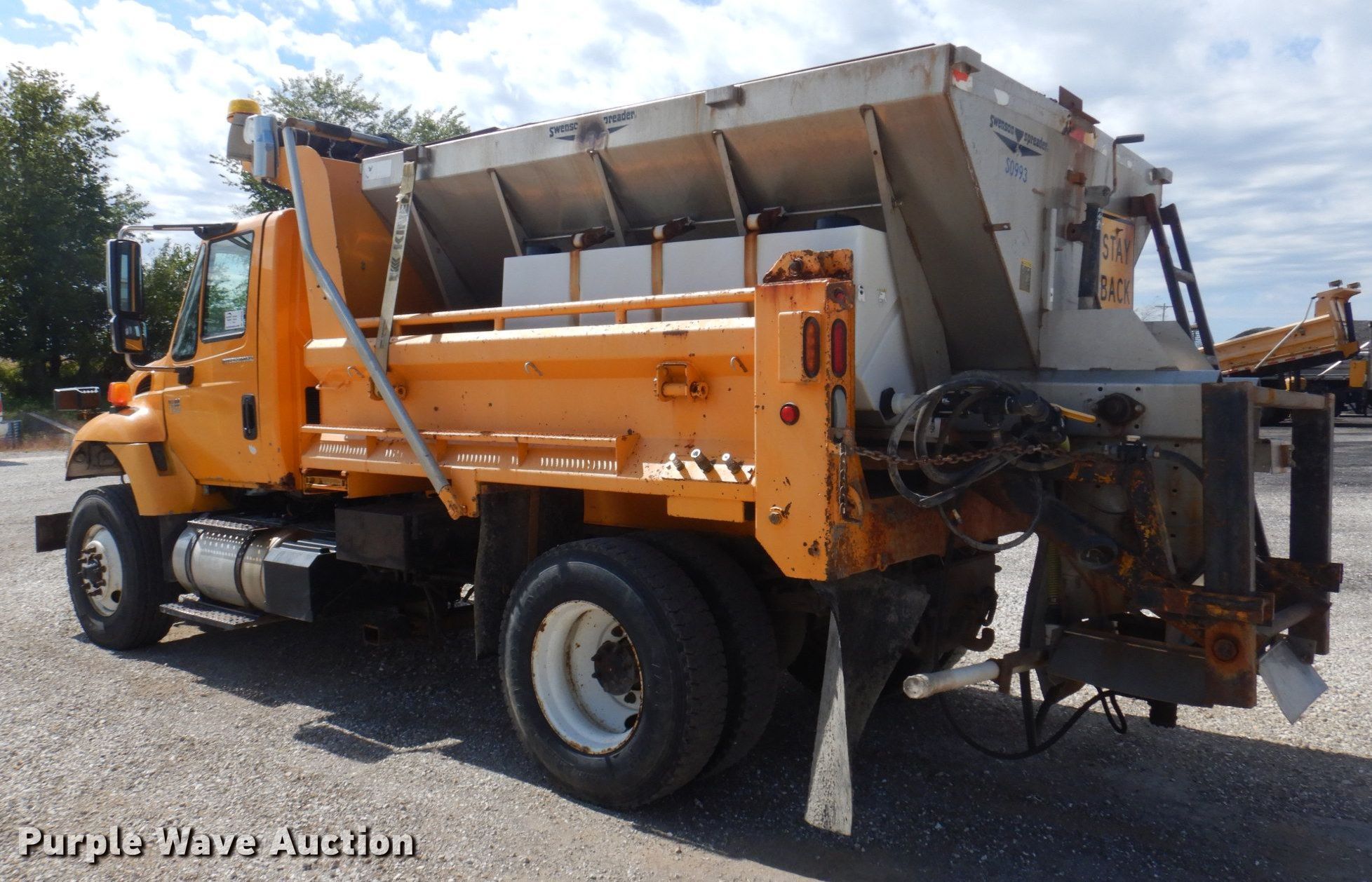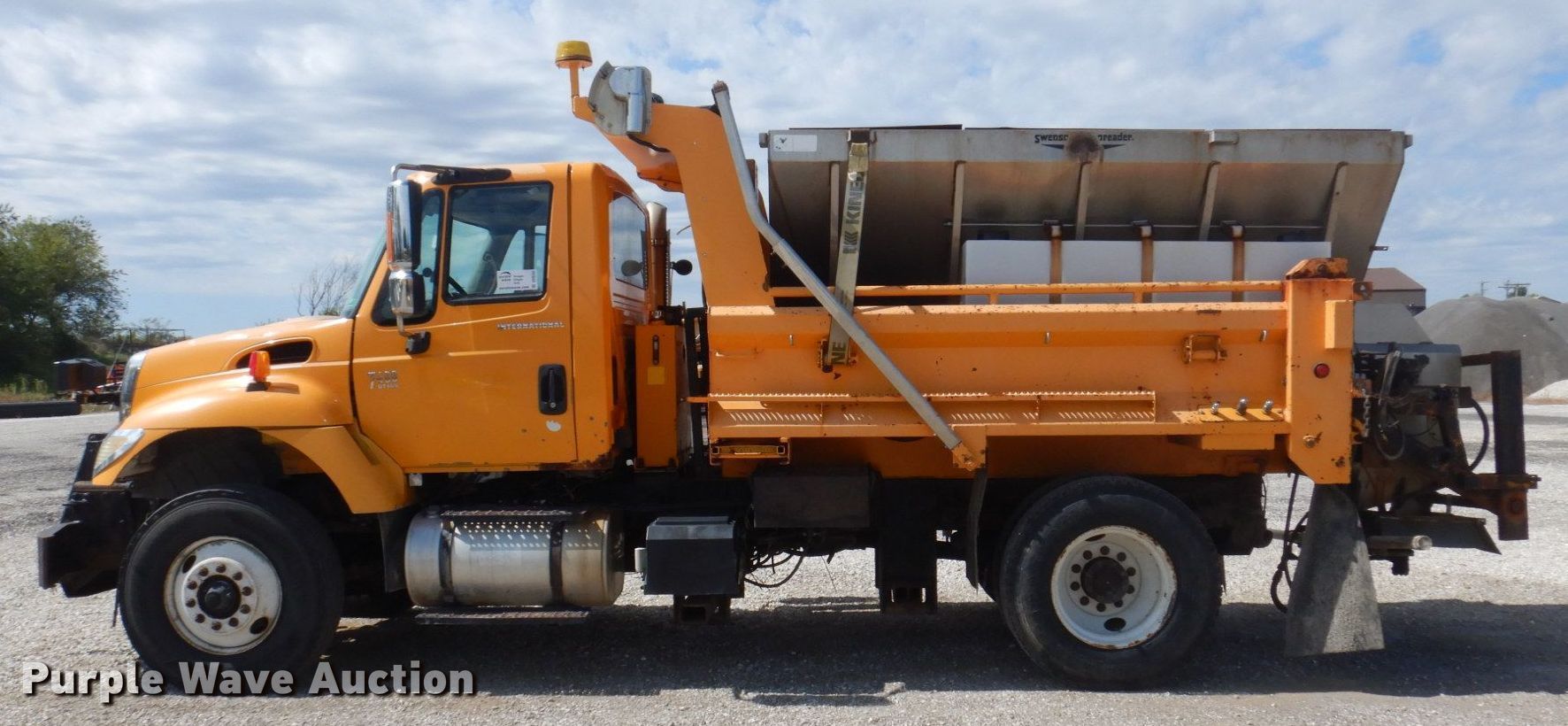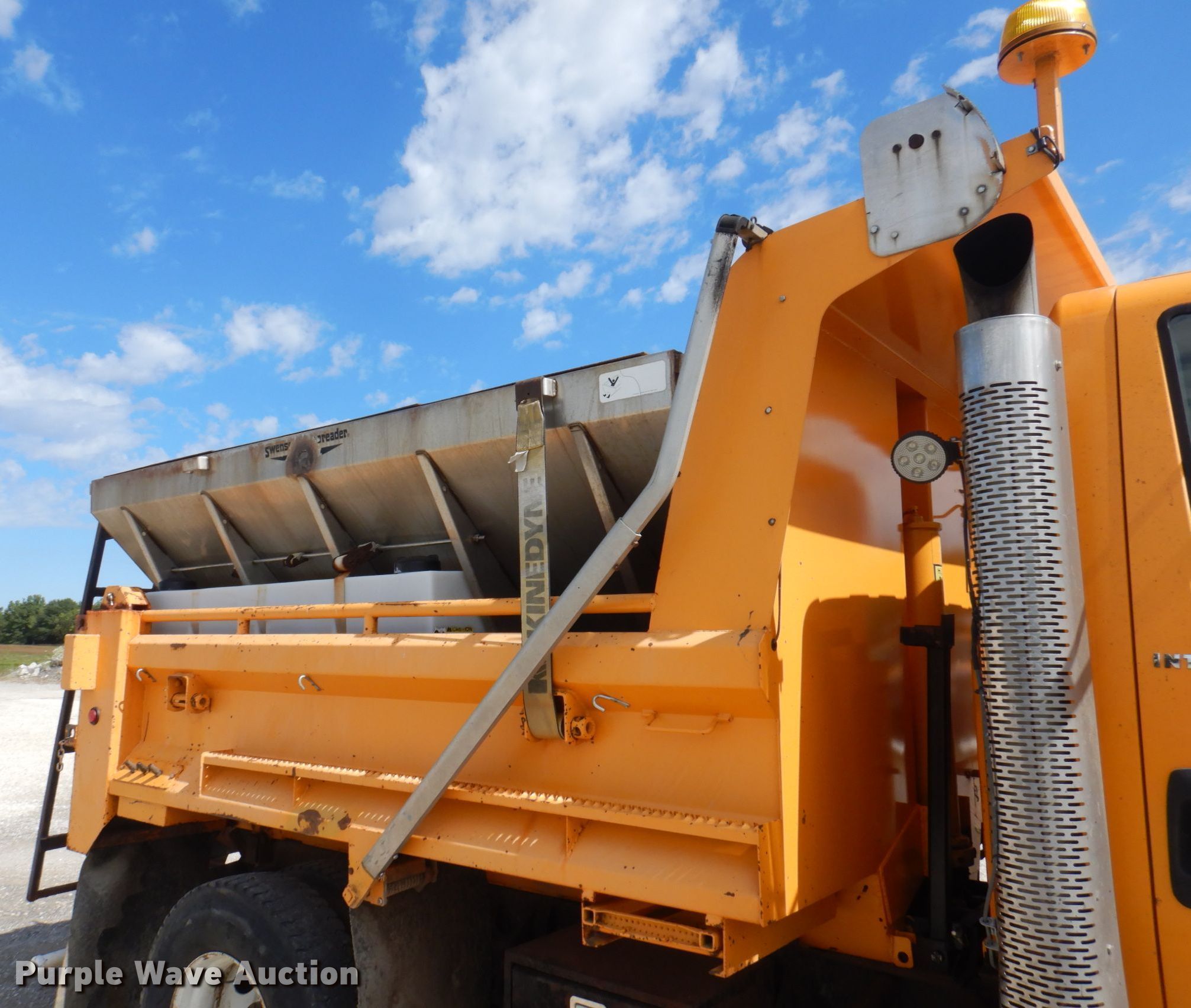 2005 International 7400 dump truck. Miles: 189,132 on odometer, Hours: 12,768 on meter, VIN: 1HTWDAAR65J144366, Unit #: 7341. Engine International DT466, Cylinders: 6, Fuel type: Diesel. Transmission Automatic. Chassis Axles: Single, Suspension: Spring, Brakes: Air, PTO, Front mount PTO, GVWR: 37,000 lbs FAWR: 16,000 lbs, RAWR: 21,000 lbs, Wheelbase: 171". Interior AC, Heat, Heated mirrors, Power windows, Cruise control. Features Dump bed 10' x 8' W, Side height: 24", Bed type: Steel, Roll tarp, Ram: Single , End gate: Air operated, Spreader Swenson, Plow Width: 144", Wing plow Henke, Width: 96". Tires Front: 315/80R22.5, Rear: 11R22.5. Notes Dash warning indicator: ABS. Missouri title. Title distribution may be delayed up to 14 days from verification of funds. Missouri Department of Transportation (MODOT). 26826 US Hwy 63. Macon, MO 63552