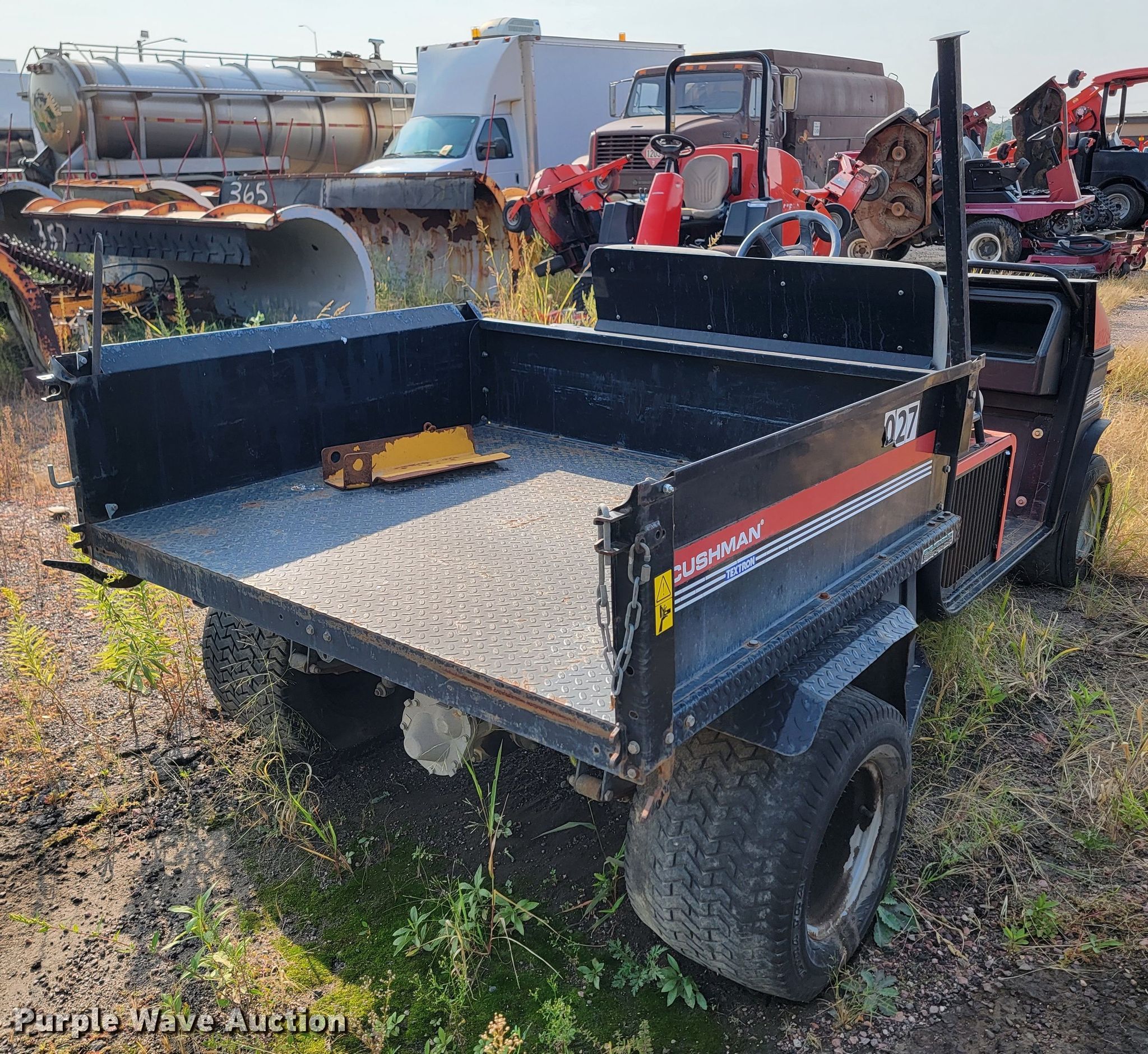 2009 Cushman Turf-Truckster utility vehicle. Hours: 1,746 on meter, Serial: 2126172, Unit #: 51-48. Engine Cylinders: 3, Fuel type: Gas, Electric start. Transmission Manual, Speed: 4. Operators station Passengers: 2. Features Dump bed 48" L x 54" W, Dump bed type: Electric/ Hydraulic. Tires Front: 20x10.00-10, Rear: 24x13.00-12. Notes Dead battery, Non-operational unit. Transfer of ownership documentation will be a bill of sale. No title will be provided. Sioux Falls Street Department - Open inspection Oct. 21. 1000 E Chambers St.. Sioux Falls, SD 57104