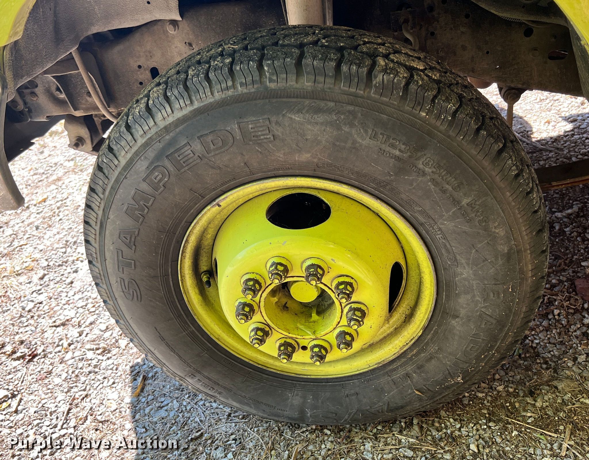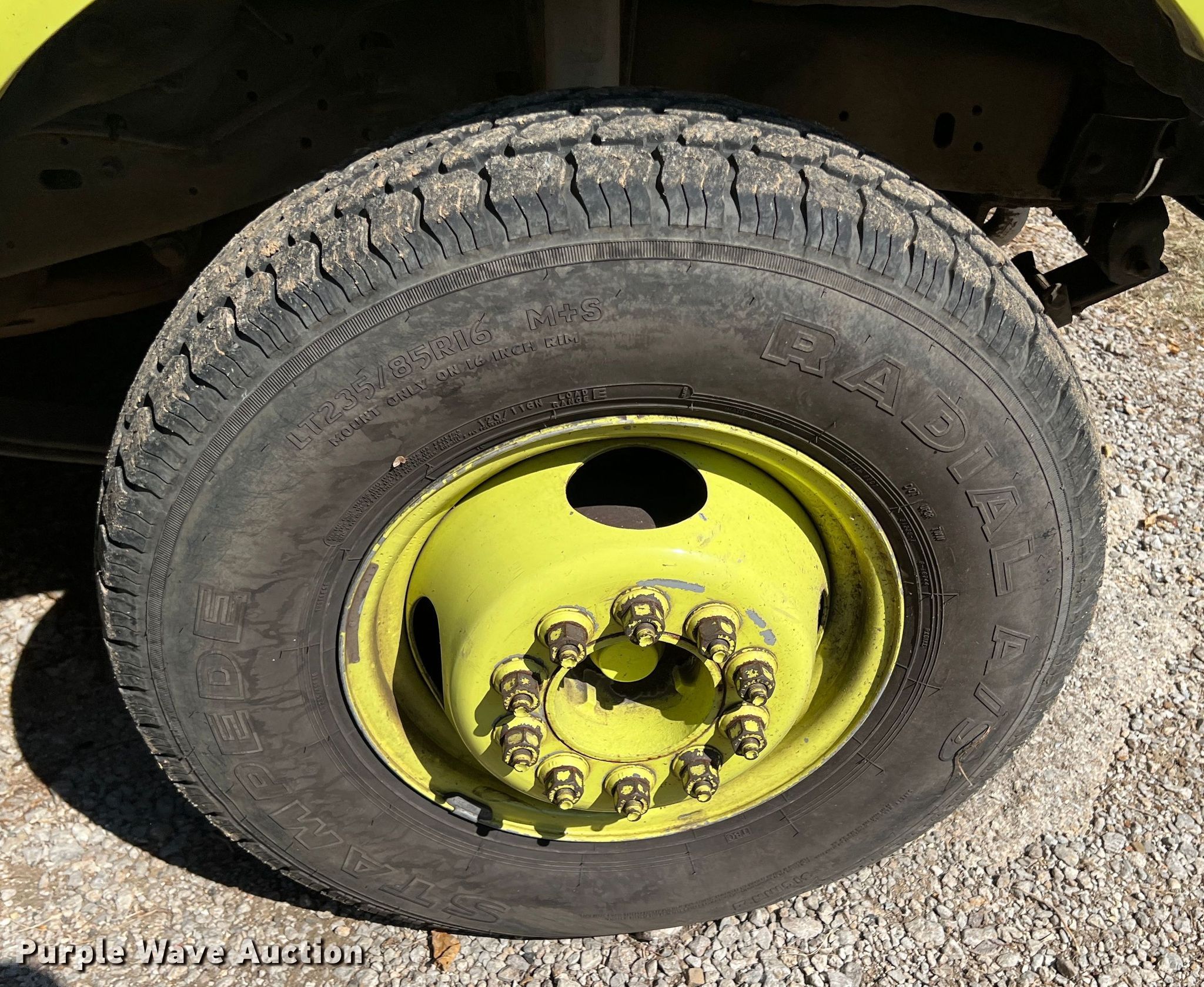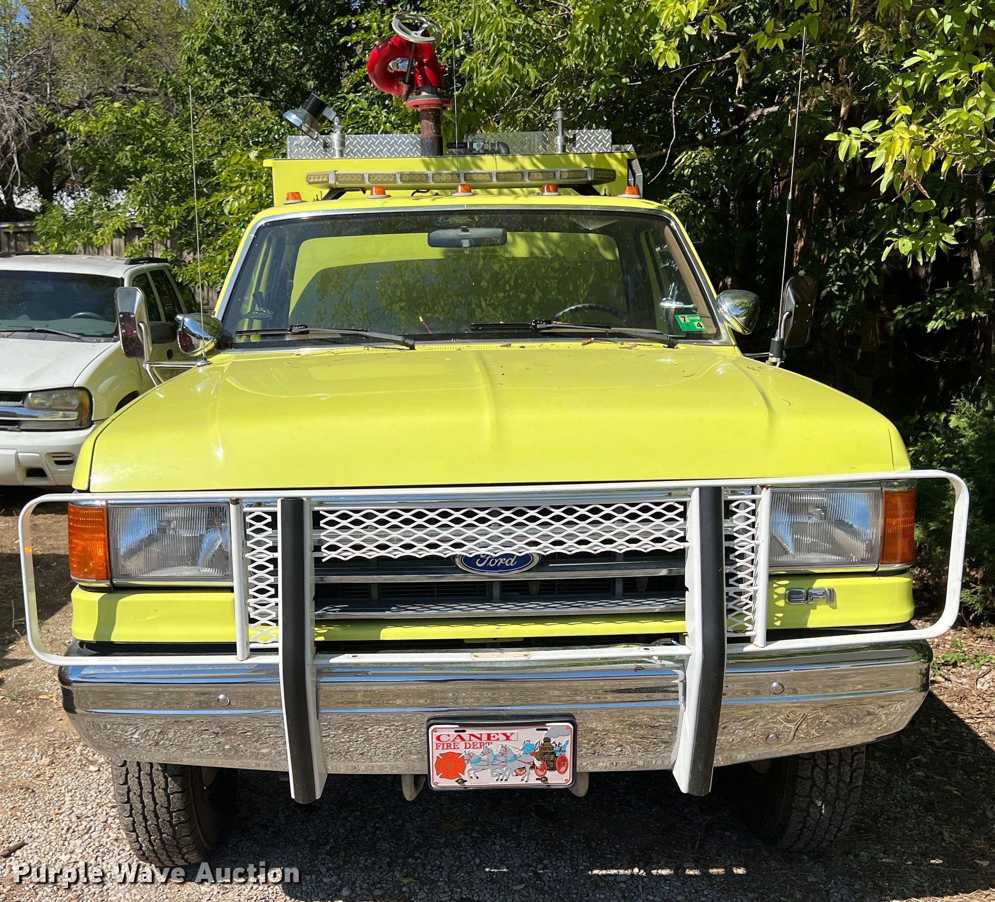 1989 Ford F350 Super Duty pumper fire truck. Miles: 9,126 on odometer, VIN: 2FDLF47G4KCA61607. Engine Displacement: 7.5L V8, Cylinders: 8, Fuel type: Gas. Transmission Manual, Speed: 5. Chassis Axles: Single, Suspension: Spring, Brakes: Hydraulic. Interior AC, Heat. Features Fire truck body Pump, Hose, PA/ siren controls. Tires Size: LT235/85R16, Brand: Stampede. Notes Dead battery, Unknown operating condition. Kansas title. Caney Police Department. Caney, KS 67333