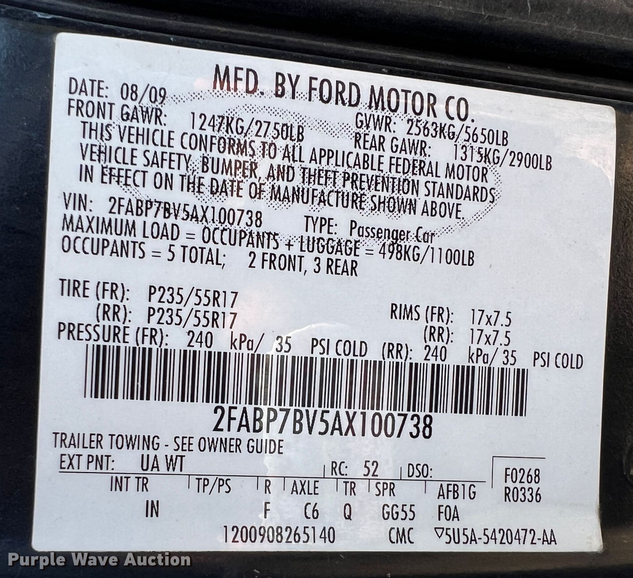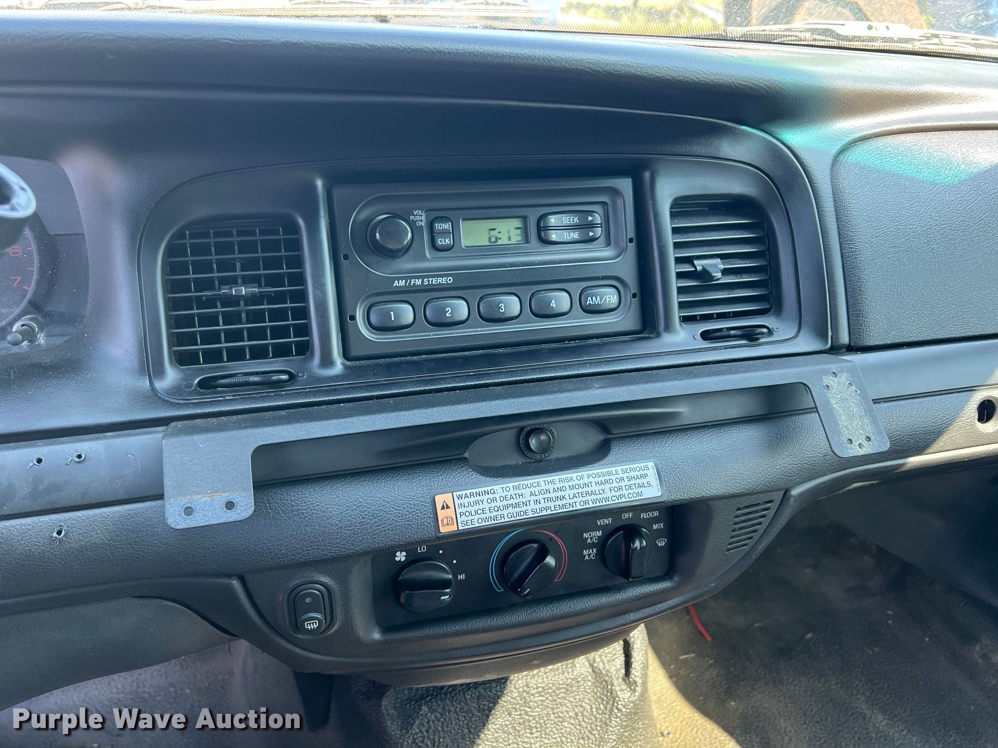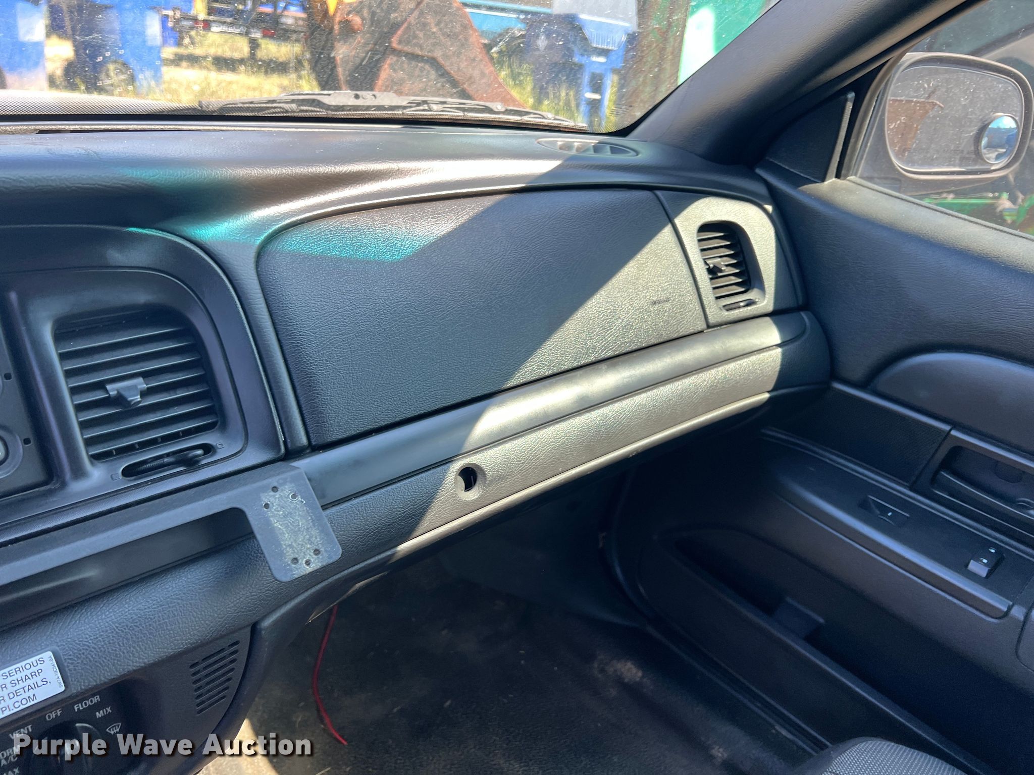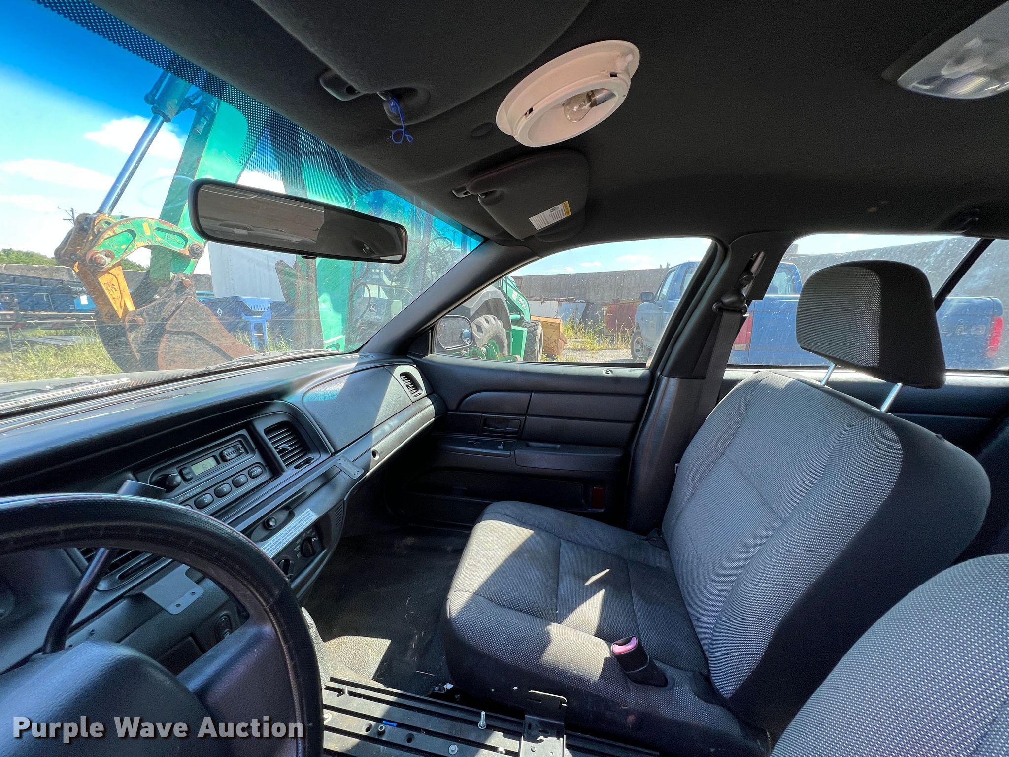 2010 Ford Crown Victoria Police Interceptor. Miles: 133,457 on odometer, VIN: 2FABP7BV5AX100738. Engine Displacement: 4.6L V8 SOHC, Cylinders: 8, Fuel type: Gas. Transmission Automatic. Interior AC, Heat, Power windows, Power locks. Tires Size: P235/55R17. Notes Dash warning indicator: TPMS, Flat tire, Center console missing. Kansas title. Caney Police Department. Caney, KS 67333