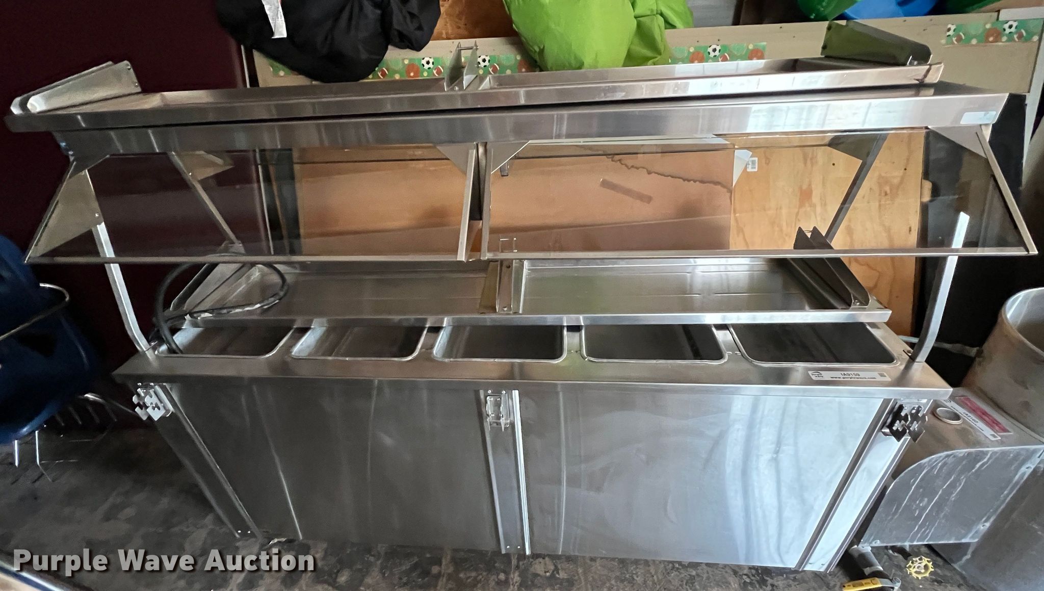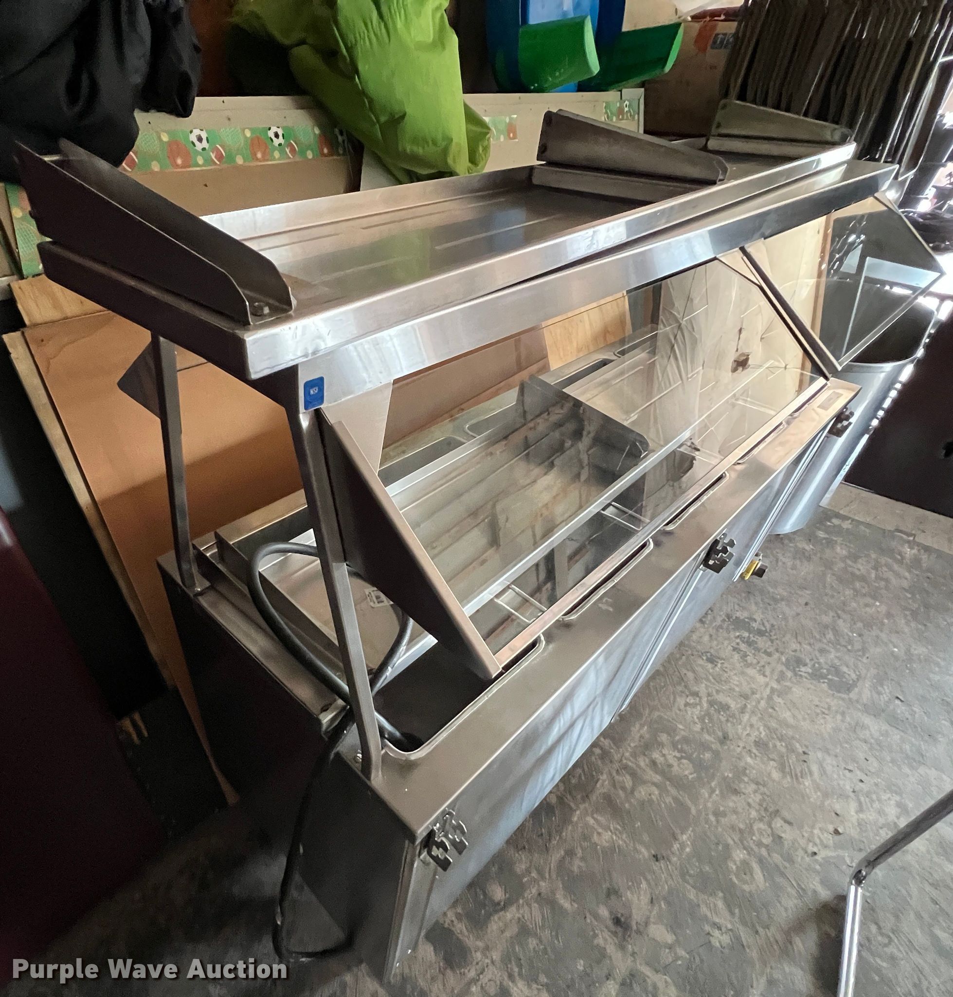 Purple Wave is selling a used Restaurant Equip. in Kansas. This item is a Joe Harding five well serving table with the following: 6'W x 24"D, 35"H counter, 56"H overall, Three phase