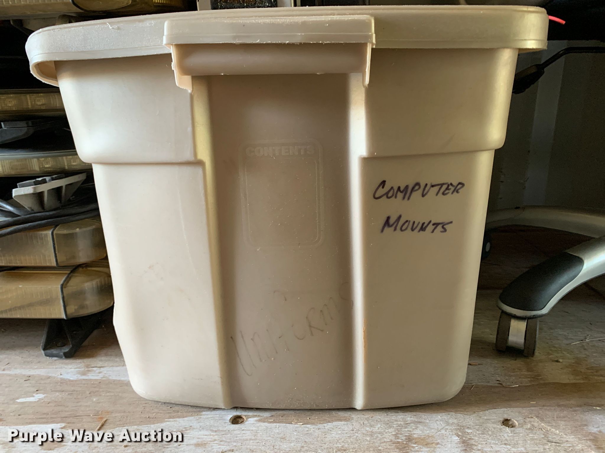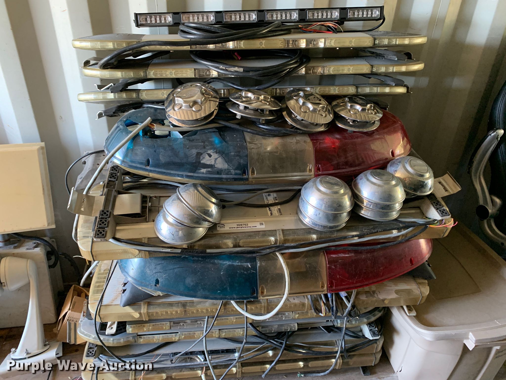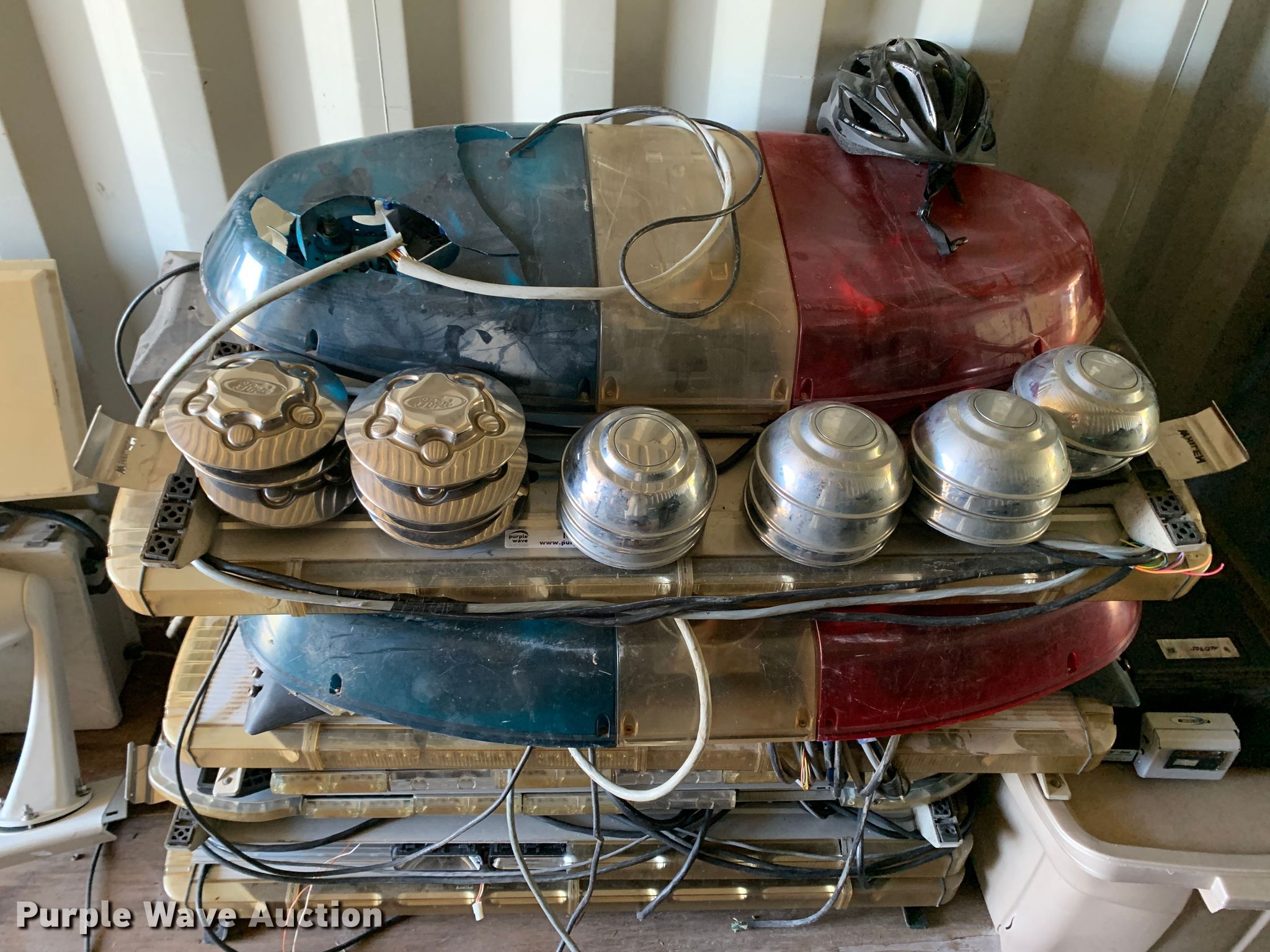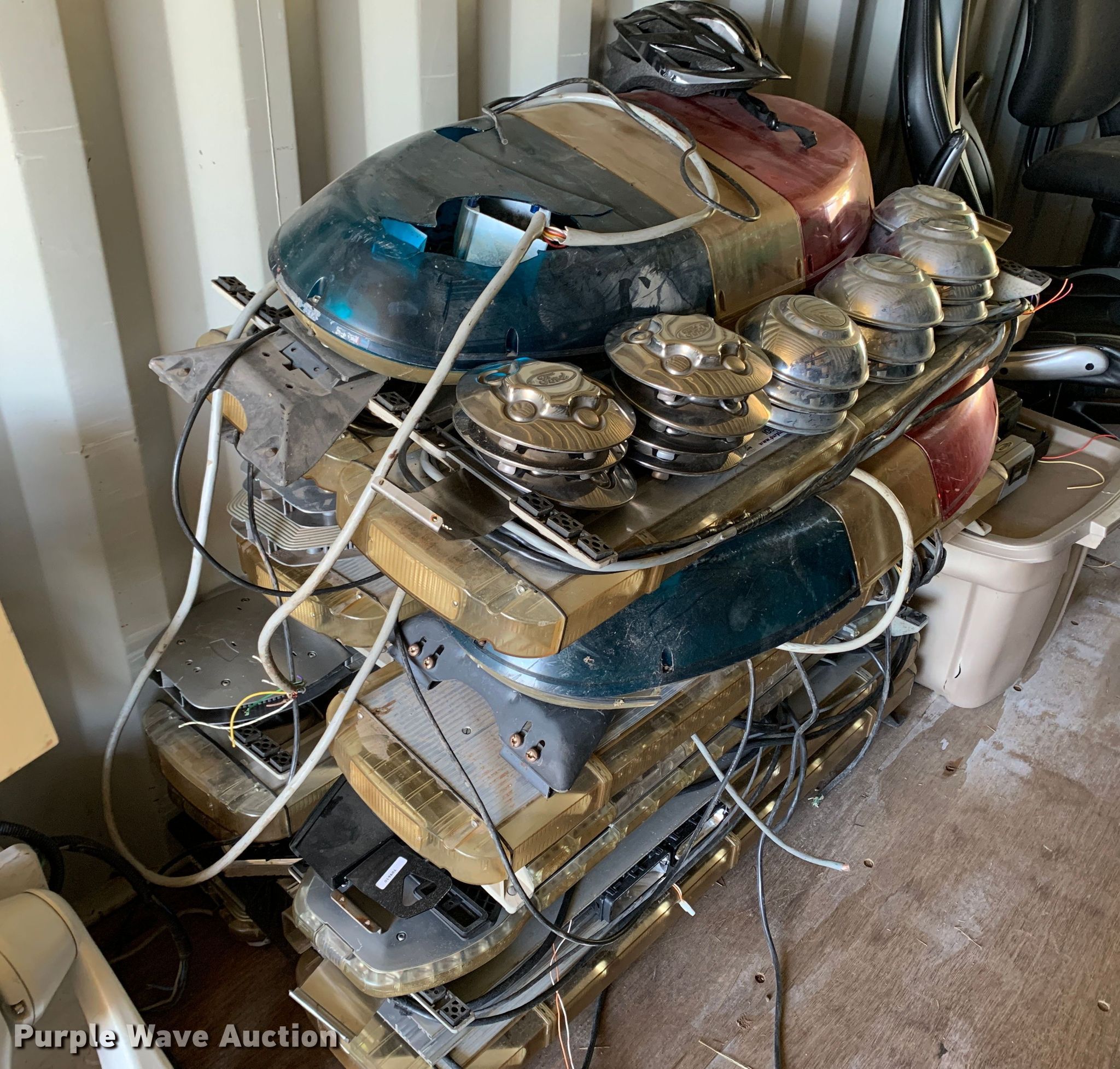 Purple Wave is selling a used Automotive Parts or Acces. in Oklahoma. This item is a Automotive accessories with the following: Approx. 20 light bars, Approx 10 laptop mounts, (14) hubcaps
