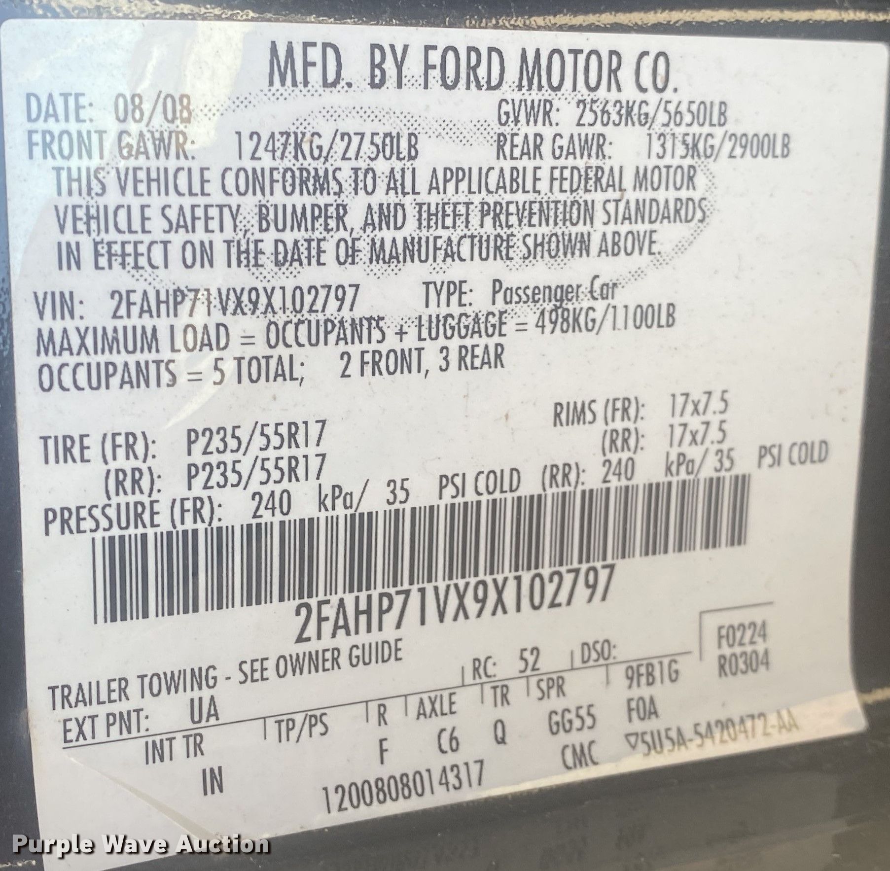• VIN: 2FAHP71VX9X102797