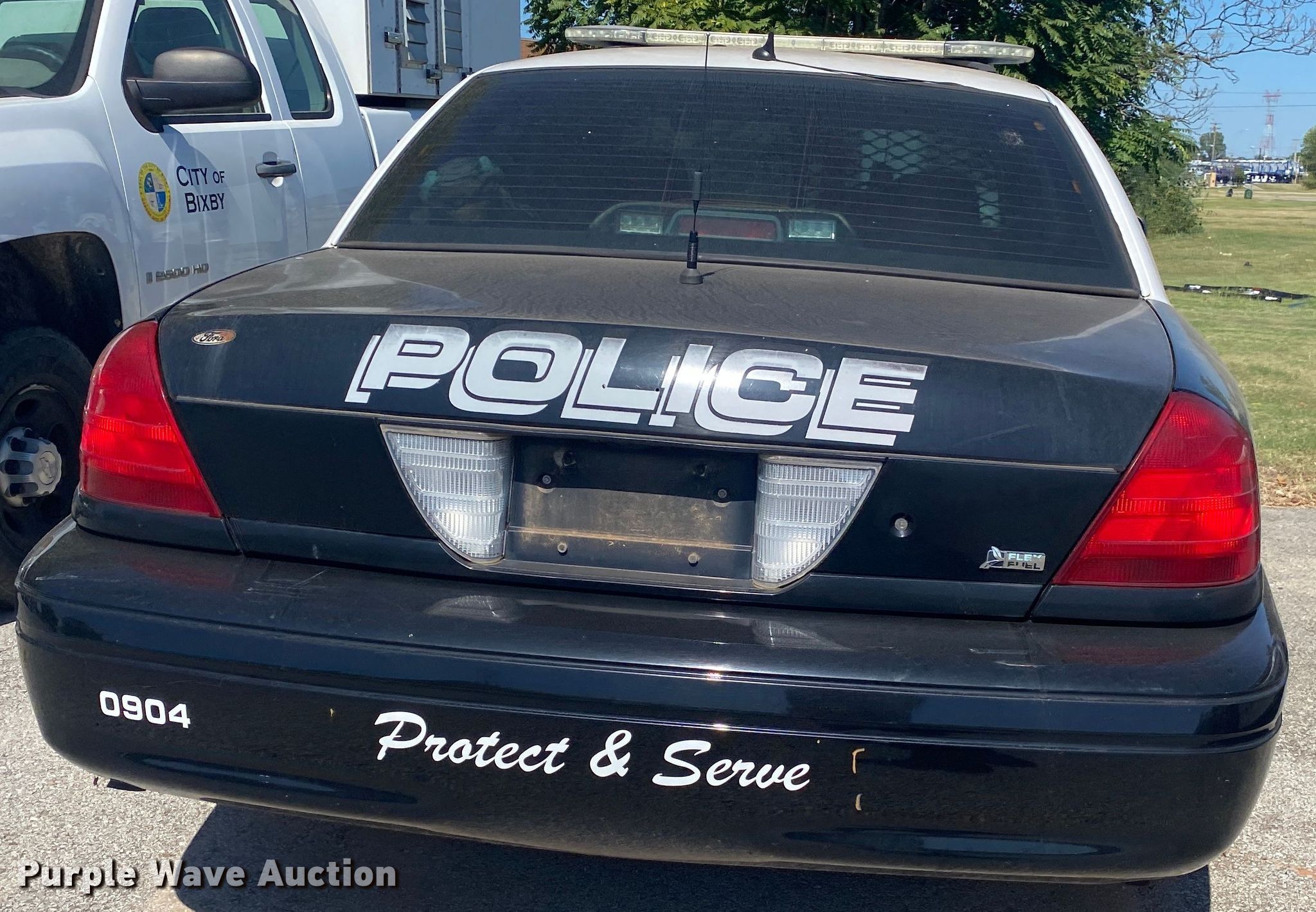 2009 Ford Crown Victoria Police Interceptor. Miles: Unknown, VIN: 2FAHP71V89X102832. Engine Displacement: 4.6L V8 SOHC, Cylinders: 8, Fuel type: Gas. Transmission Automatic. Interior AC, Heat, Power windows, Power locks. Tires Size: P225/60R16. Notes Dash warning indicator: TPMS, Dead battery, Odometer illumination issues, Flat tires. Law enforcement and emergency equipment will be removed prior to auction. Includes but not limited to police radio, spotlight, emergency lights and siren, firearm rack, and camera.. Oklahoma title. Mileage has not been verified. Odometer discrepancy will be marked on the title. Title distribution may be delayed up to 14 days from verification of funds. Seller is a government entity who will be assigning and distributing the title. Please contact the seller for distribution questions. City of Bixby, OK. 116 West Needles Avenue. Bixby, OK 74008