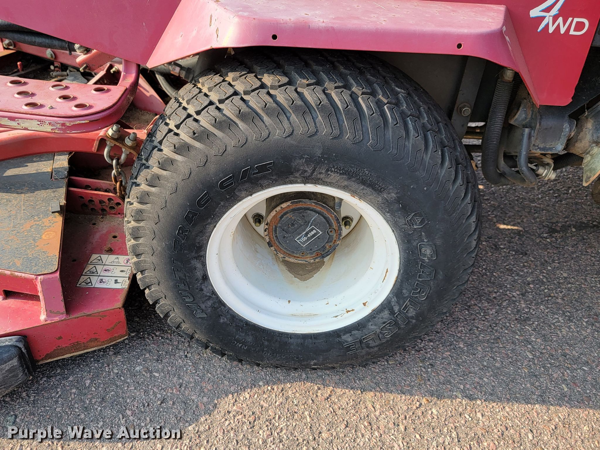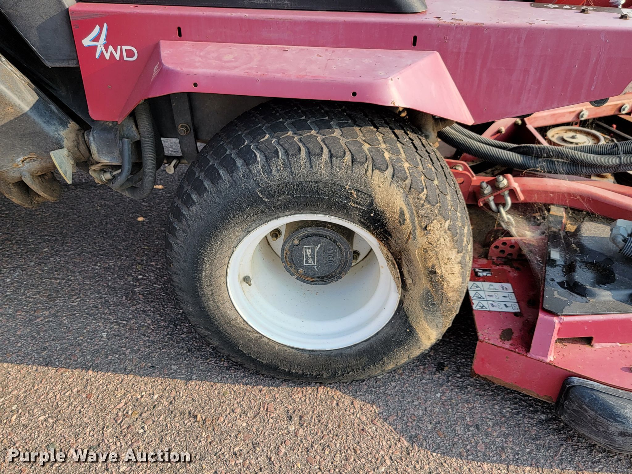 Toro Groundsmaster 4000D lawn mower. Hours: 4,819 on meter, Serial: 30448N-313000441, Unit #: 51-85. Engine Cylinders: 4, Fuel type: Diesel. Transmission Hydrostatic. Chassis Four wheel drive. Features Hydraulic fold decks, Hydraulic front deck lift. Tires Front: 26x12.00-12, Rear: 20x10.00-10 NHS. Notes Leaks fluid, Non-operational unit. Sioux Falls Street Department - Open inspection Oct. 21. 1000 E Chambers St.. Sioux Falls, SD 57104