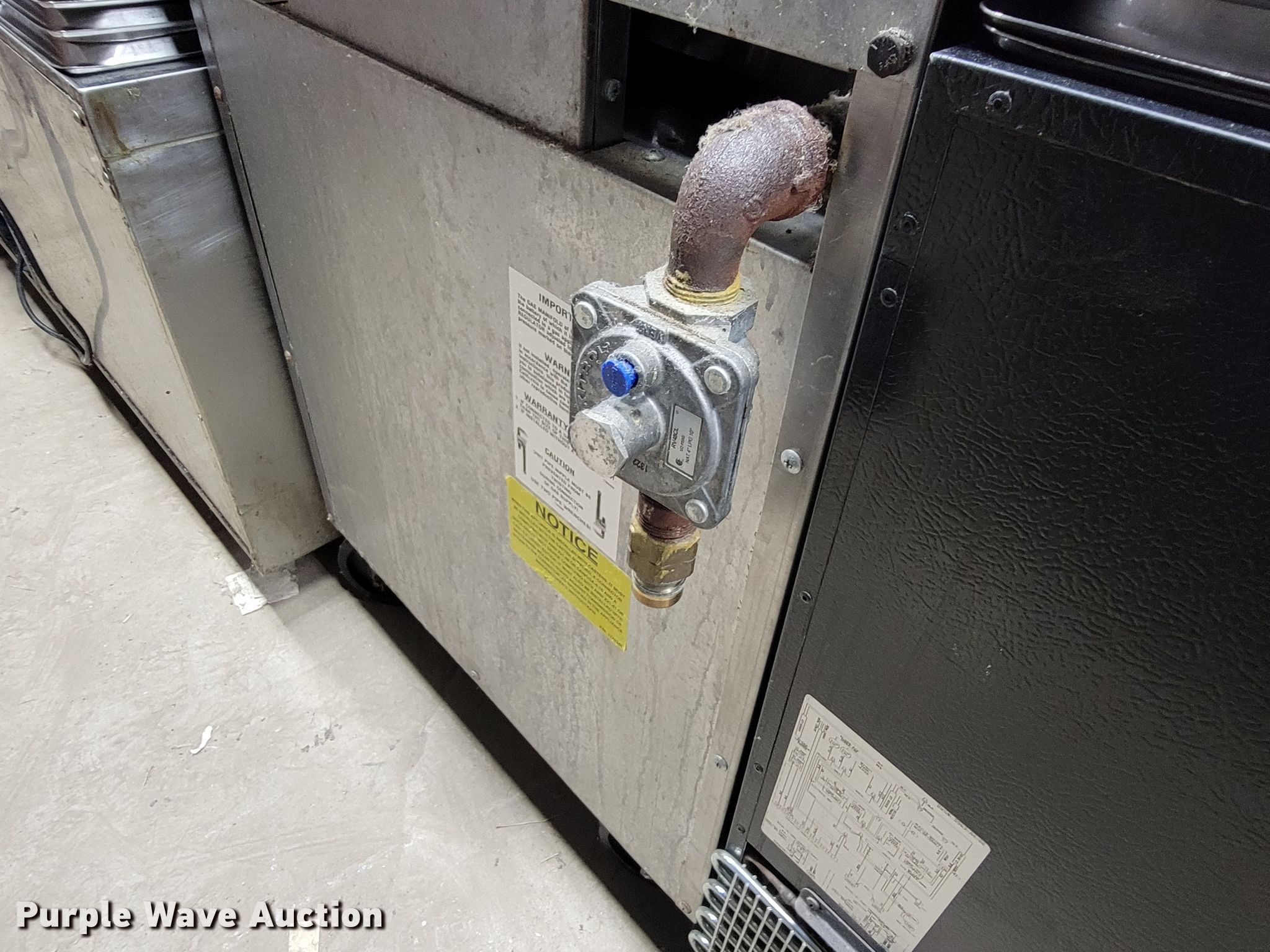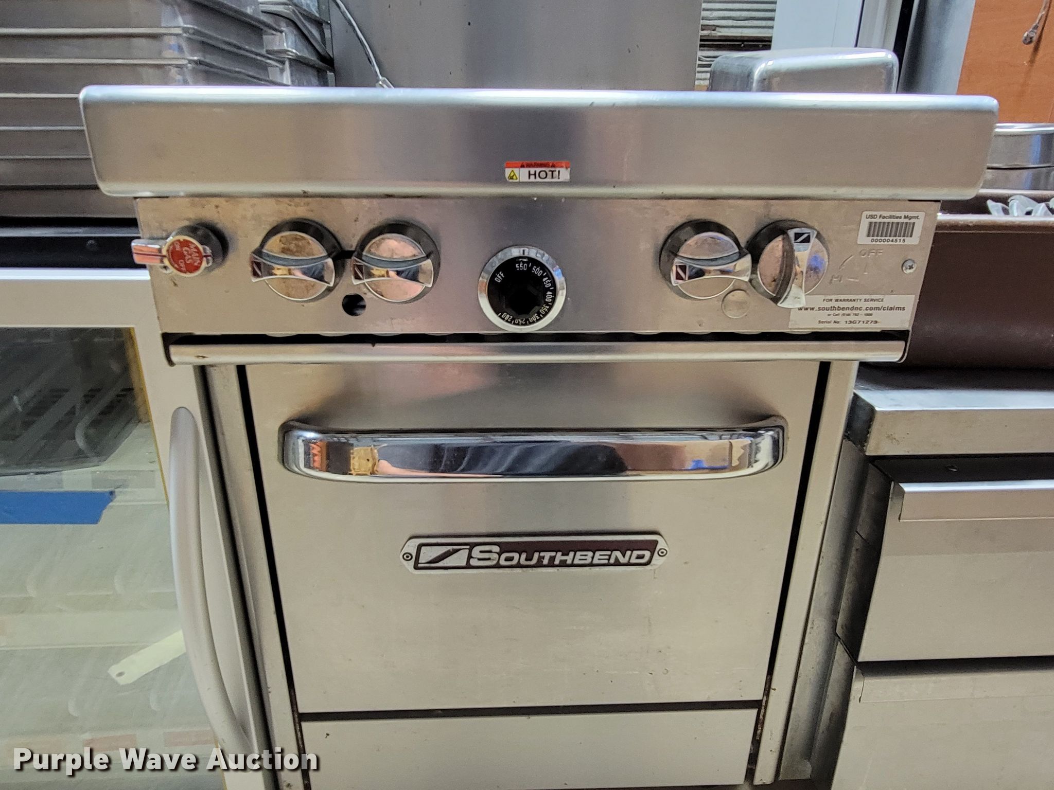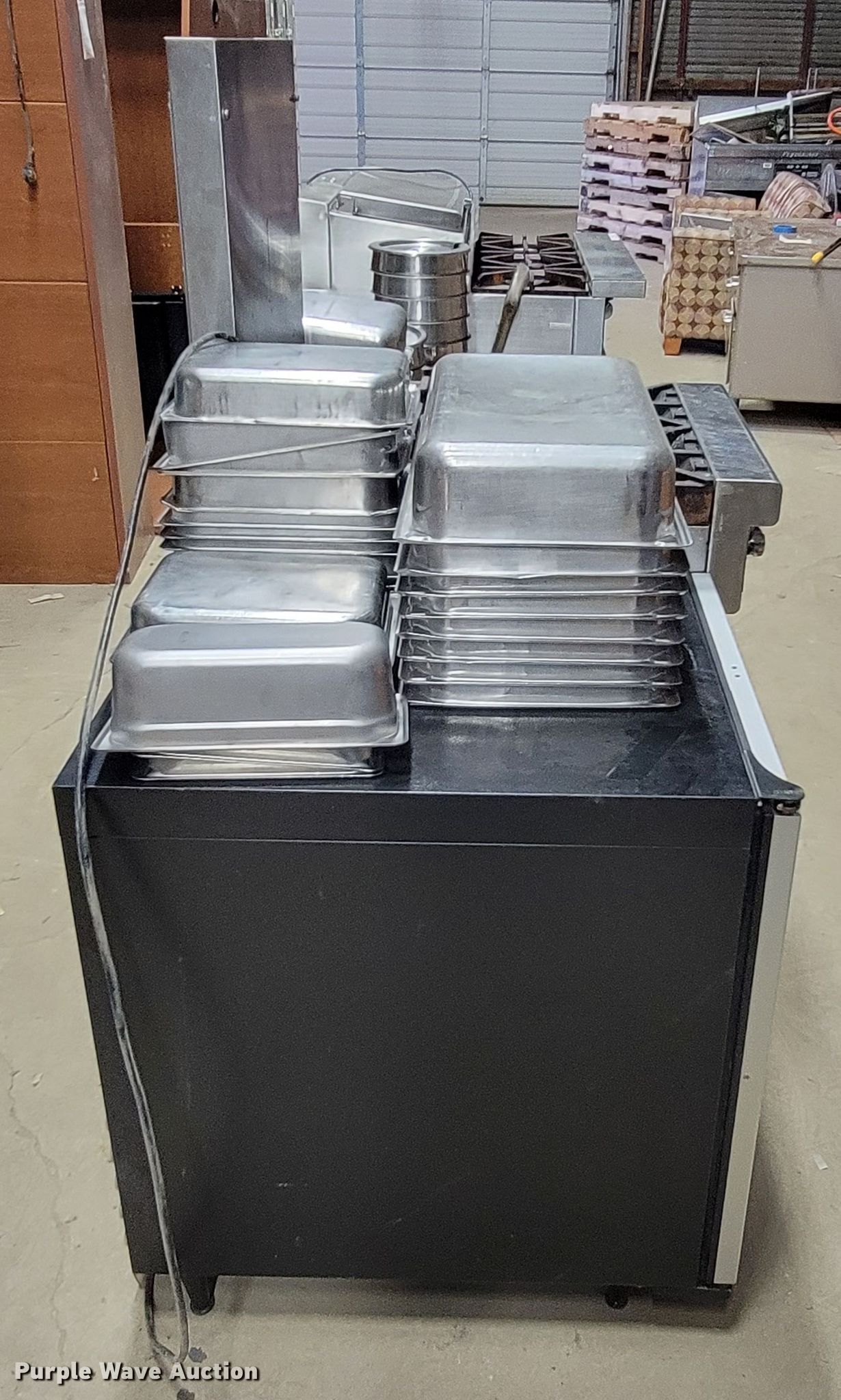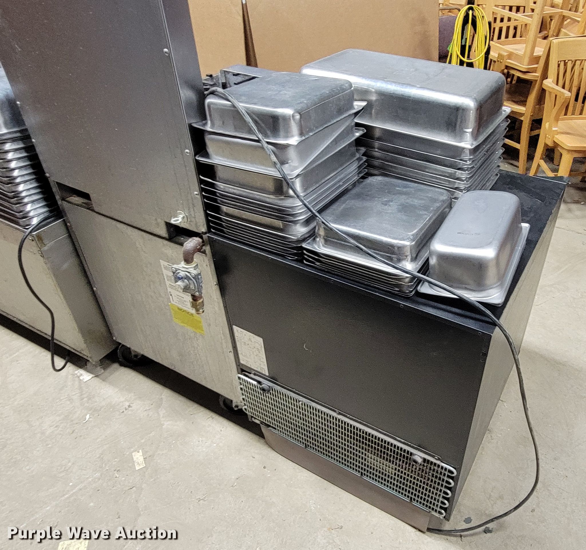 Purple Wave is selling a used Restaurant Equip. in South Dakota. This item is a Restaurant equipment with the following: South Bend four burner stove, Three burner stove, Continental freezer, Drink refrigerator, Steam table pans, Pots and pans