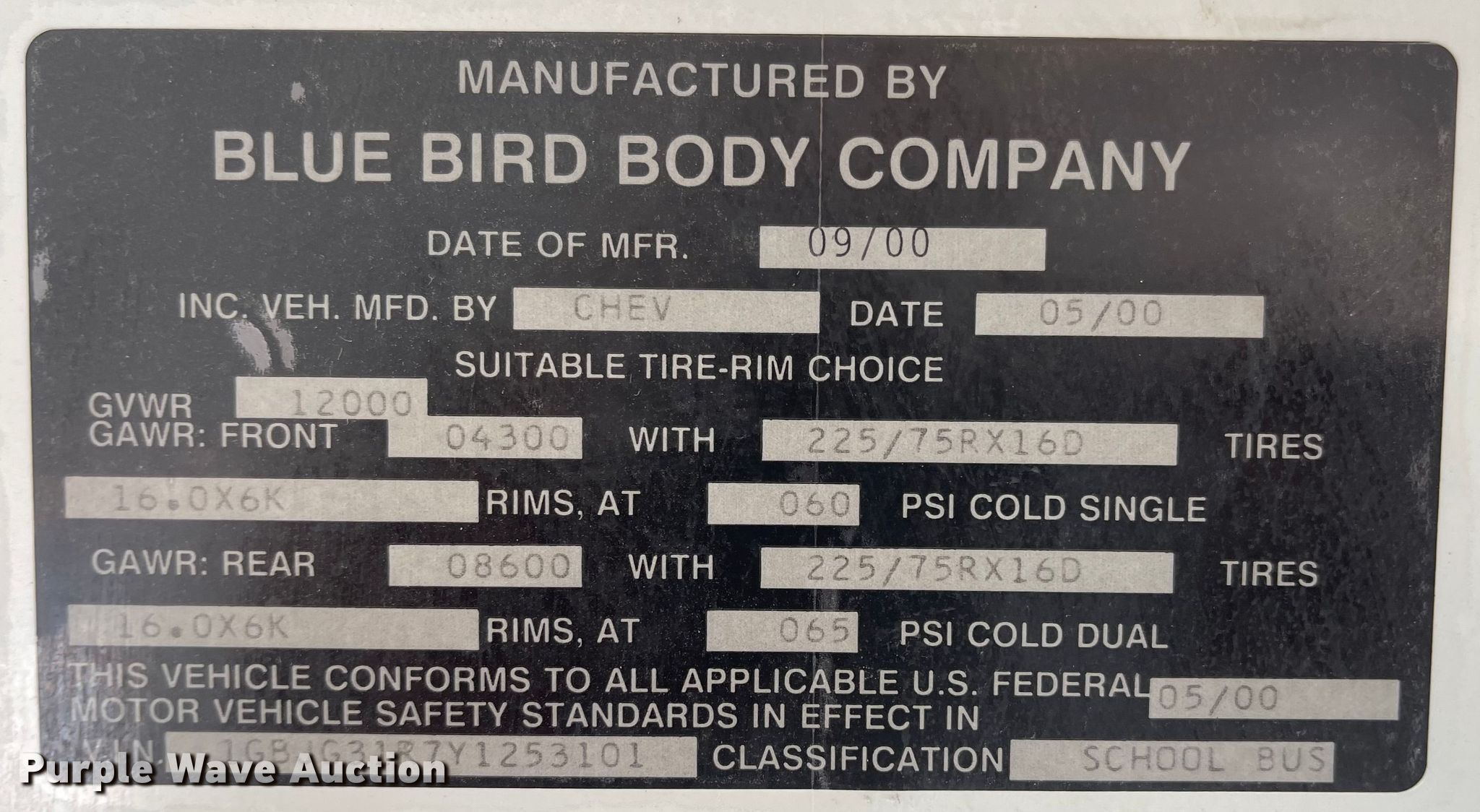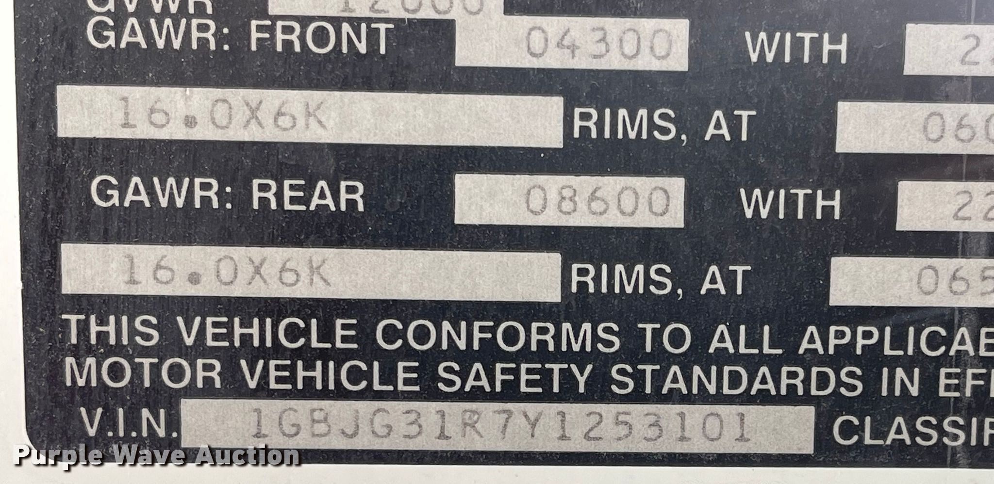 Purple Wave is selling a used Bus in Kansas. This item is a 2000 Chevrolet Express G3500 school bus with the following: Miles: 198,182 on odometer, VIN: 1GBJG31R7Y1253101