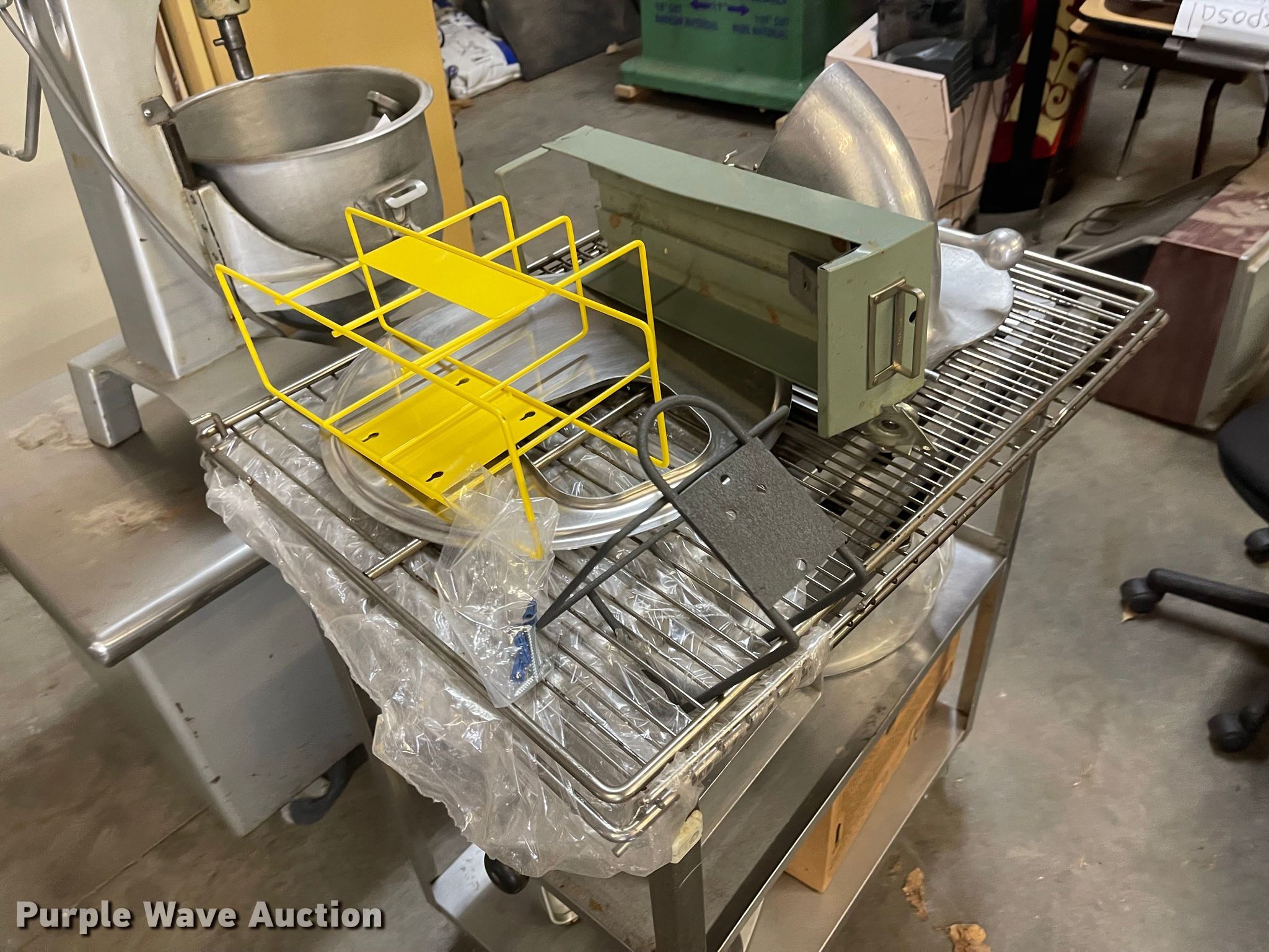 Purple Wave is selling a used Restaurant Equip. in Kansas. This item is a Restaurant equipment with the following: Hobart mixer, 120V, Mixing bowl, (2) refrigerators, Unknown operating condition, (2) scales and more