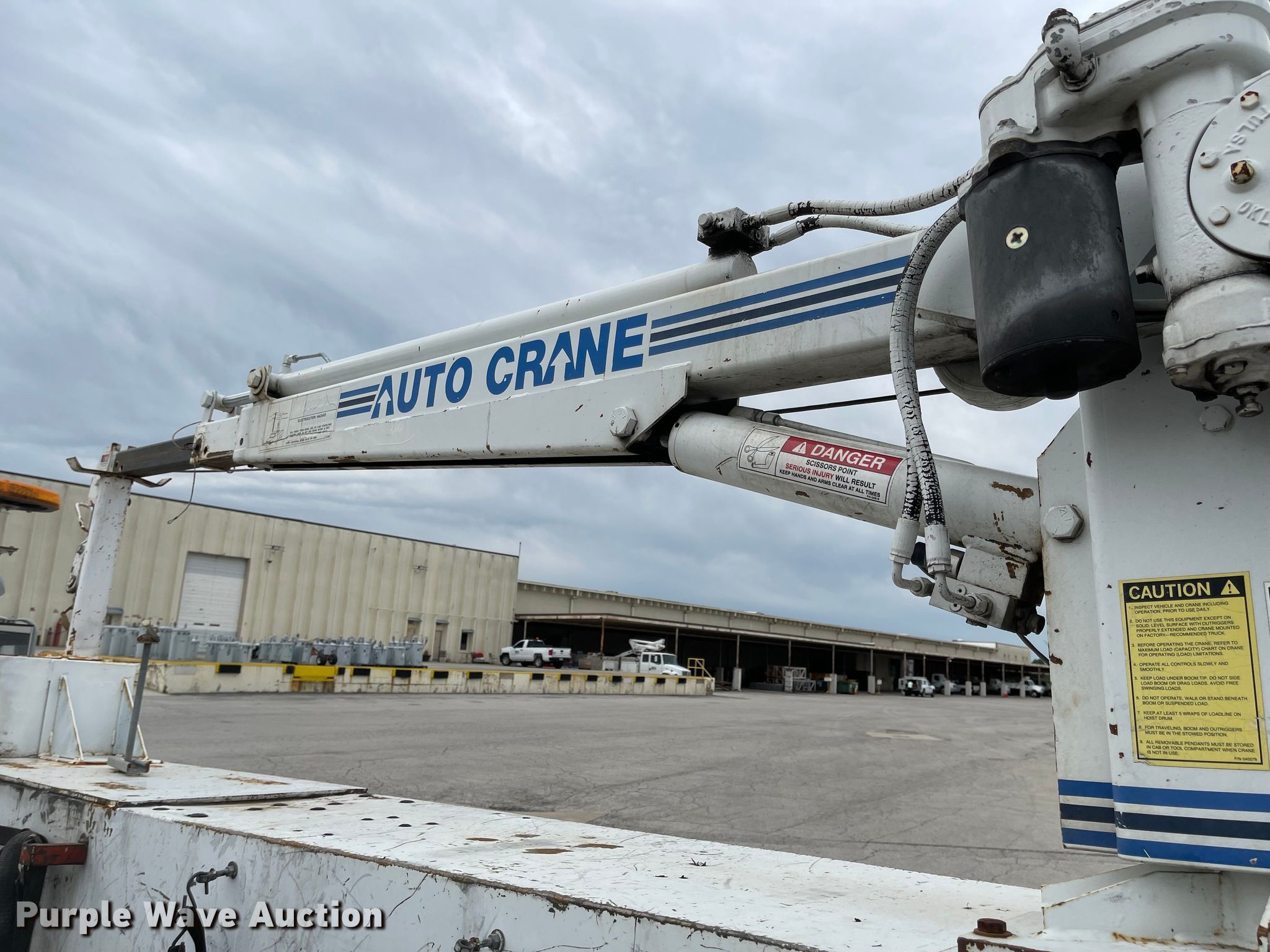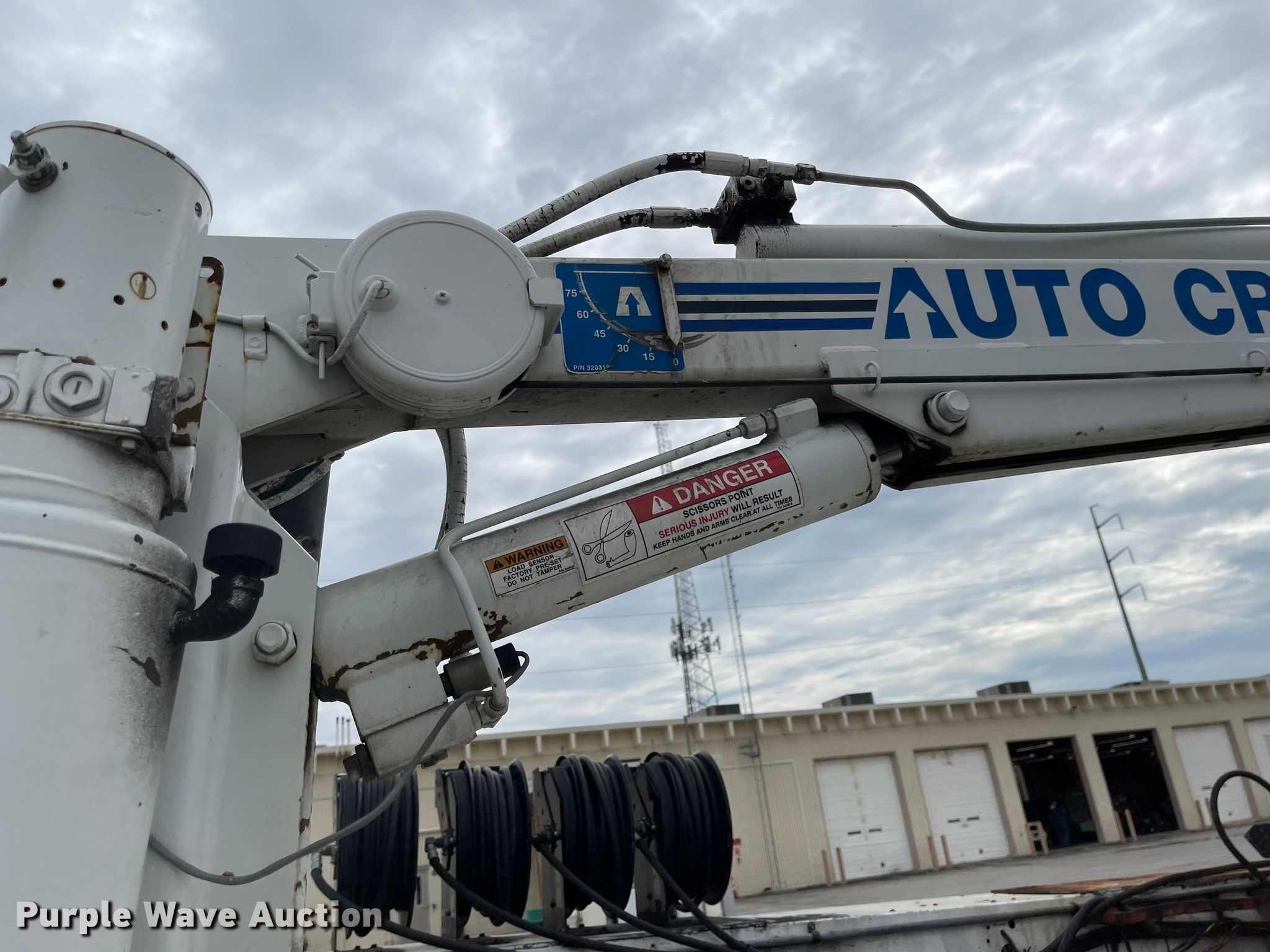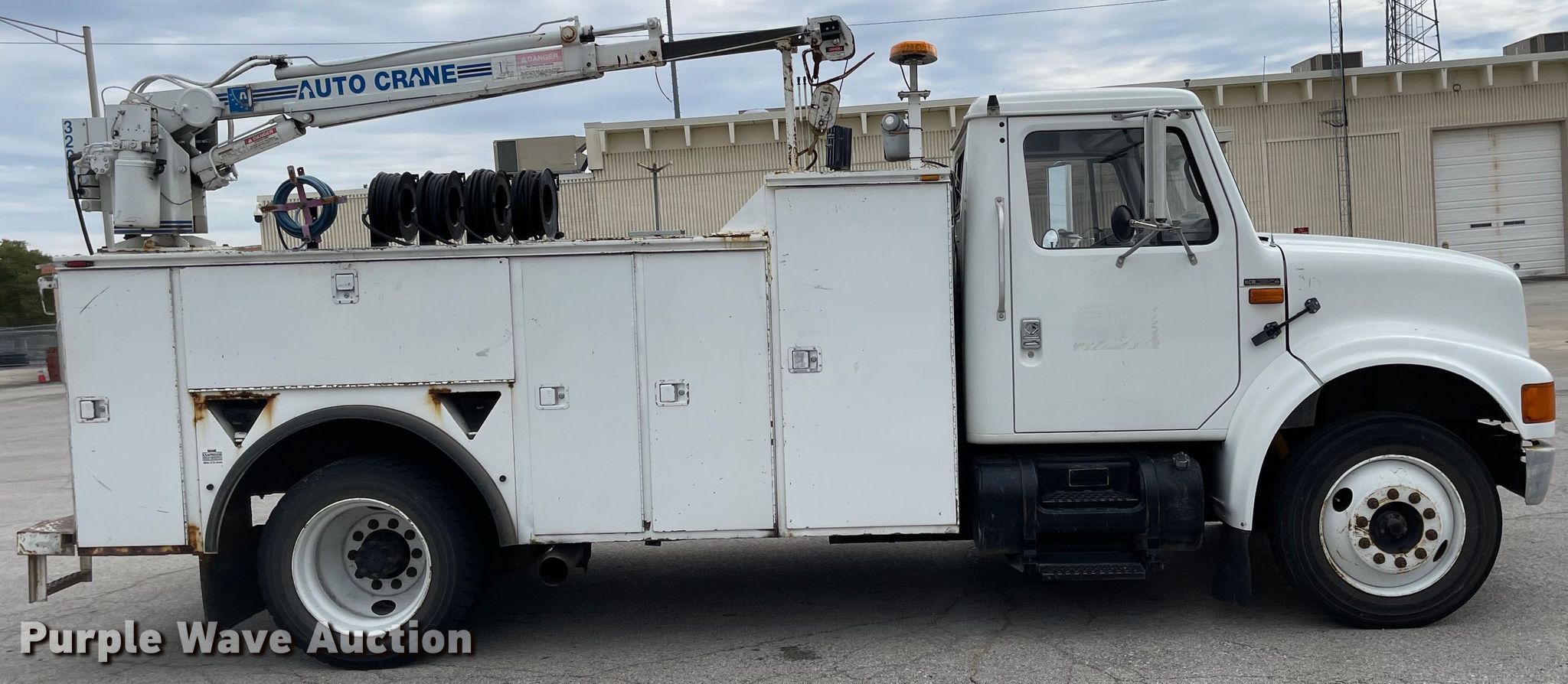 1996 International 4900 utility / service truck. Miles: 102,962 on odometer, Hours: 7,618 on meter, VIN: 1HTSDAAN3TH282849, Unit #: 56. Engine International DT466, Displacement: 7.6L, Cylinders: 6, Fuel type: Diesel. Transmission Allison, Automatic. Chassis Axles: Single, Suspension: Spring, Brakes: Air, Wheelbase: 170". Interior Heat. Features Bed Knapheide, 12' 6" L x 95" W, Torch bottle rack, Oil/lube system Hose reels, Crane Auto Crane 3203, Boom length: 22', Maximum lift capacity: 3,200 lbs. Tires Size: 255/70R22.5. Kansas title. Kansas City, KS 66109