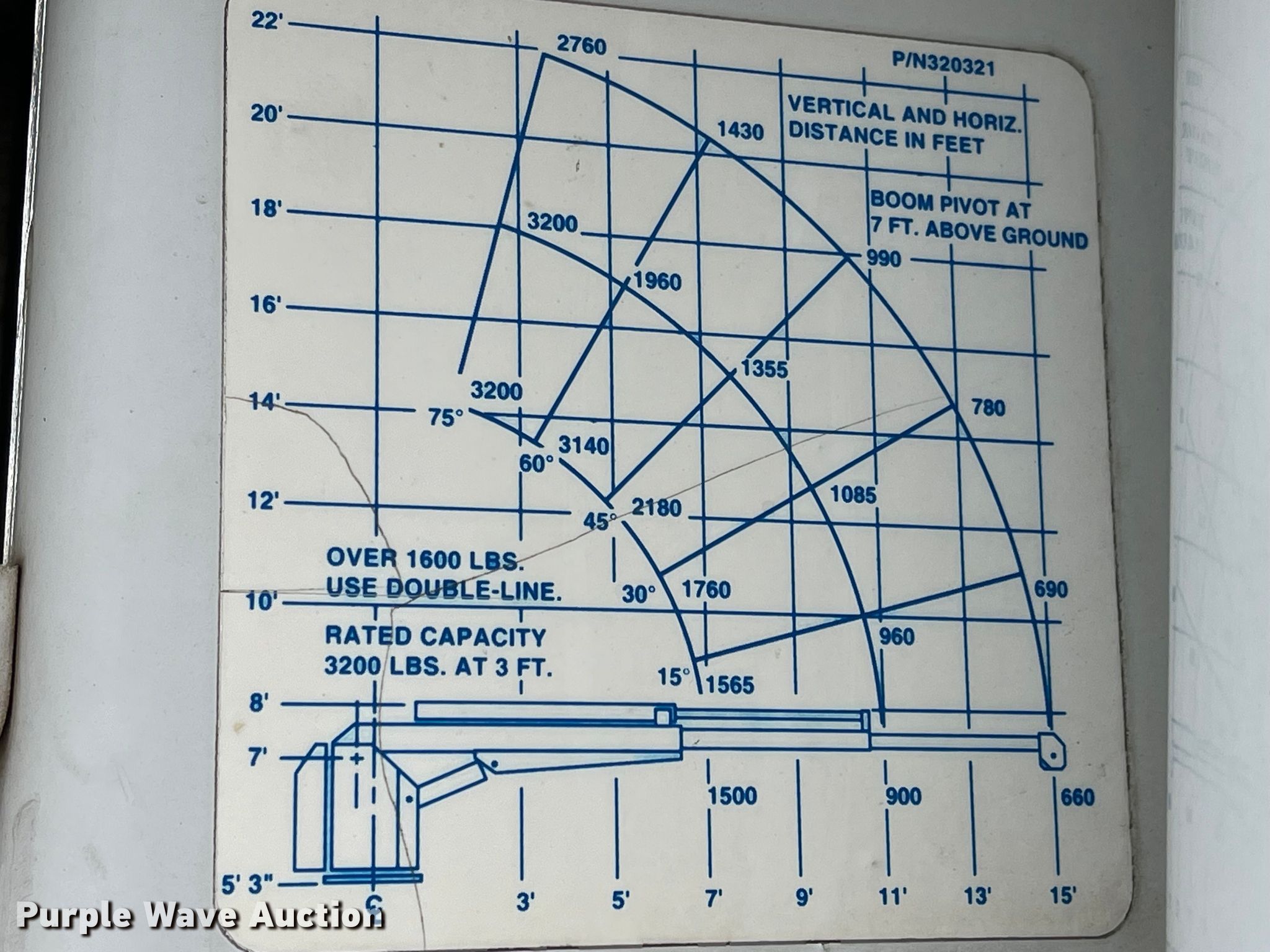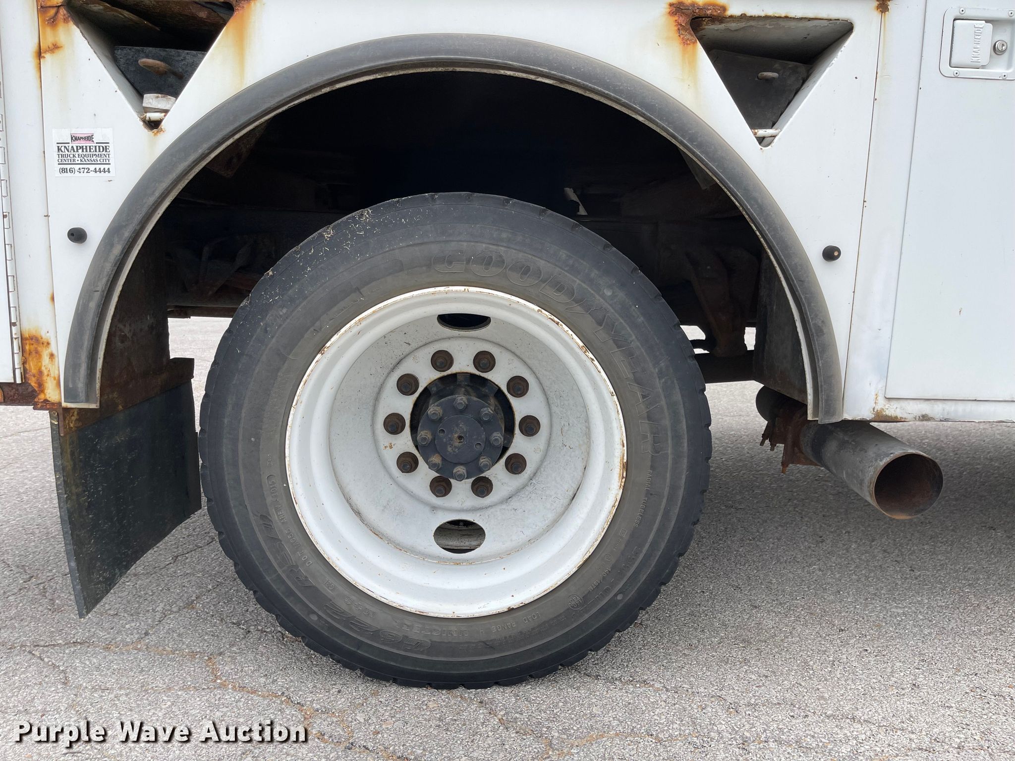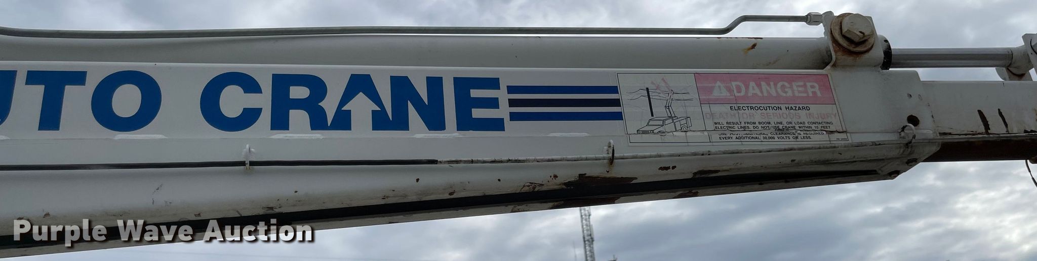 1996 International 4900 utility / service truck. Miles: 102,962 on odometer, Hours: 7,618 on meter, VIN: 1HTSDAAN3TH282849, Unit #: 56. Engine International DT466, Displacement: 7.6L, Cylinders: 6, Fuel type: Diesel. Transmission Allison, Automatic. Chassis Axles: Single, Suspension: Spring, Brakes: Air, Wheelbase: 170". Interior Heat. Features Bed Knapheide, 12' 6" L x 95" W, Torch bottle rack, Oil/lube system Hose reels, Crane Auto Crane 3203, Boom length: 22', Maximum lift capacity: 3,200 lbs. Tires Size: 255/70R22.5. Kansas title. Kansas City, KS 66109