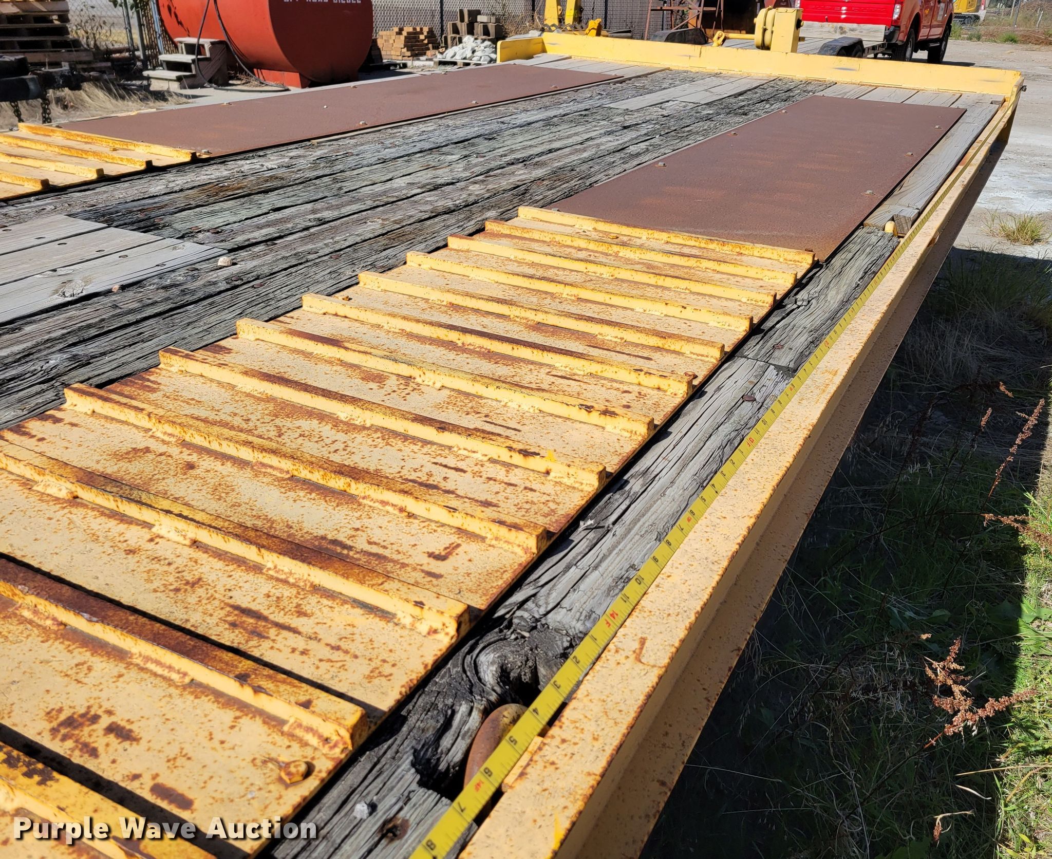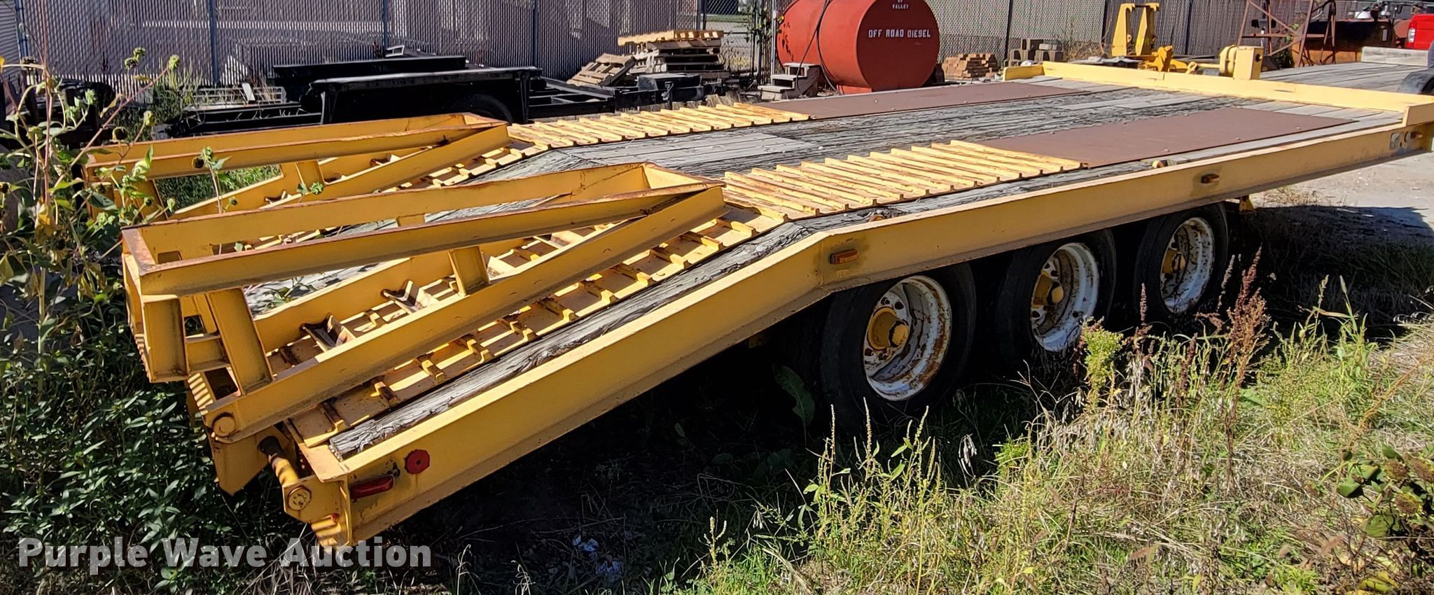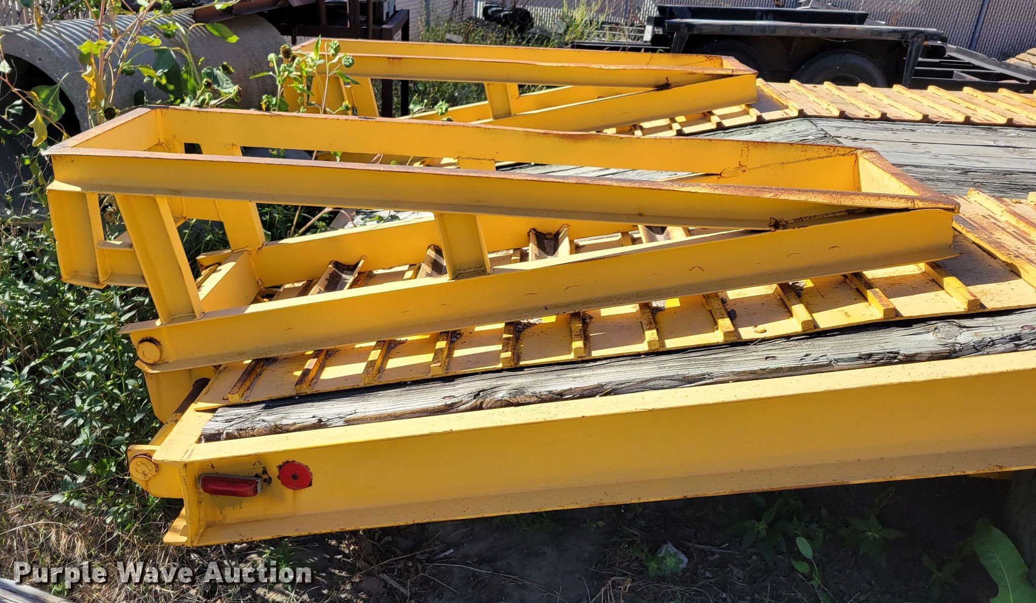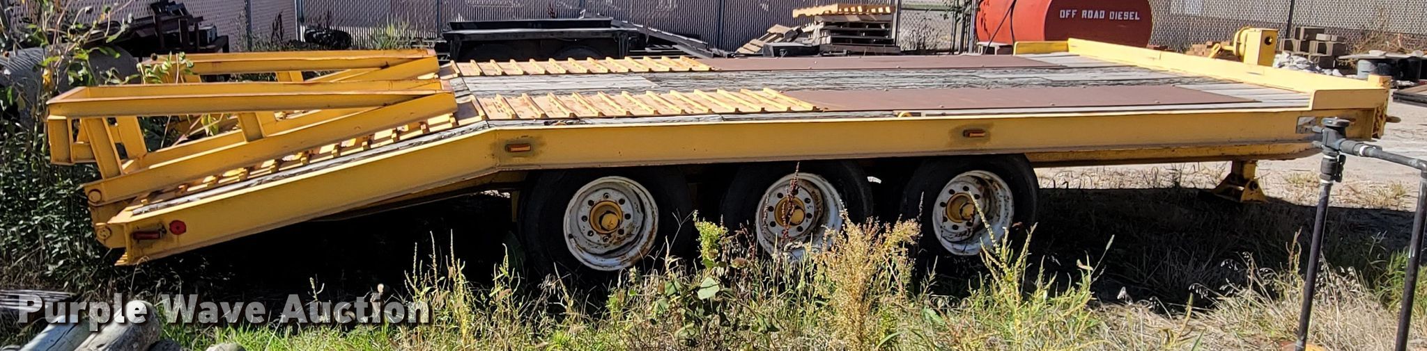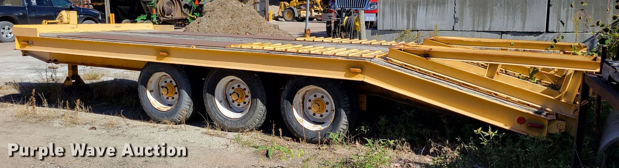 1976 Dakota Trail-eze 109-2000 equipment trailer. VIN: 3309376. Dimensions Overall: 25' L x 96" W, Deck: 15' L x 96" W, Rear deck length: 5', Ramps: Manual Length: 60". Features Deck type: Wood. Chassis Hitch: Pintle, Landing gear: Two speed, Hydraulic, Suspension: Spring, Brakes: Electric, Axles: Triple, GVWR: 30,000 lbs. Tires Steel wheels, Size: 12-16.5LT. Notes Possible frame damage, may be bent. Nebraska title. City of Valley. 203 N Spruce Street. Valley, NE 68064