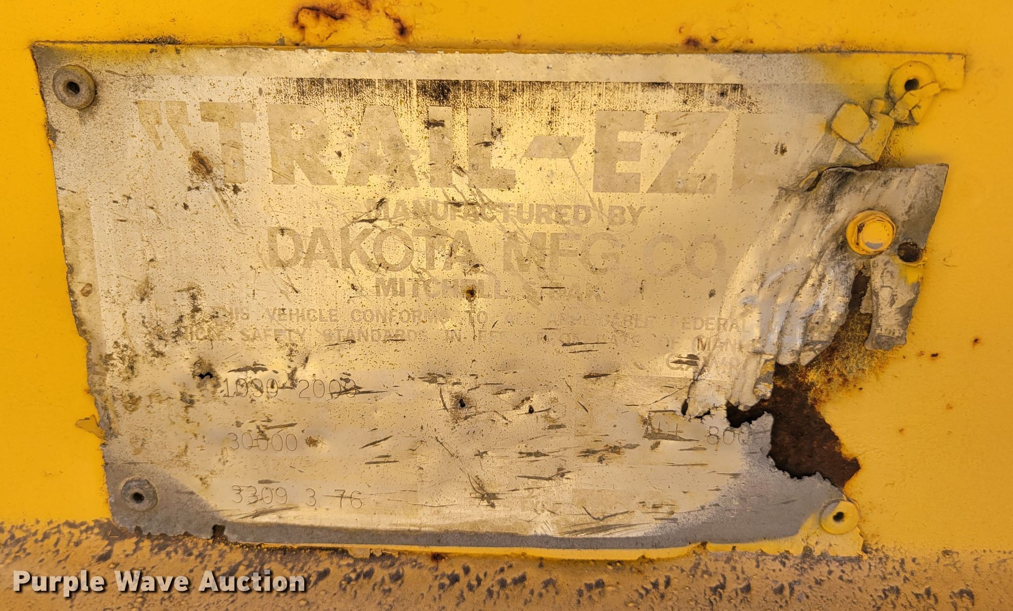 Purple Wave is selling a used Equip. Trailer in Nebraska. This item is a 1976 Dakota Trail-eze 109-2000 equipment trailer with the following: VIN: 3309376