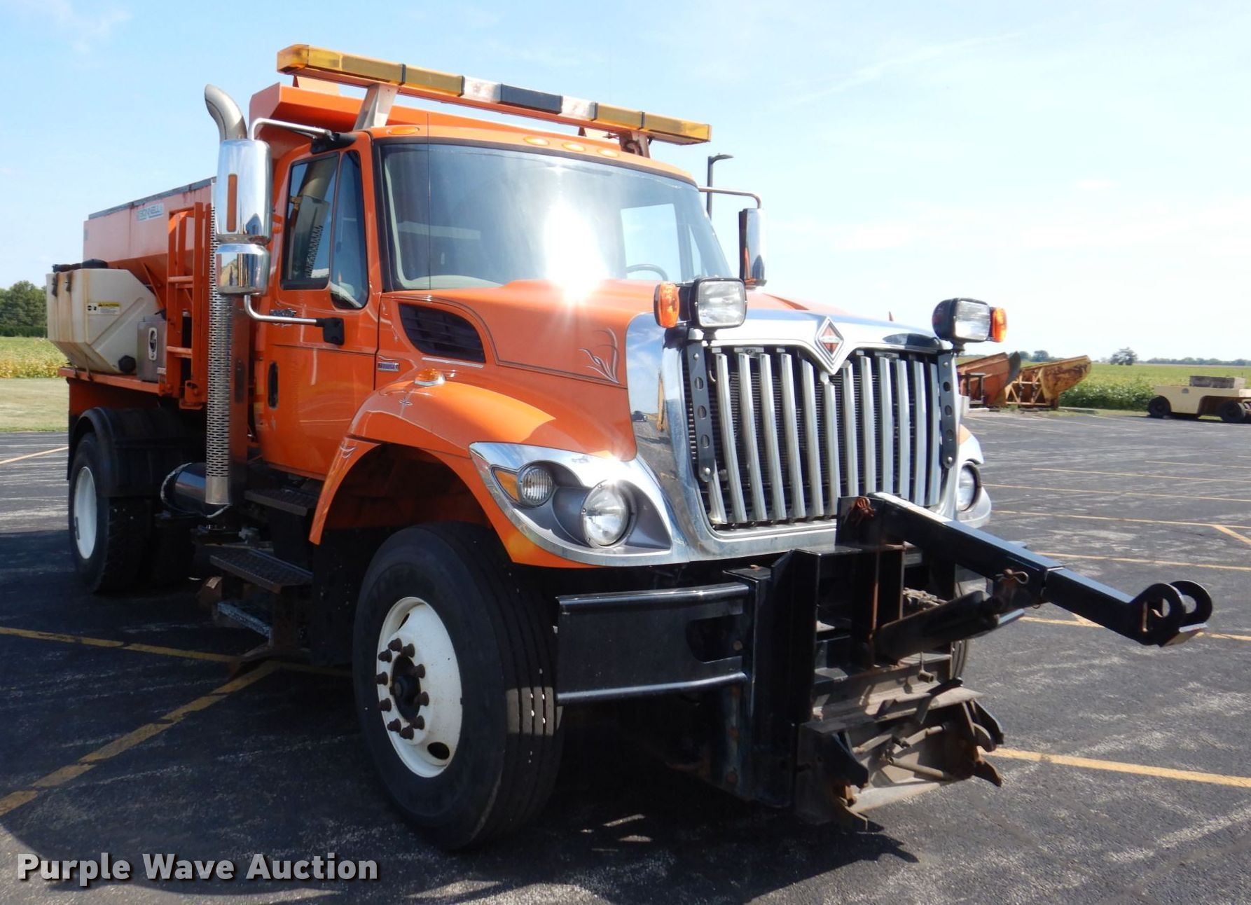 2008 International WorkStar 7400 spreader truck. Miles: 12,280 on odometer, Hours: 1,183 on meter, VIN: 1HTWDAAR18J632211. Engine International Maxxforce DT, Displacement: 7.6L, Cylinders: 6, Fuel type: Diesel. Transmission Automatic. Chassis Axles: Single, Suspension: Spring, Brakes: Air, PTO, GVWR: 35,000 lbs. Interior AC, Heat, Heated mirrors, Power windows, Cruise control. Features Dump bed Bed type: Steel, Bed vibrator, Spreader Bonnell BV-1156-CS, Plow Bonnell 11ST42MX1QL, Width: 132", Mid-mount plow Bonnell UBS120-2PRPD, Width: 120". Tires Front: 12R22.5, Rear: 11R22.5. Notes Unknown operating condition of bed conveyor , Unknown operating condition of spreader spinner, Non-operational mid mount plow. View repairs. Illinois title. Mileage has not been verified. Exempt will be written in the odometer disclosure on the title. Dale Township. 8017 East 1100 North Road. Bloomington, IL 61705